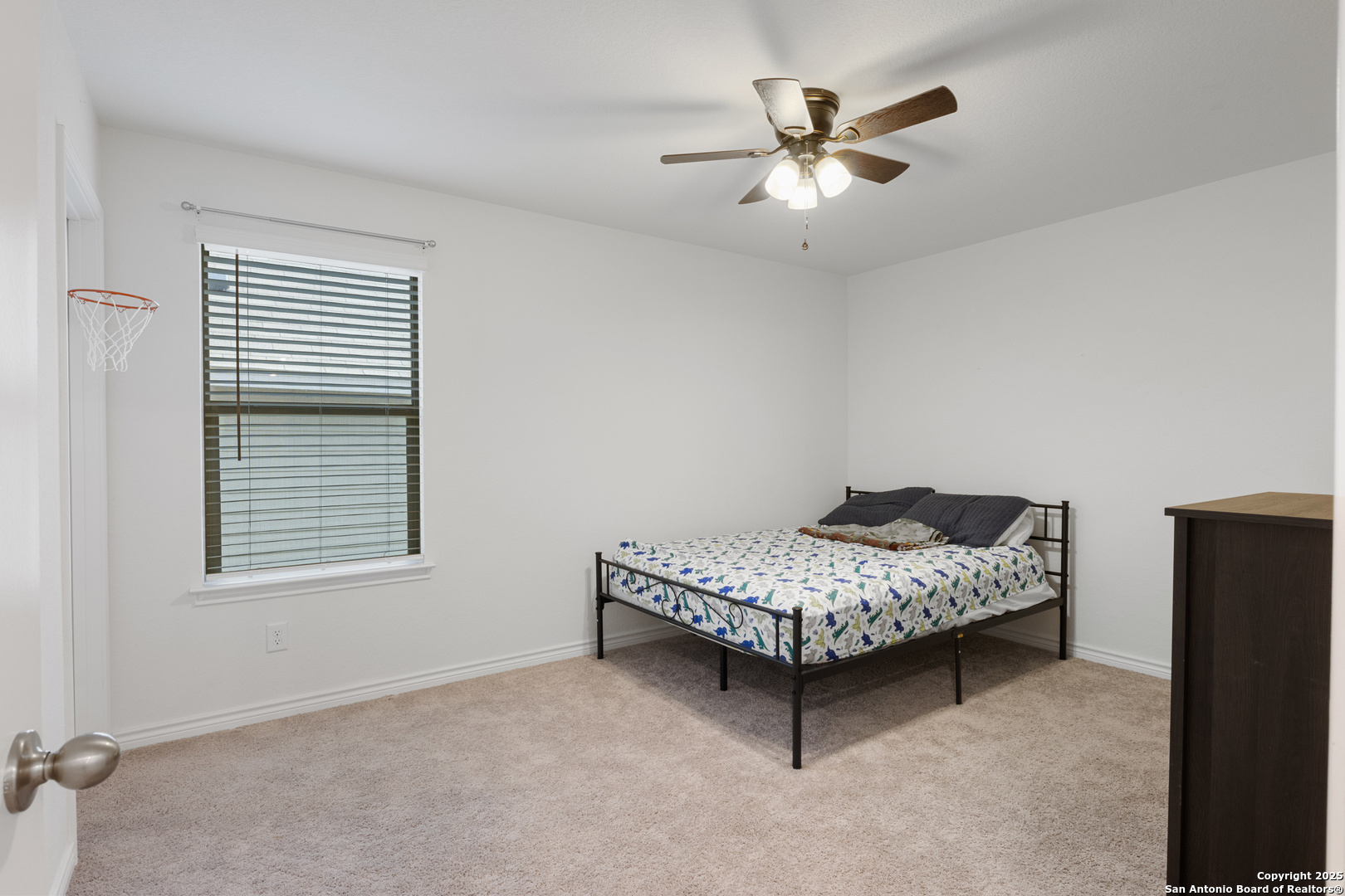 Welcome to this beautifully maintained two-story gem in the heart of Champions Park that offers a warm and inviting atmosphere from the moment you arrive. Inside, you'll find a spacious, light-filled layout designed for both everyday living and entertaining-complete with a dedicated front office, rich cabinetry, sleek black appliances, and a central kitchen island perfect for gathering. The living room features built-in surround sound for the ultimate movie night, while a generous upstairs loft offers endless flexibility as a game room, lounge, or playroom. Each bedroom provides plenty of space and natural light, and the luxurious primary suite is a peaceful escape. Step outside to a covered patio equipped with built-in outdoor speakers and enjoy a large private yard that backs up to a greenbelt-offering added privacy with no backyard neighbors. Conveniently located near Lackland AFB, shopping, and commuter routes, this home is the perfect blend of comfort, functionality, and lifestyle.