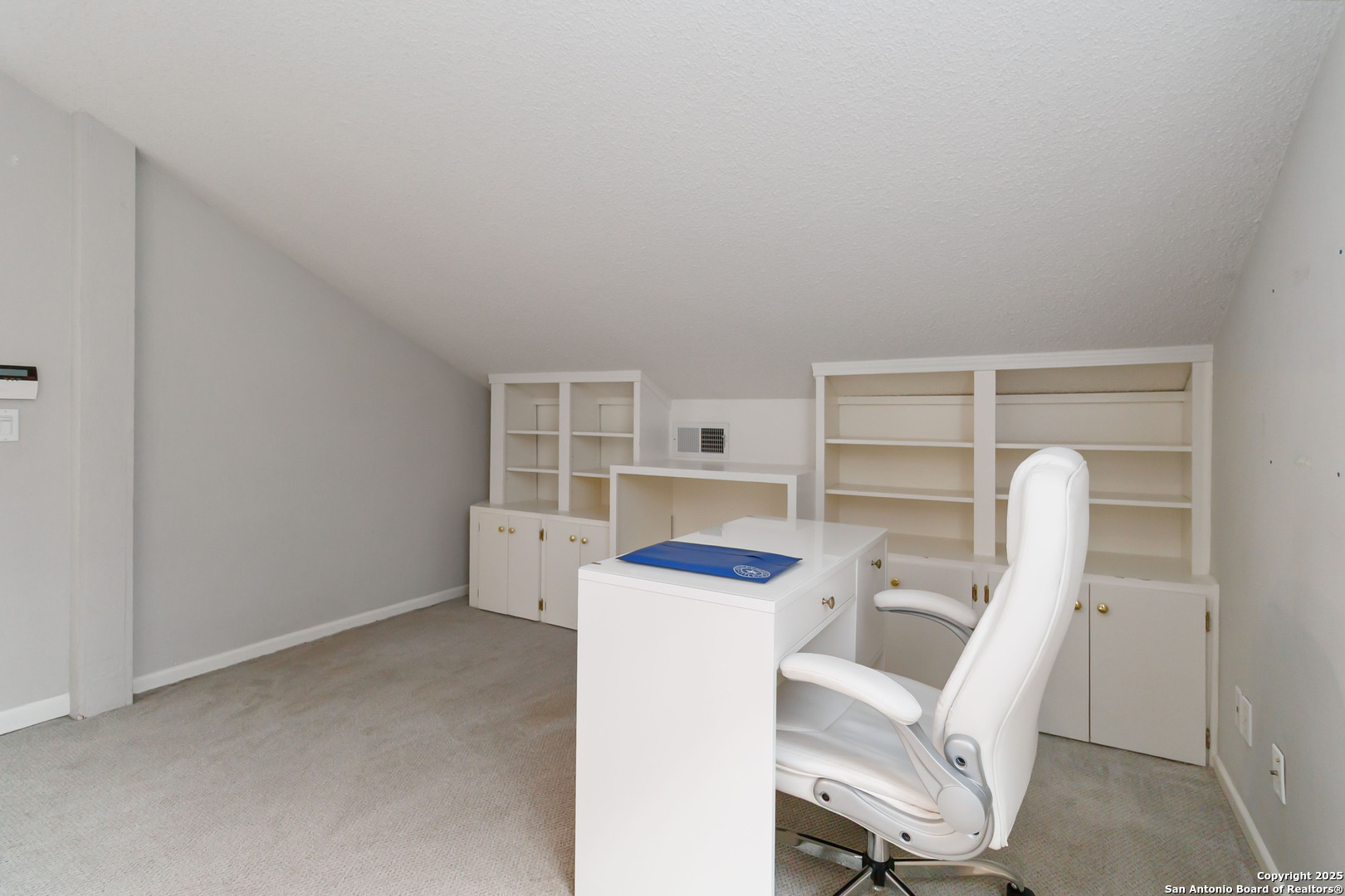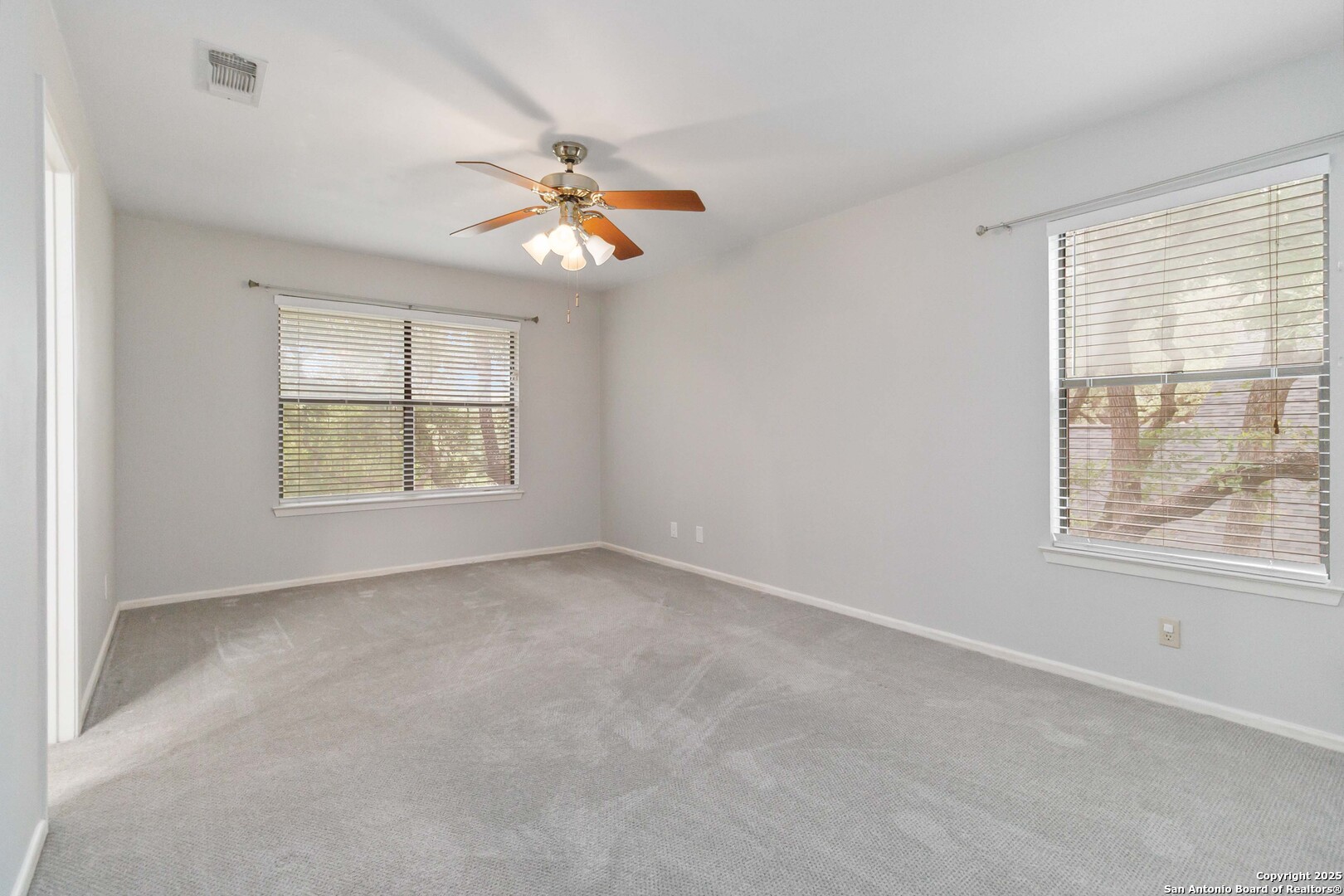 Welcome to 3210 Whisper Bells, Backing to a peaceful greenbelt, this charming and well-appointed home includes a remodeled kitchen and fresh paint inside and out. This Home is tucked between two quiet cul-de-sacs in the heart of the popular Whispering Oaks neighborhood. This home sits on a beautifully shaded, oversized lot that offers both privacy and a serene outdoor setting. Inside, you'll find a light-filled layout that feels warm and inviting from the moment you walk in. The spacious living room is filled with natural light, enhanced by a vaulted ceiling and a stunning wall of windows that overlook the backyard. The sunny kitchen and breakfast area provide the perfect space to start your day, while the formal dining room flows seamlessly into the main living area for easy entertaining. The private downstairs master suite is a true retreat, offering tranquil backyard views, a bright master bath, and a large walk-in closet. Upstairs, two large bedrooms share an adjoining bathroom and are complemented by an enclosed loft or flex space that works perfectly as a study or second living area. The home also features a dedicated office space, hardwood floors in the dining room, living room, and master bedroom, as well as a convenient walk-in attic and ample closet storage throughout. Set in a neighborhood known for its friendly neighbors and community spirit, Whispering Oaks offers an active voluntary HOA, along with access to a pool and tennis facility through separate membership. This is a home that blends comfort, style, and an unbeatable location.
