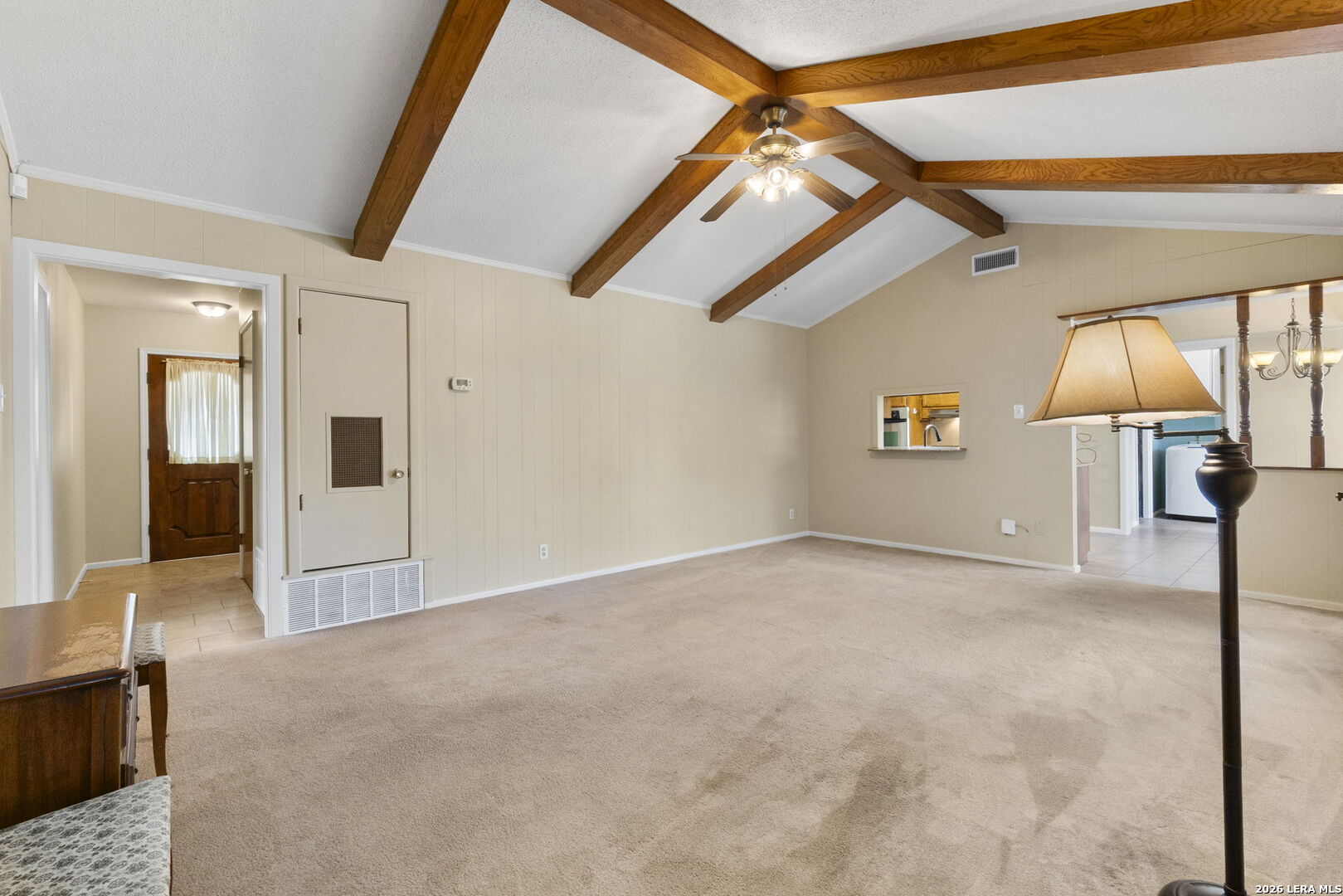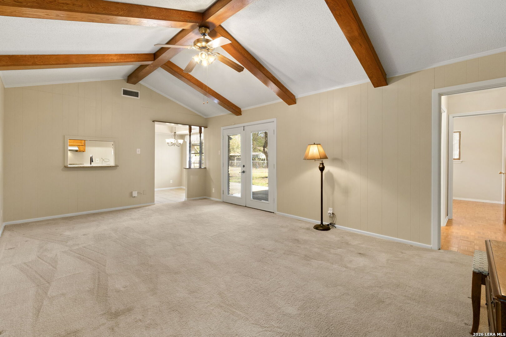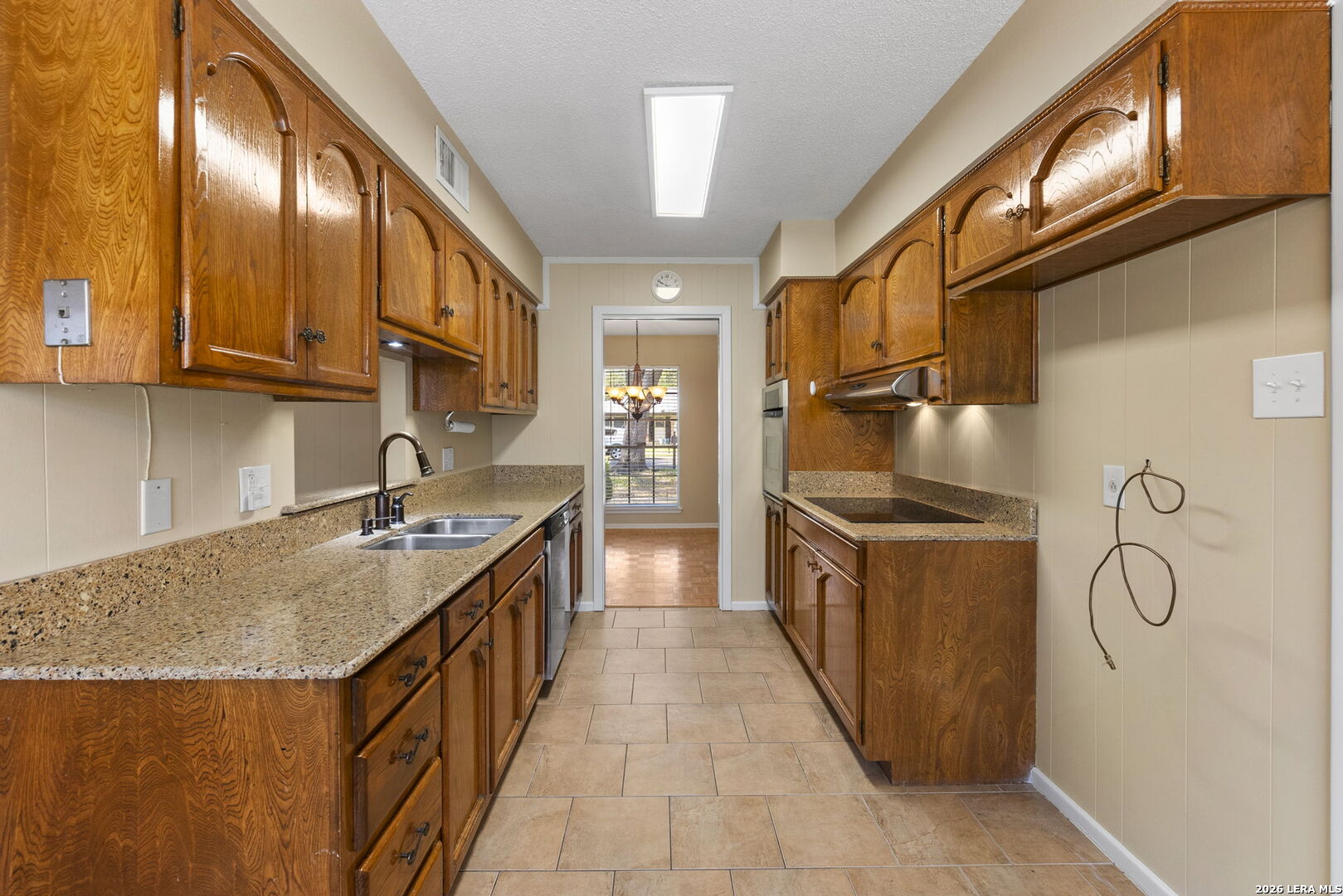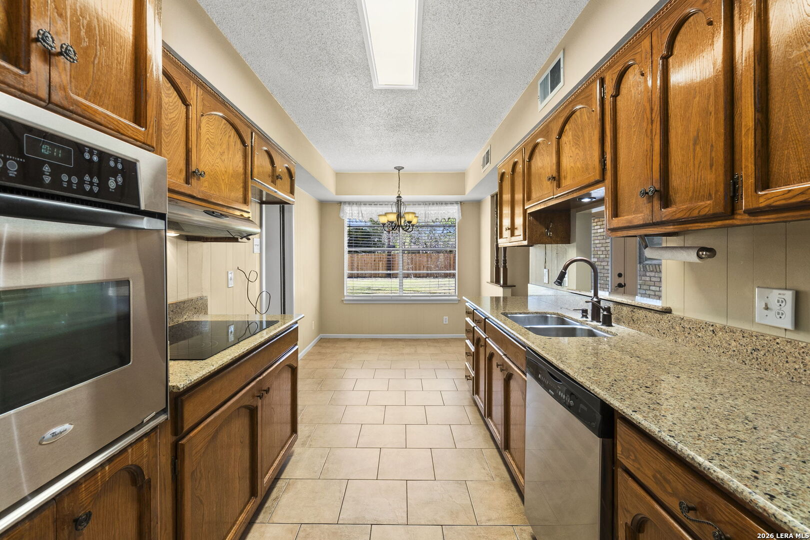 This beautifully maintained property offers the perfect blend of comfort, convenience, and classic character. Nestled in the established MacArthur Terrace neighborhood, this home features 4 bedrooms and 2 baths. Step inside the front door to a formal living and dining room filled with natural light, highlighted by a large windows with window seat/shelf. Through the dining room to the kitchen, you will find ample cabinetry, Silestone counter tops with undermount stainless steel sink and a goose neck rubbed oil bronze Moen faucet. Stainless steel appliances, include a built in-oven, vent hood and dishwasher. A smooth, glass top electric cook top is also featured. The kitchen also fetures a cozy breakfast area, which is flooded with natural light and overlooks the backyard. Adjoining the breakfast area, you will find a spacious family room with a vaulted, beamed ceiling, complete with ceiling fan for comfort. A double French patio door invites you outdoors to the spacious backyard shaded by mature trees, complete with an over size patio ideal for weekend barbecues or relaxing evenings. The master bedroom suite provides a private retreat with a shower that features a fold down seat and grab bars. The three other bedrooms feature classic wooden shutters for window coverings and share a bathroom with extended vanity and cabinet space with a combination tub/shower set up. Updated ceramic tile floors are located in entry hall, kitchen and utility room, while the the formal living and dining areas feature original parquet wood floors that also extend through all four bedrooms - a rare and timeless touch that adds warmth and character. This beautiful home is perfectly located within minutes to San Antonio International Airport, Military bases and major highways (Loop 410, Hwy 281 and IH 35).