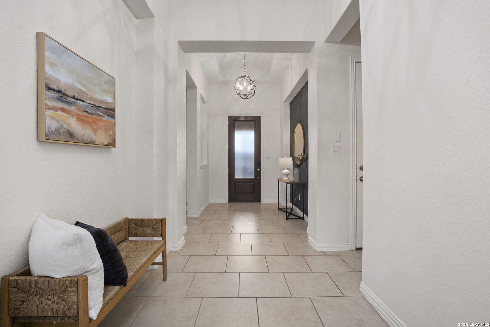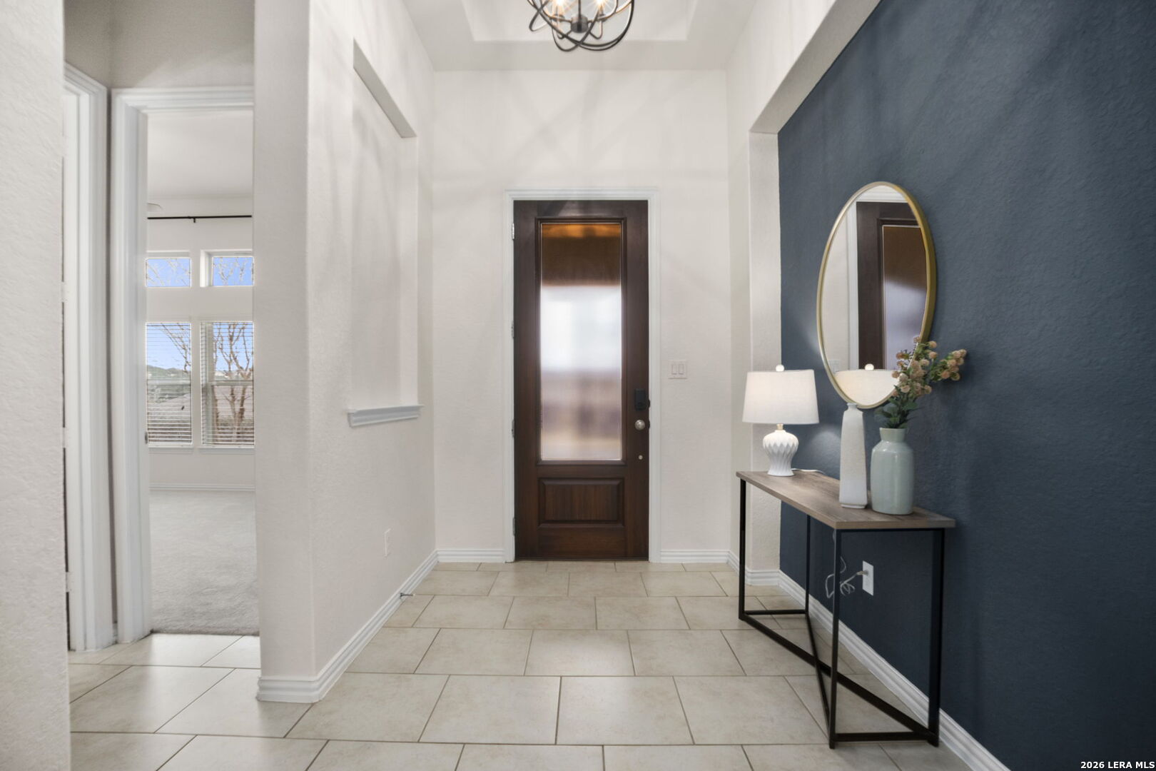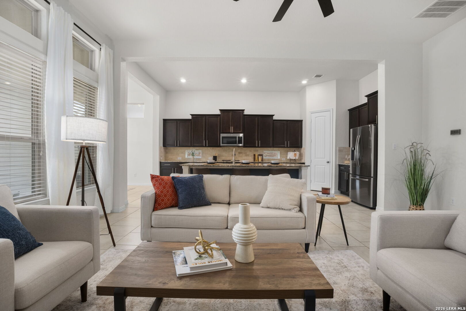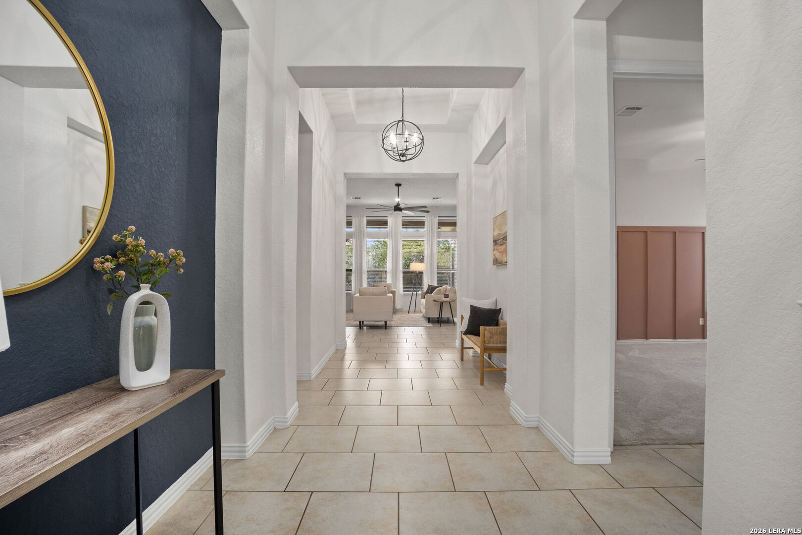 Located in the gated Johnson Ranch community in Bulverde, Texas, this beautifully upgraded single-story home at 32134 Mirasol Bend offers 3 large bedrooms, 2 baths, and a spacious open floorplan with designer touches throughout. From the custom-updated laundry room and striking accent walls to the modern lighting and thoughtful finishes, every detail has been carefully curated. The primary suite features custom wood flooring, a designer accent wall, a large bathroom, and an oversized walk-in closet. The garage includes custom overhead storage for added convenience. Enjoy outdoor living on the extended patio overlooking a flat greenbelt lot, providing both privacy and scenic views. The neighborhood offers a community pool and walking trails and feeds into highly regarded Comal ISD schools (Smithson Valley HS), making this home an ideal blend of comfort, style, and functionality.
