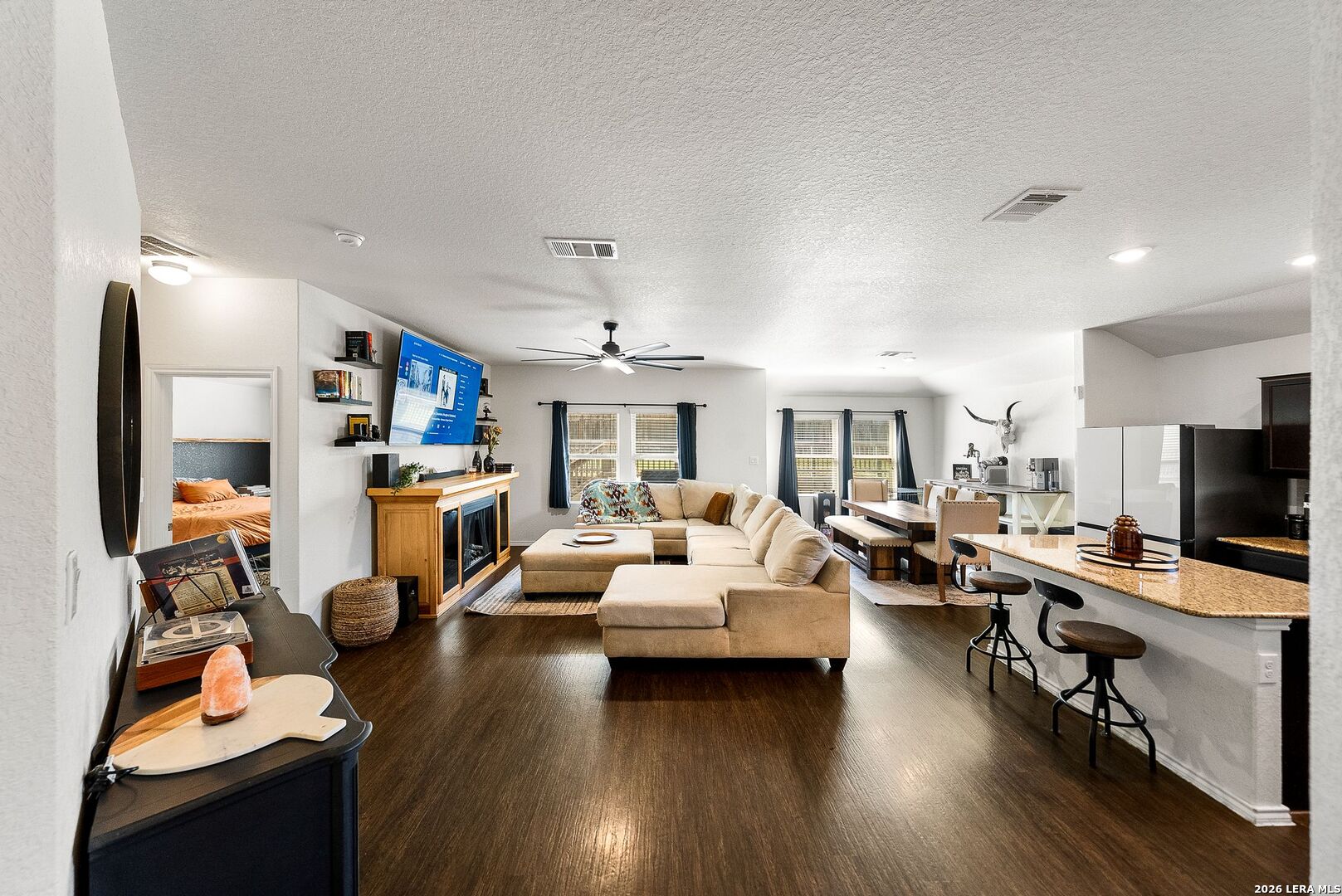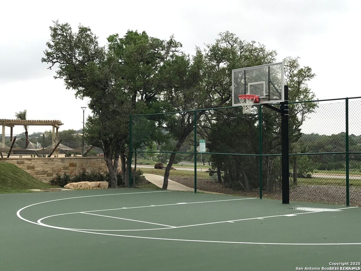 The seller is willing to assist with the buyer's closing costs with the right offer, and there is also a special lender incentive available! Stunning brick home perfectly positioned on a premium corner lot in a highly sought-after resort-style community, featuring an open floor plan with high ceilings and an abundance of natural light that fills the home with warmth and elegance. This beautifully designed home offers 3 spacious bedrooms plus a versatile flex room ideal for a home office, gym, or additional living space. Two secondary bedrooms are conveniently located at the front of the home, providing a functional layout and added privacy from the main living areas. All bathrooms feature tile finishes, offering both durability and a clean, upscale look. The private primary suite is thoughtfully situated at the back of the home for maximum privacy. It features an en-suite bathroom with double vanities, a large garden soaking tub, a separate walk-in shower, and a walk-in closet. The heart of the home showcases a bright, open-concept living area that flows effortlessly into a dedicated dining space and a chef-inspired kitchen complete with quartz countertops, a large center island, abundant cabinetry, pantry, and modern finishes-perfect for entertaining and everyday living. Enjoy added comfort and efficiency with energy-efficient features, ceiling fans, window blinds, a garage door opener, and fiber optic high-speed internet, making this home ideal for remote work, streaming, and modern living. Step outside to your private outdoor retreat, featuring a covered patio, a full sprinkler system in both the front and back yards, and a storage shed that conveys with the home. The upgraded garage is a standout with sleek epoxy flooring, painted walls, a fully paid-off water softener, and a built-in workbench, offering both style and functionality. Additional premium features include a Blink front door camera and exterior security cameras for added peace of mind. Washer and dryer are negotiable. This home truly checks every box: style, functionality, upgrades, and location. This property is located in a sought-after resort-style community, where residents enjoy top-rated COMAL ISD schools along with amazing amenities. COMMUNITY: Imagine living in a RESORT STYLE COMMUNITY where every day feels like a vacation! Experience modern living with amenities like a stunning infinity pool, a brand-new Junior Olympic-sized lap pool, and a splash pad for kids. Access a contemporary clubhouse, a well-equipped 24/7 gym, a fitness center, and enjoy yoga classes. Discover miles of scenic walking and biking trails and access to the dog-friendly Kleck Park. Challenge friends to basketball, host BBQs, or spend quality time with your children on multiple playgrounds, where one features an exhilarating zip line, while the other offers diverse play options! Join an engaging community center hosting live music, events, and food trucks. Relax by the catch-and-release fishing pond. Hidden Trails offers a vibrant lifestyle with endless possibilities! LOCATION: Hidden Trails subdivision provides convenience, located just off Highway 281, with a few minutes' drive to nearby shopping at HEB and Walmart, as well as Starbucks, restaurants, and medical facilities. All your daily needs are within easy reach. The San Antonio Airport is a mere 30 minutes away. Additionally, the stunning Canyon Lake is just a short 20-minute drive.