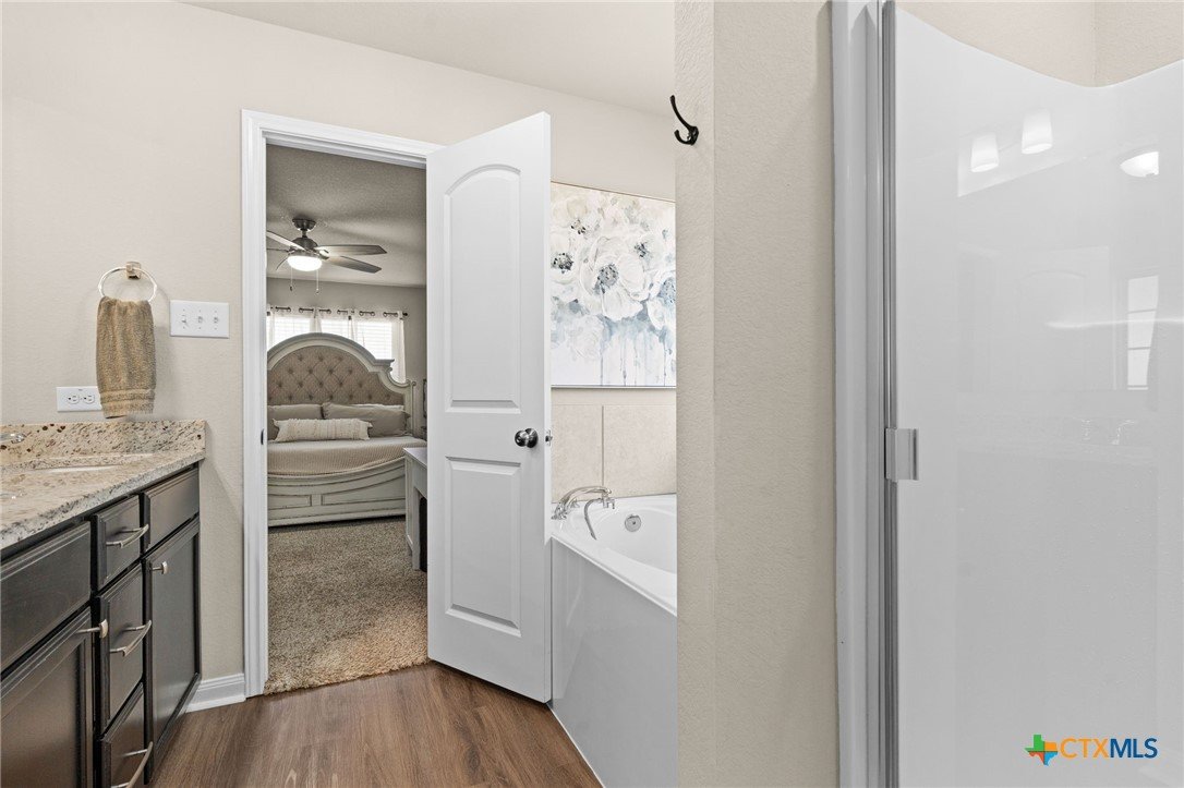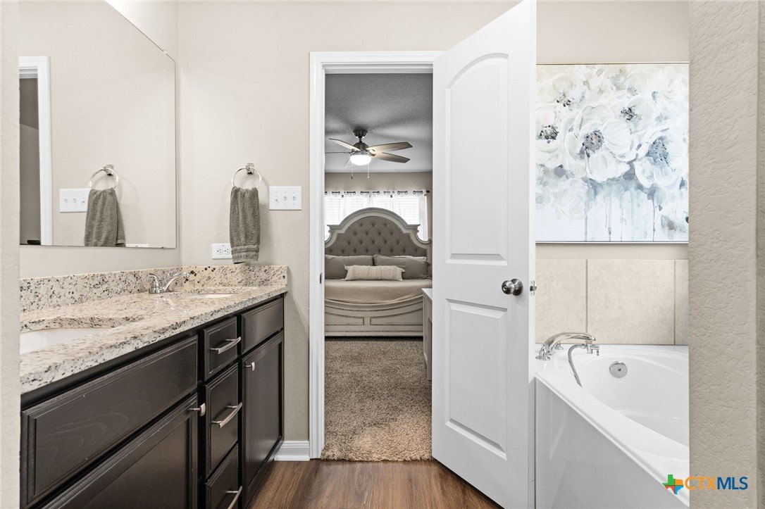 Charming 3-Bedroom Home in Killeen – Upgraded & Move-In Ready! Welcome to this beautiful Stylecraft-built 3-bedroom, 2-bathroom home in Killeen, Texas! Designed for comfort and style, this home features a spacious living room with an electric fireplace, perfect for cozy evenings. The upgraded kitchen boasts custom cabinets, a stylish backsplash, and elegant granite countertops, making it both functional and stunning. A nice-sized pantry provides ample storage space, while a separate laundry room offers convenience and organization. The primary suite is a retreat of its own, offering double vanities, a separate tub and shower, and a generous walk-in closet. Enjoy outdoor living in the nice-sized backyard with no back residential neighbors, ensuring extra privacy. Plus, the front and back sprinkler system keeps your lawn looking lush year-round. Located in a fantastic location, this home is conveniently close to schools, shopping, and dining, making everyday errands and entertainment a breeze. Additionally, the community offers amazing amenities like parks, a pool, splash pads, and walking trails, perfect for outdoor activities. Don't miss this opportunity—schedule your showing today!