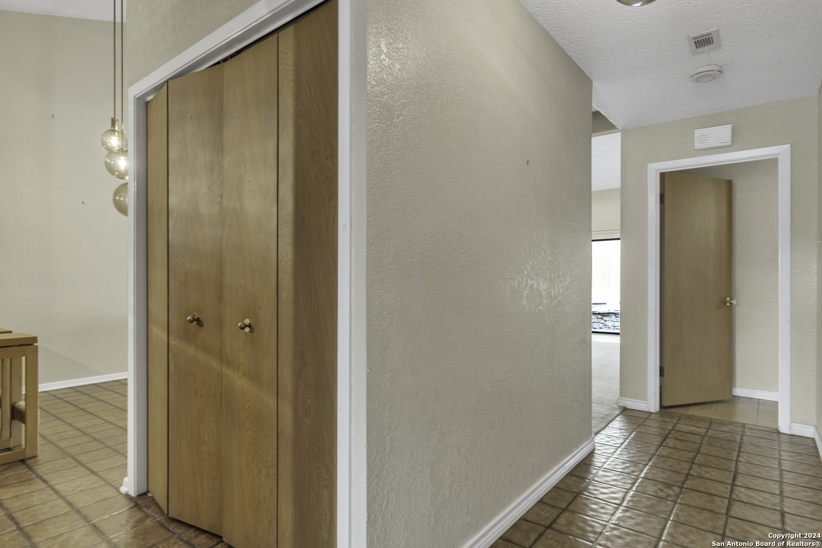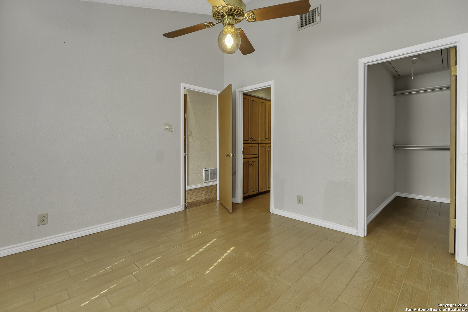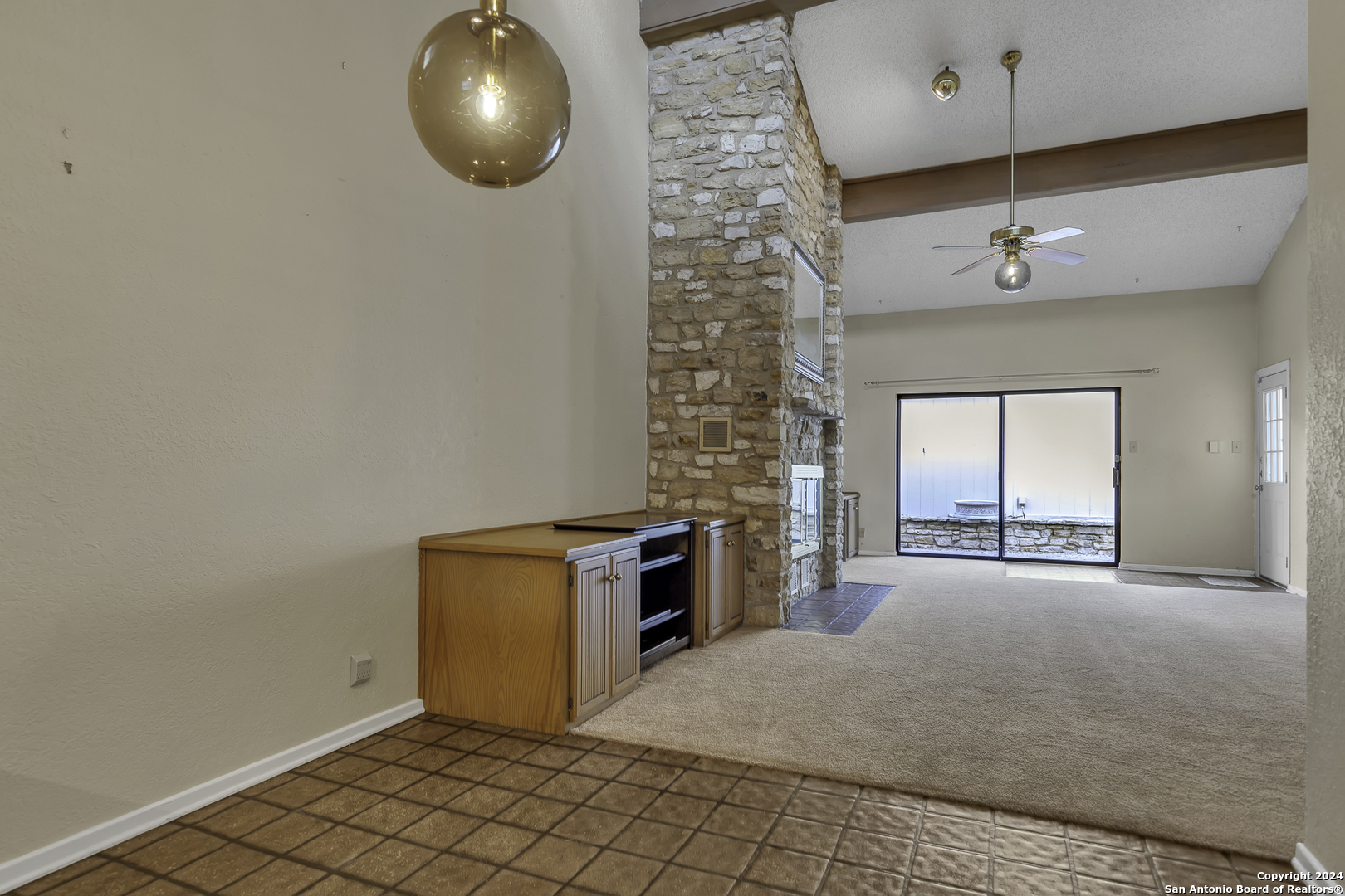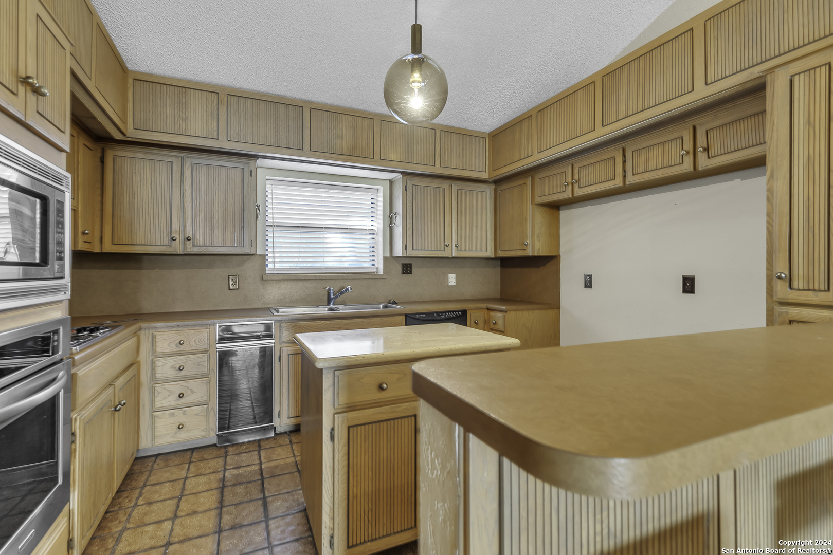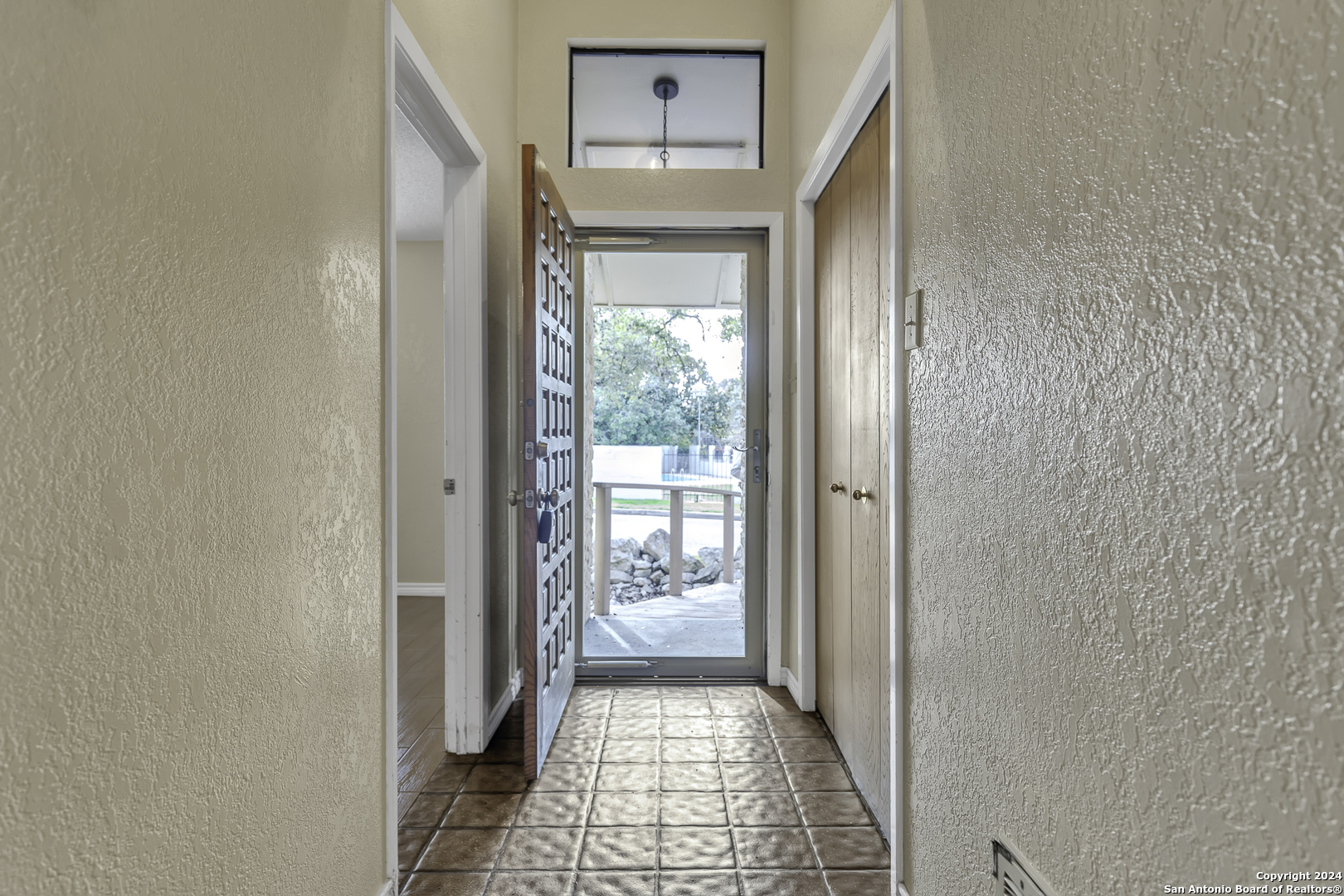 This beautiful condominium is nestled in a quiet forest of ancient oak trees, just minutes from the Medical Center without congested traffic and so close to shopping. Easy access to IH10 and Loop 410.The open concept kitchen/living area boasts a huge stone-faced fireplace and soaring ceilings filled with natural light and built in storage and shelves. Both bedrooms and bathrooms are spacious, have large closets and storage/cabinets, a floored attic for extra storage. Two car garage with work bench/shelving. Private rear driveway that connects to the house through the patio. Neighborhood pool and clubhouse across the street.