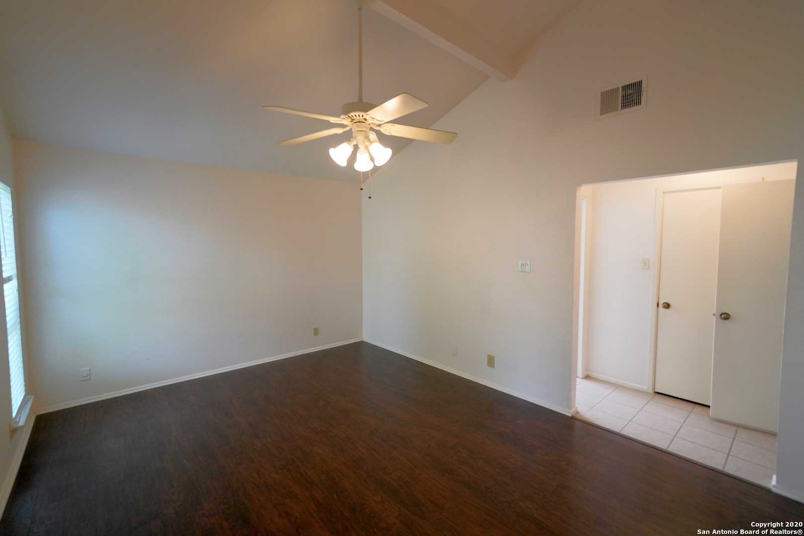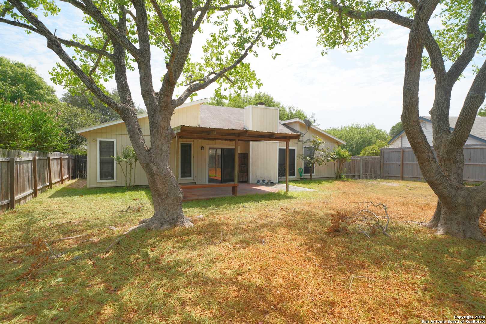 You'll enjoy this lovely updated home in the well-established Morning Glen neighborhood. This property has ceramic and vinyl plank flooring throughout which will make cleaning a breeze. The family room has skylights that bring in a lot of natural light and also features a fireplace that serves as the focal point. The kitchen has custom cement countertops, upgraded light fixtures, and open-concept cabinetry. The master suite is separate from the secondary rooms and is very spacious, the master bathroom has lots of natural light from an additional skylight as well. The secondary rooms have vinyl plank and are also very spacious. The backyard features a covered patio deck that has built-in seating, a privacy fence, and large trees that provide great shade. This home is a perfect place to entertain and is convenient to all that NE San Antonio has to offer!
