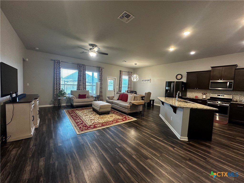 2017 Steven Klein Built home located in Terra Vista. 3 Bedroom 2 Bathrooms. This property boasts a beautifully landscaped yard front and back with a nice sized lot. The backyard has a covered patio for entertaining or grilling outside along with a charming sitting area next to the firepit for your morning coffee or your evening cocktails. Step into the new front door and enter to an open floorplan that brings you right into the living room with beautiful wood like laminate flooring. The kitchen design has a granite breakfast bar, lots of granite counter space as well as lots of cabinets for storage. Kitchen has newly installed built in microwave and gently used appliances. Master is spacious with double vanity sinks and walk in shower. Call agent for an appointment showing.