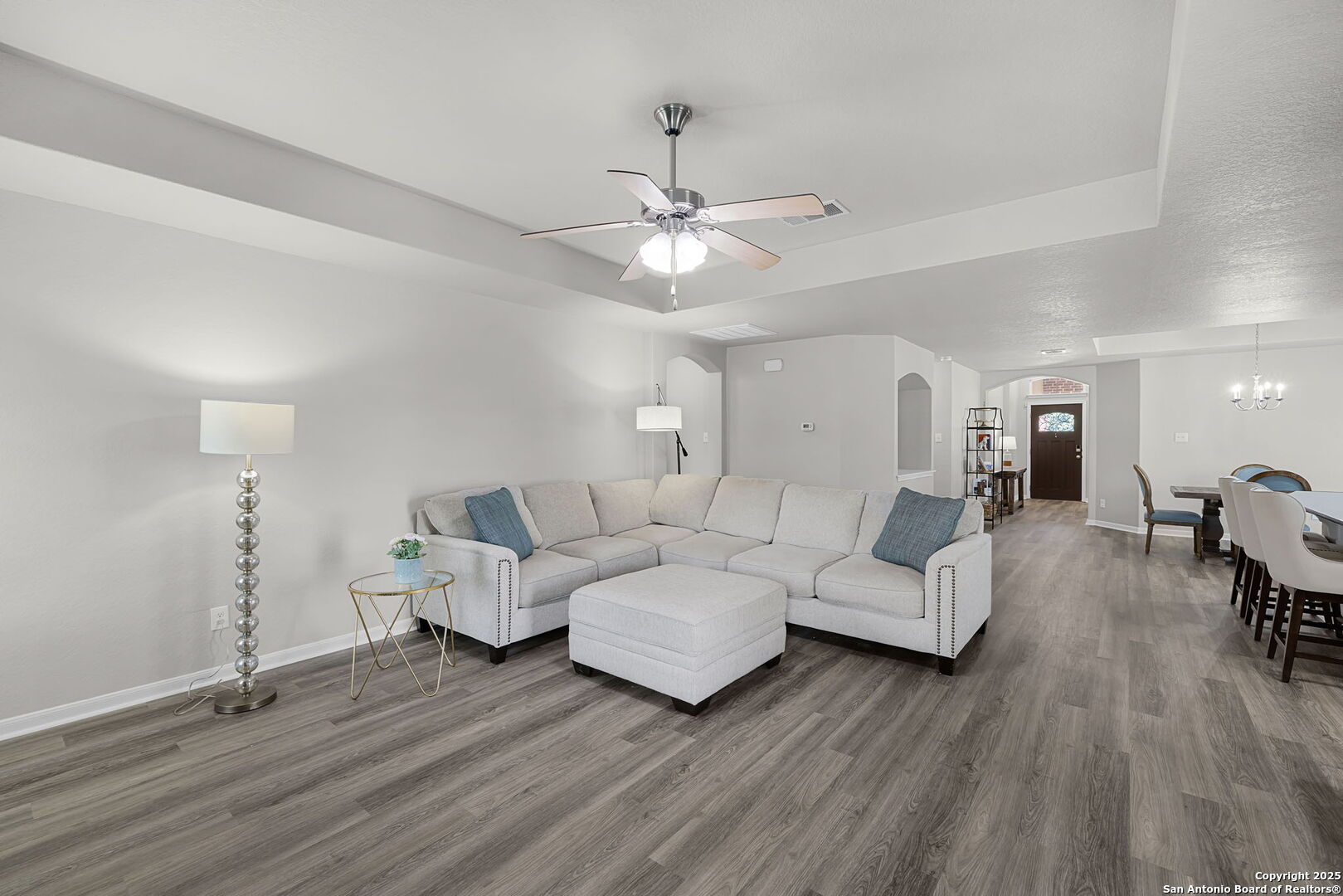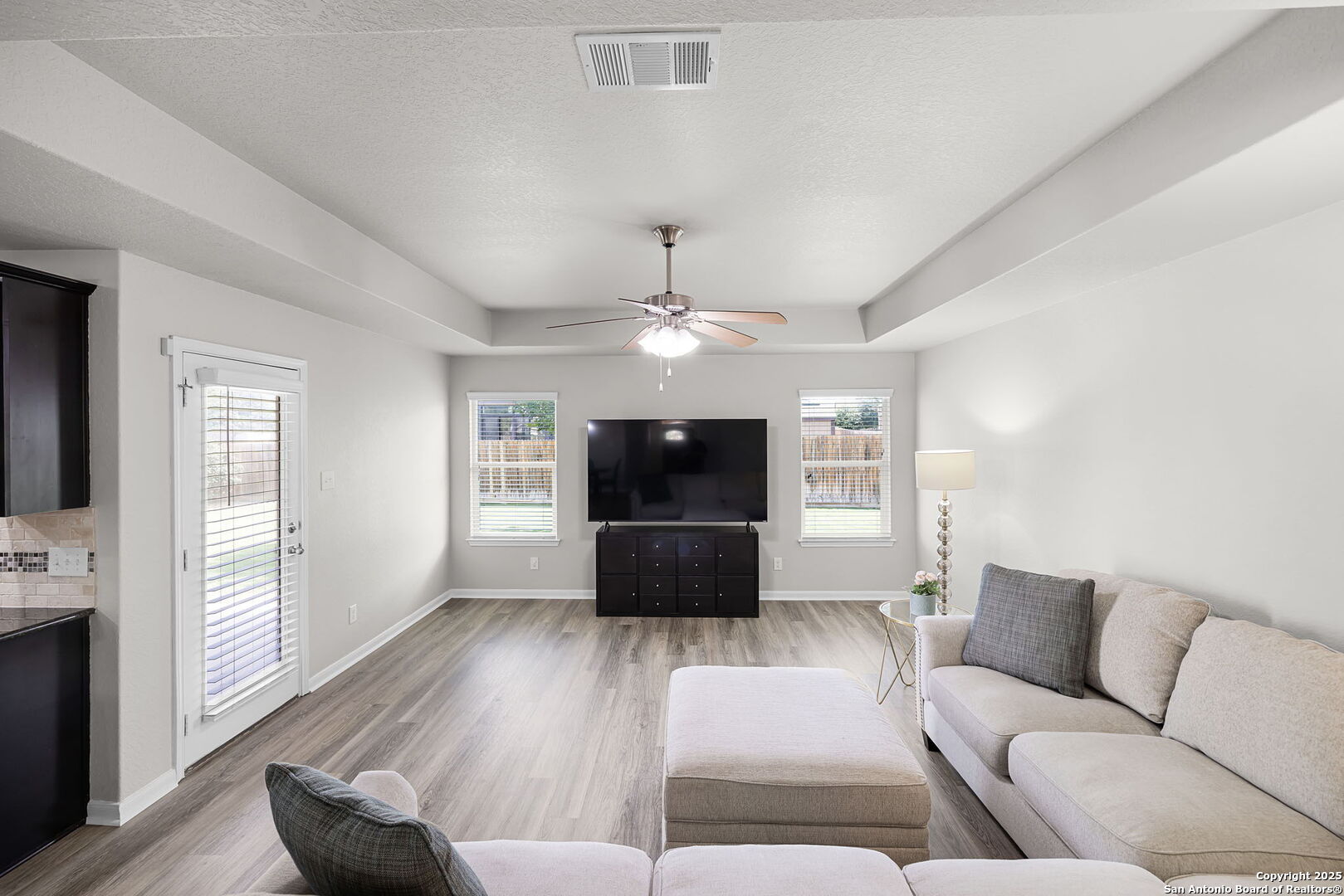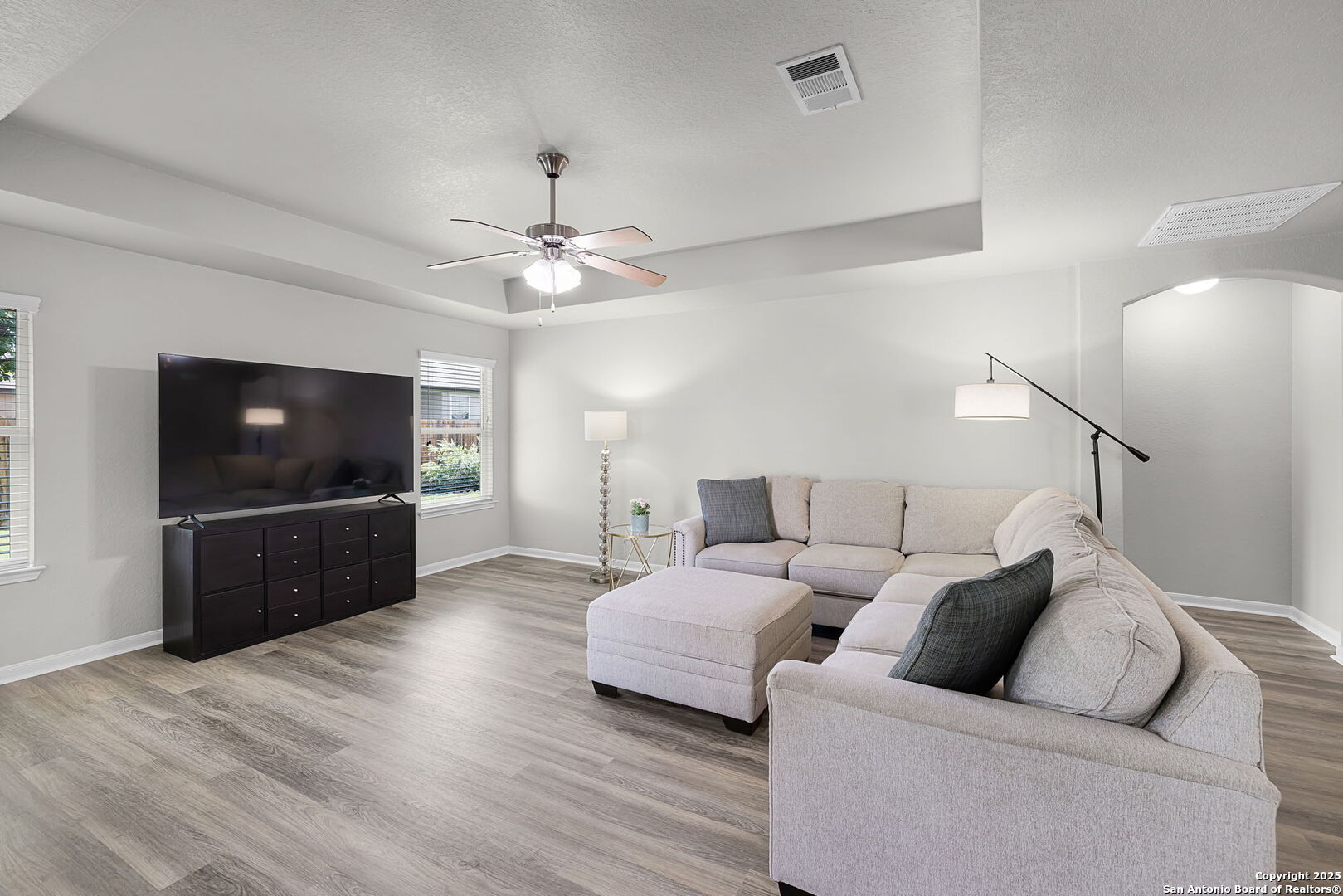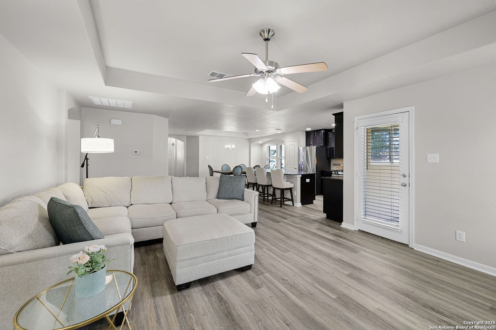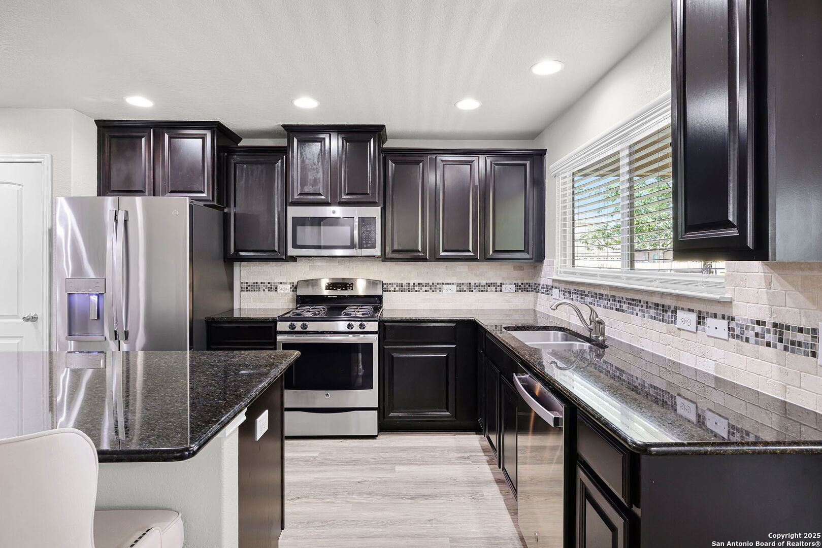 Welcome to 322 Creekview Way, a beautifully updated single-story home in the desirable Oak Creek community of New Braunfels. This 3-bedroom, 2-bathroom home offers 1,771 square feet of open-concept living with fresh interior paint and brand-new luxury vinyl plank flooring throughout-no carpet in sight. The spacious kitchen features granite countertops, an island with breakfast bar seating, and is open to both the dining and family rooms, creating the perfect flow for everyday living and entertaining. The thoughtful split-bedroom layout offers privacy for the primary suite, which includes a dual vanity, walk-in shower, and generous closet space. Enjoy added peace of mind with modern finishes, a covered back patio, and a two-car garage with epoxy floors. Located just minutes from I-35, Creekside Town Center, H-E-B Plus, and the charm of historic Gruene, this home is perfectly positioned for convenience and connection. Oak Creek residents enjoy access to resort-style amenities, including a pool, playground, and clubhouse, and are served by highly rated Comal ISD schools with Oak Creek Elementary right in the neighborhood. This move-in ready home combines modern comfort with a prime New Braunfels location-don't miss it!
