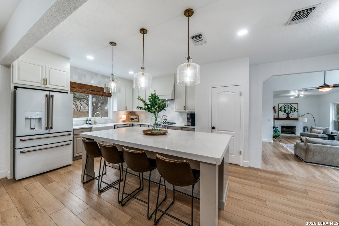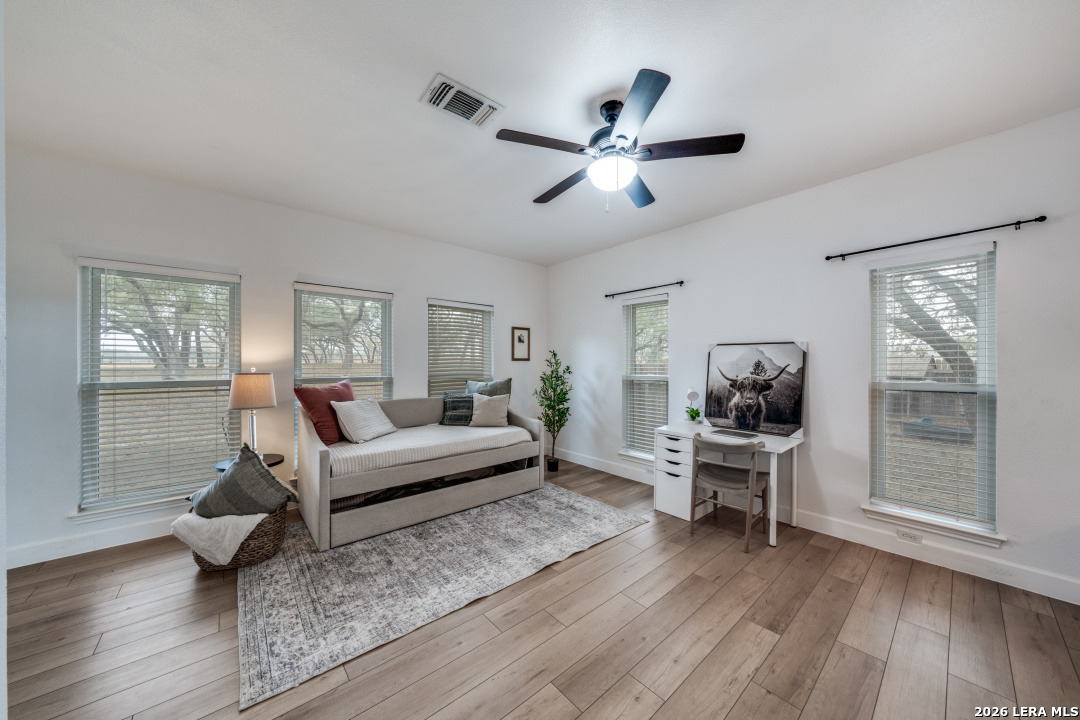 15+/- Acres in Shannon Ridge! ~10 minutes to Floresville. ~35 minutes to San Antonio. As soon as you drive though the custom automatic gate, you know you are on special place. Tons of live oaks line the blacktop road and parking area. Landscaped elegantly. This home was done right with the colors and style the owner chose. Fully updated ~3,471 sq ft, 4 bed 2.5 half bath home.2 Living rooms. Open concept kitchen and dining room. Quartz countertops throughout. Laminate wood, carpet, brick and tile flooring. New windows throughout. New AC unit. New roof. Huge back deck. Property is fenced and crossed fenced for cattle (Ag Exempt). Working pens. Work shop. Small pond that holds water great. The creek gives the land some roll to it. More oaks throughout the property! This is a good one with so much to offer and you will not want to miss it!
