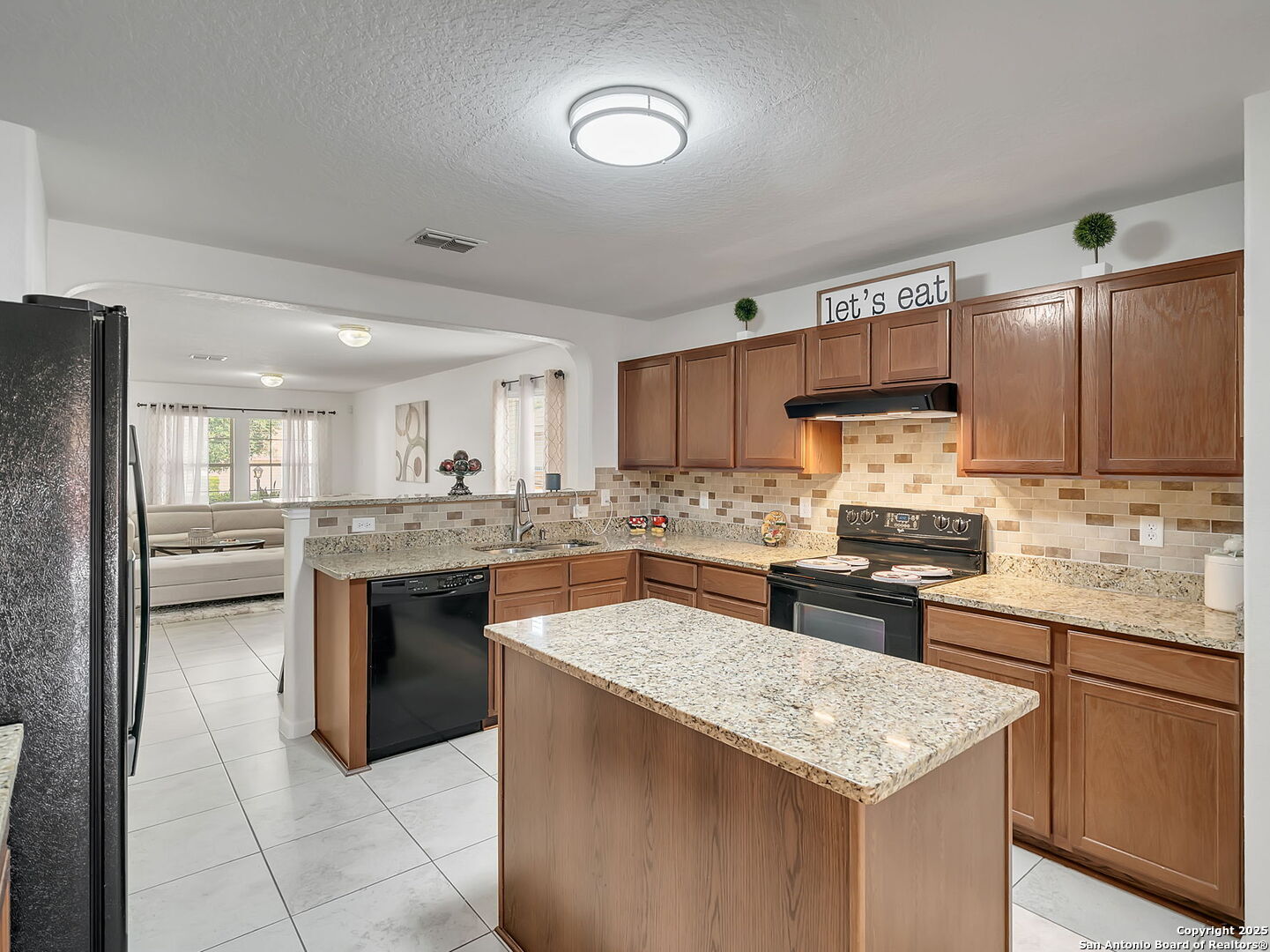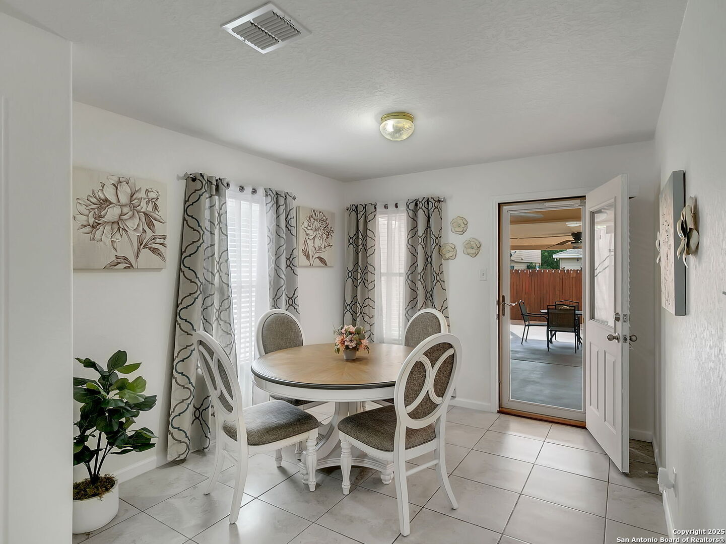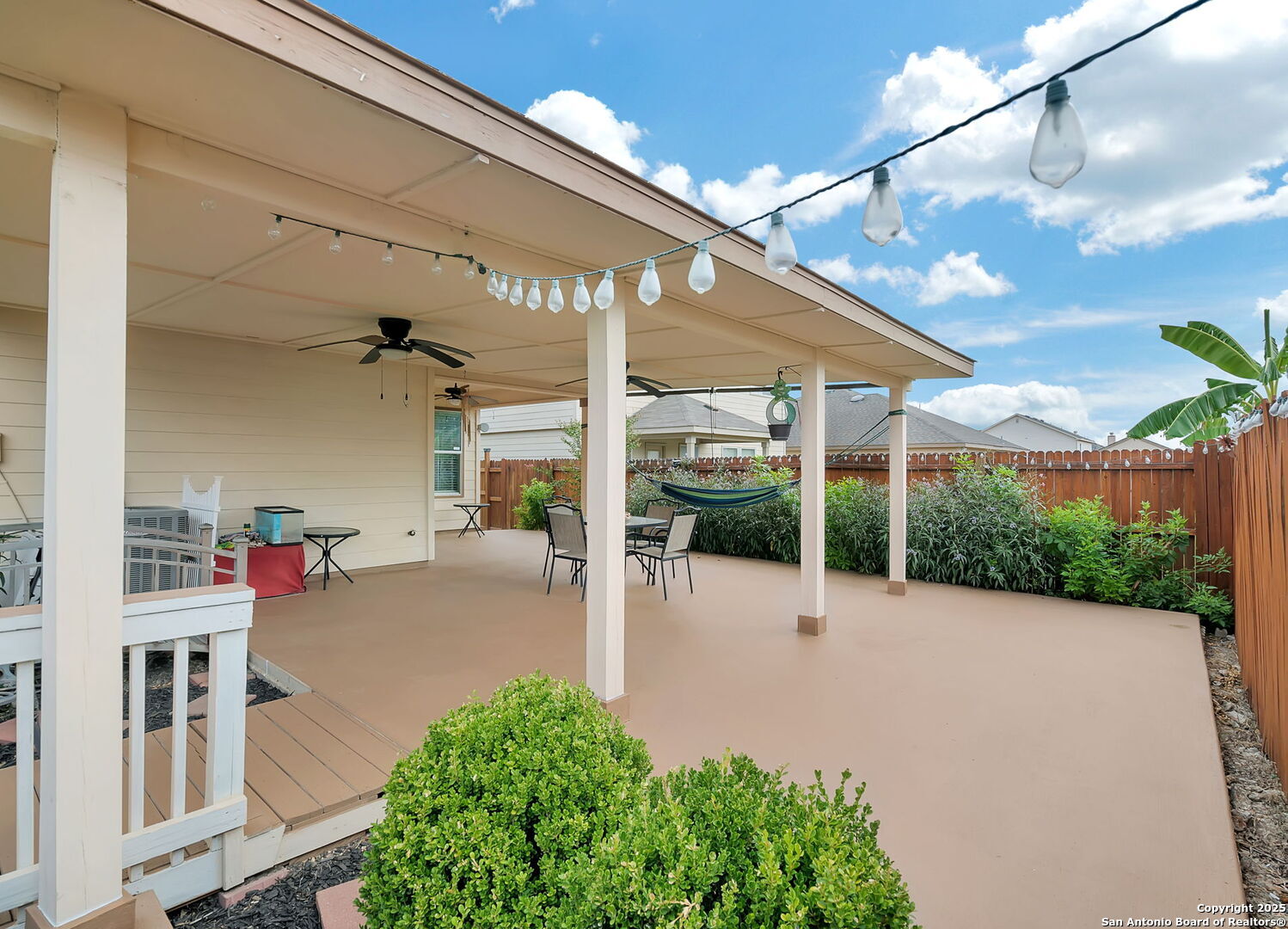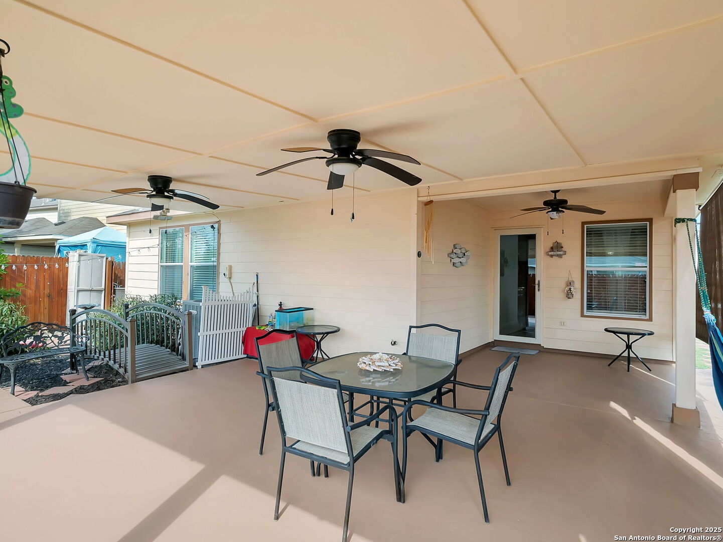 Welcome home to this beautifully maintained single-story retreat where comfort and pride of ownership shine through every detail. The open-concept design flows effortlessly from the granite kitchen to the spacious living and dining areas - perfect for family gatherings or hosting friends. No carpet here - only durable laminate and ceramic tile flooring throughout for easy maintenance and modern style. The private primary suite includes a separate water closet, while the guest bath features a brand-new vanity. Step outside to your extended Texas-sized covered patio, complete with privacy shades and a charming decorative bridge, ideal for outdoor dining or relaxing weekends. A 1012 storage shed conveys, adding bonus space for tools, hobbies, or extra storage. Located in a quiet, established neighborhood close to shopping, schools, and major highways - this home truly combines space, comfort, and value in one move-in-ready package!