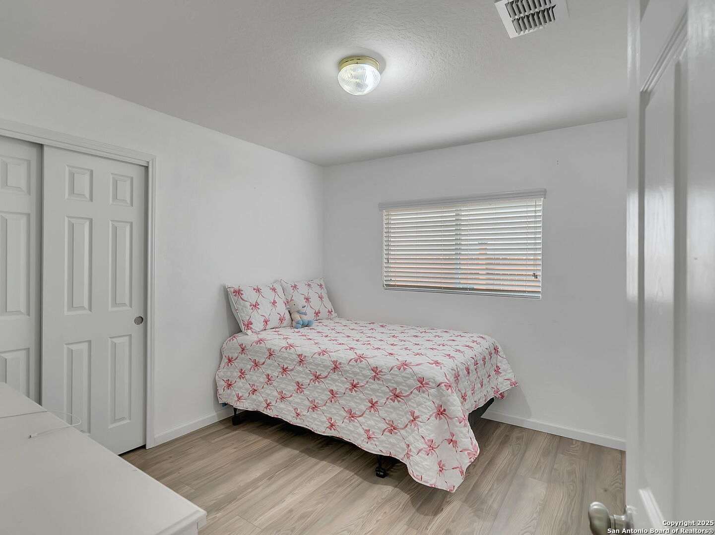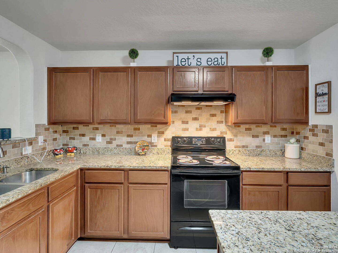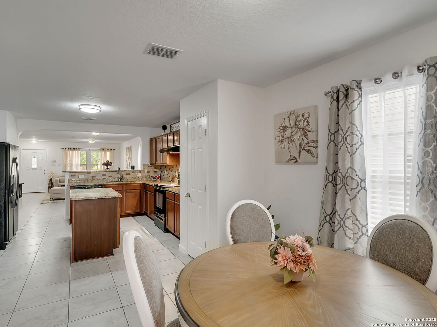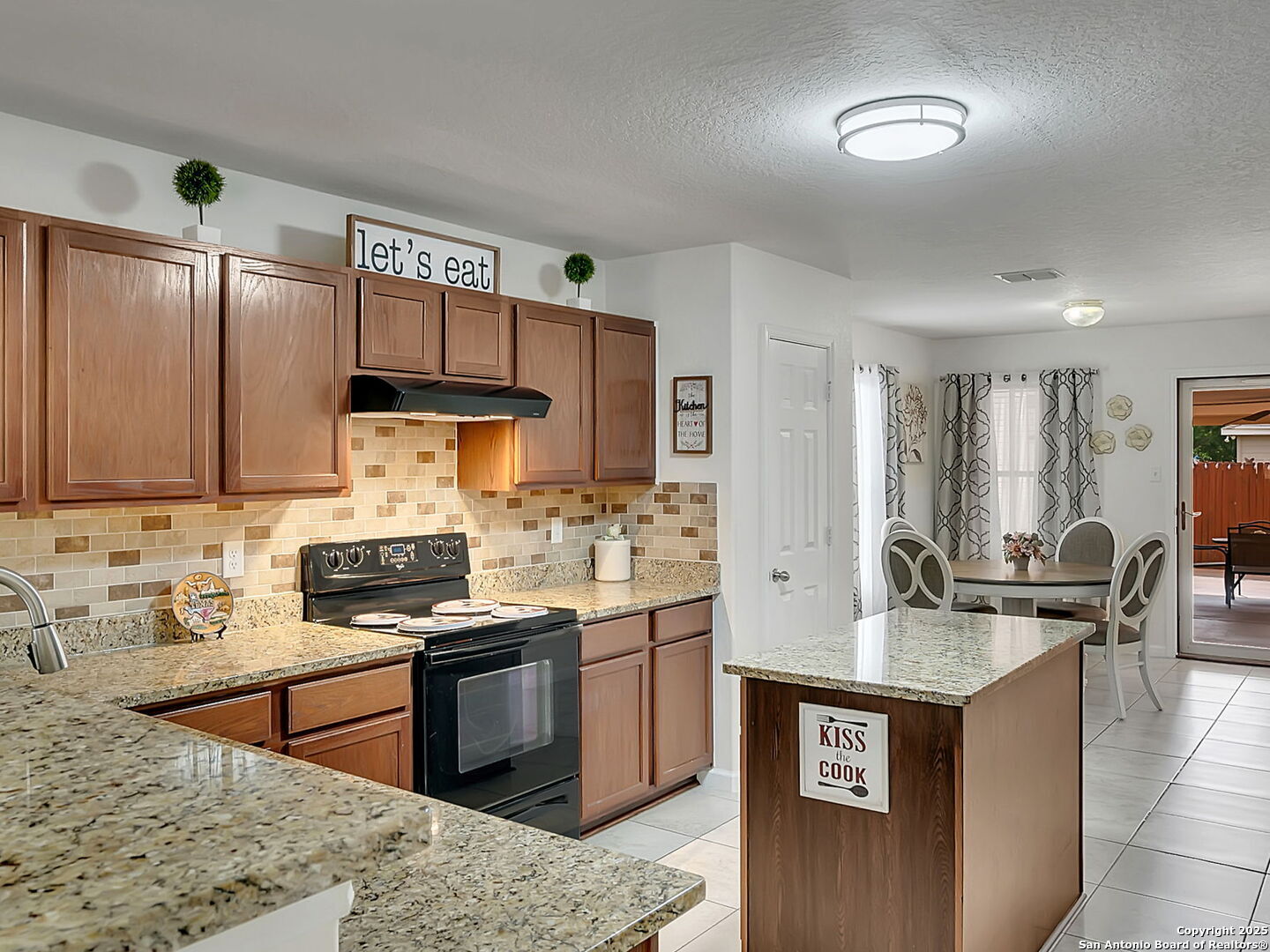 Welcome home to this beautifully maintained single-story retreat where comfort and pride of ownership shine through every detail. The open-concept design flows effortlessly from the granite kitchen to the spacious living and dining areas - perfect for family gatherings or hosting friends. No carpet here - only durable laminate and ceramic tile flooring throughout for easy maintenance and modern style. The private primary suite includes a separate water closet, while the guest bath features a brand-new vanity. Step outside to your extended Texas-sized covered patio, complete with privacy shades and a charming decorative bridge, ideal for outdoor dining or relaxing weekends. A 1012 storage shed conveys, adding bonus space for tools, hobbies, or extra storage. Located in a quiet, established neighborhood close to shopping, schools, and major highways - this home truly combines space, comfort, and value in one move-in-ready package!