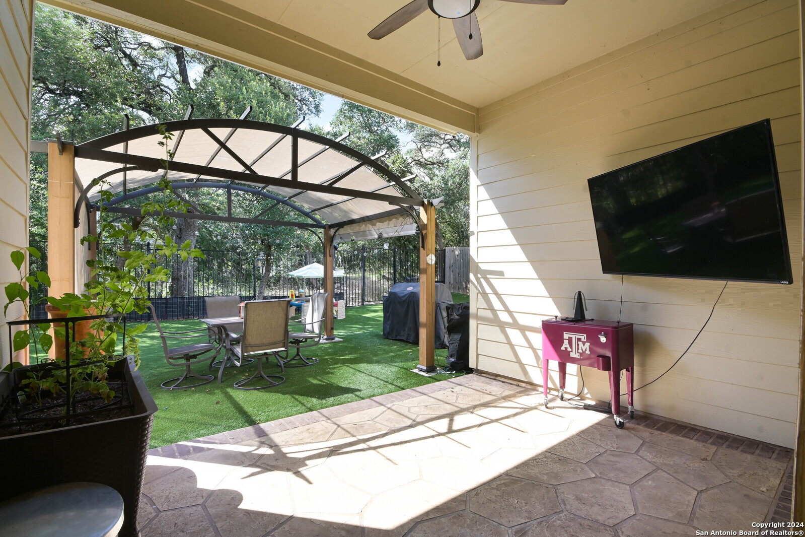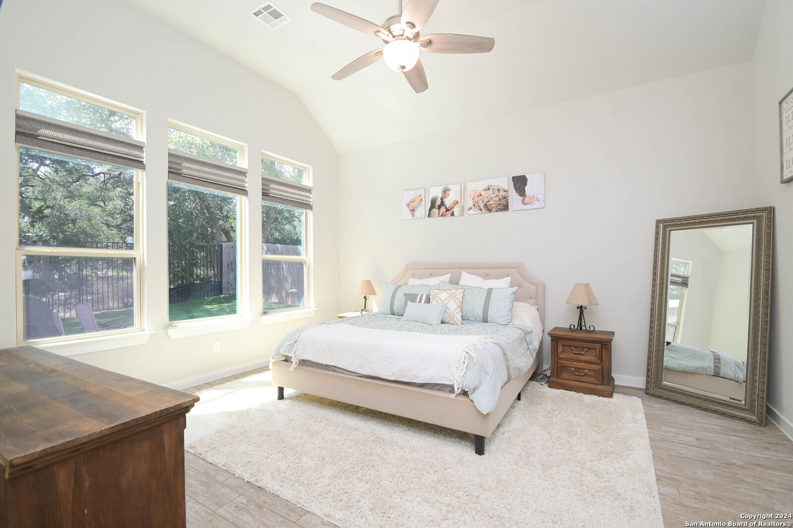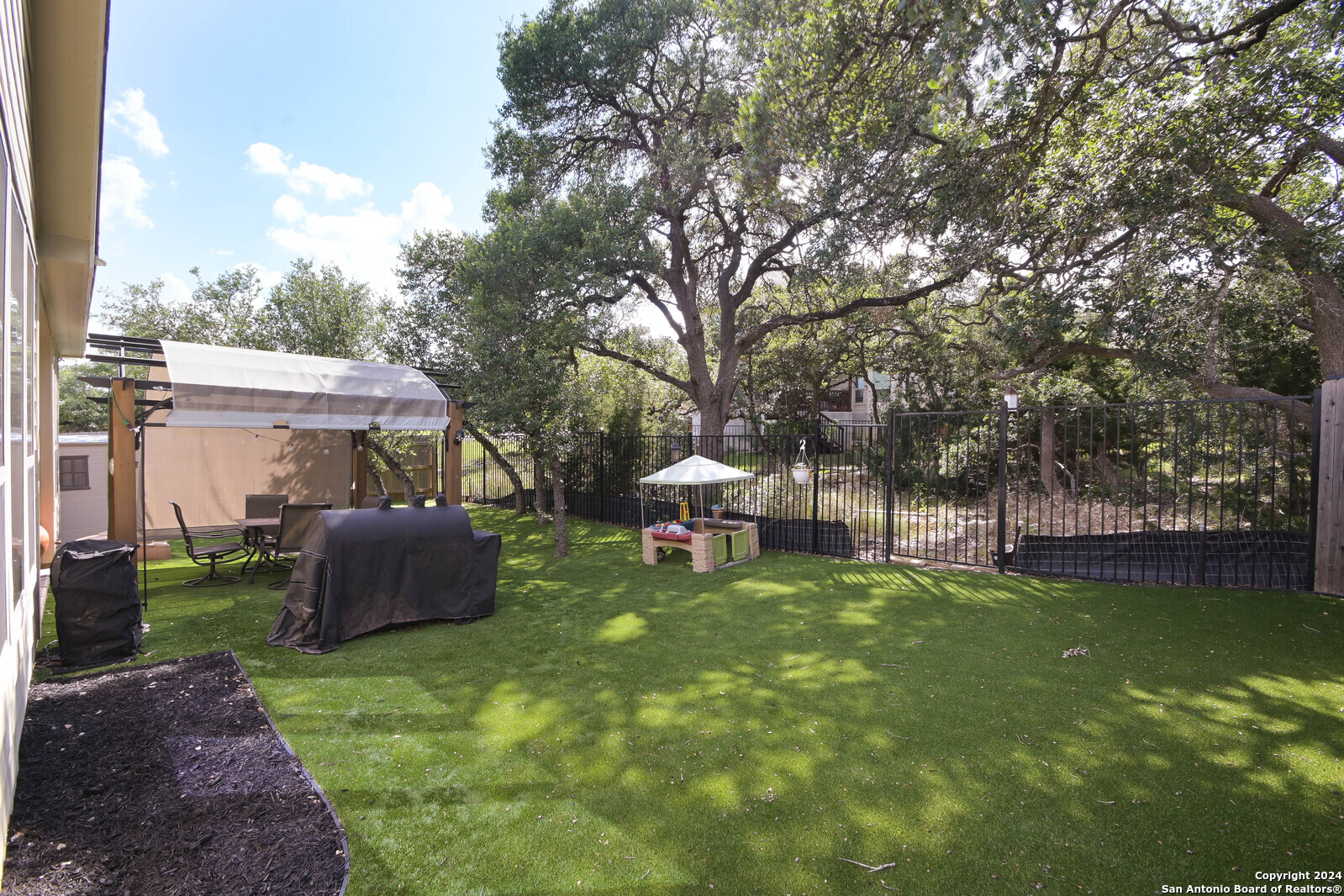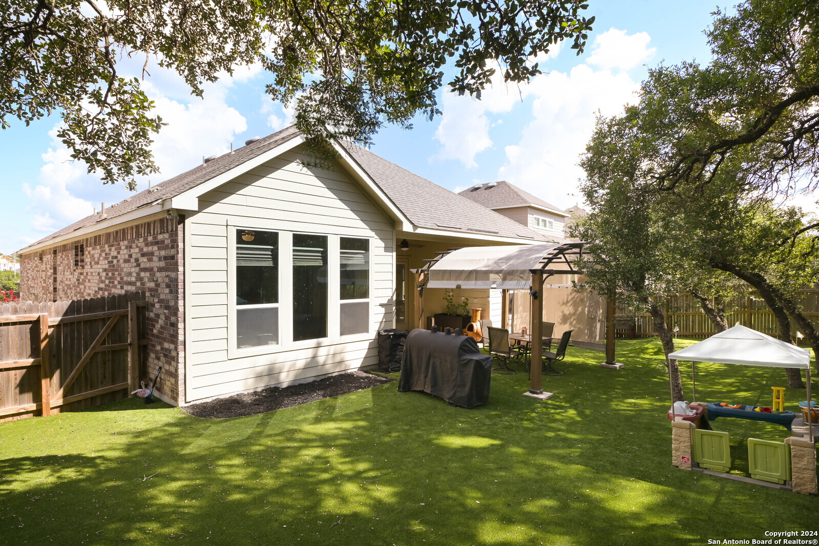 Welcome to the perfect family home. Located in the quiet subdivision just outside of downtown Bulverde, Ventana. 2019 M/I build featuring 4 bedrooms, 3 bathrooms. secondary bedroom with an ensuite bath, open, light and bright floorplan & much room for your furniture. With the kitchen being the heart of the home, island overlooking the main living space with extra seating, high ceilings, ample, cabinet storage & a walk in pantry. Large windows will surely greet you into the main primary with a gorgeously updated bathroom featuring a double entry walk in shower. Nicely covered patio with an extended pergola. Backyard is fully turfed as of 2021 with an added fun bonus of your very own putting green! Oaks giving generous shade as well as a green space between you and your back neighbors. Sure to enjoy many evenings in this great outdoor space!