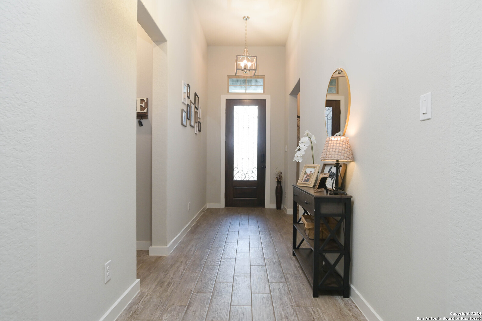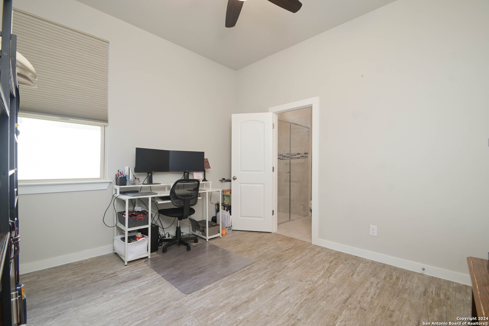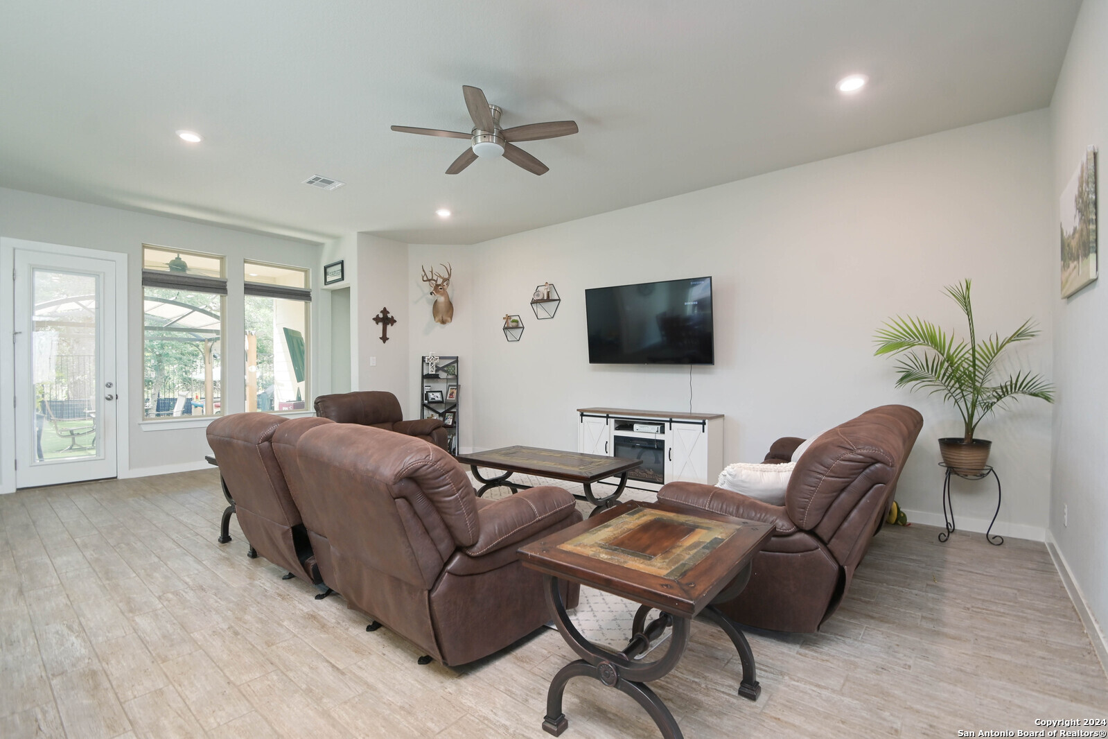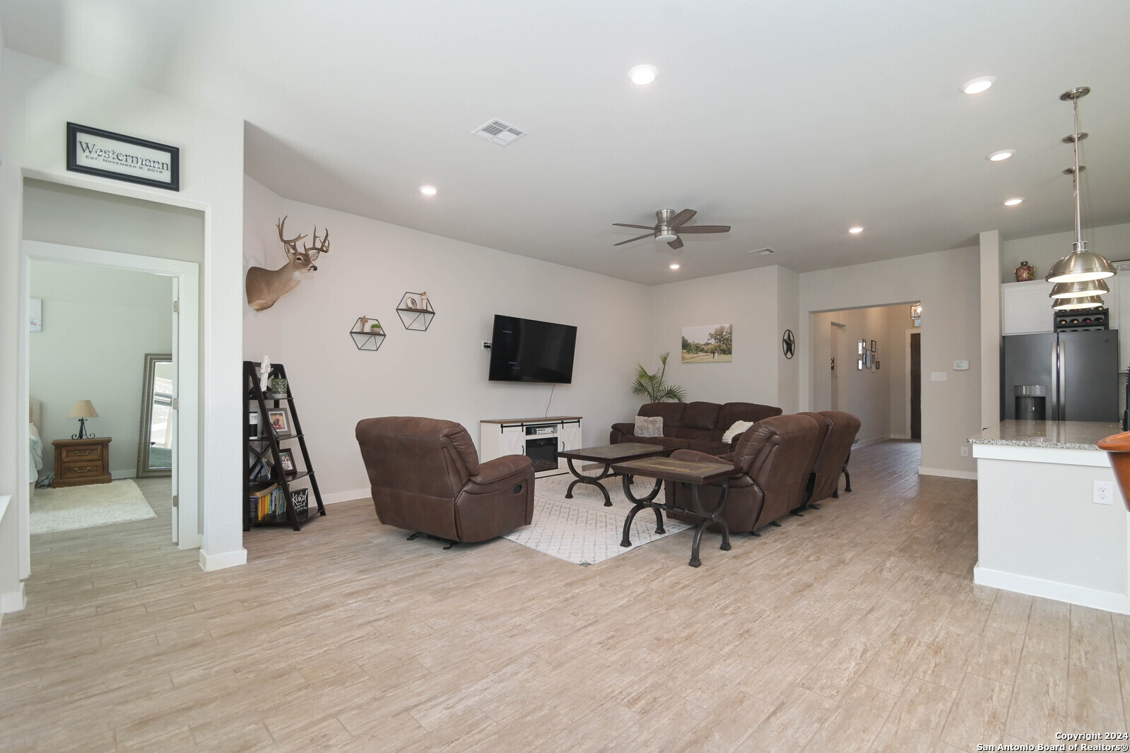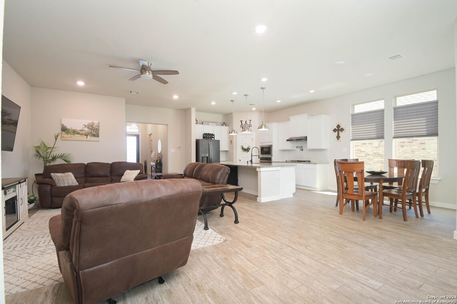 Welcome to the perfect family home. Located in the quiet subdivision just outside of downtown Bulverde, Ventana. 2019 M/I build featuring 4 bedrooms, 3 bathrooms. secondary bedroom with an ensuite bath, open, light and bright floorplan & much room for your furniture. With the kitchen being the heart of the home, island overlooking the main living space with extra seating, high ceilings, ample, cabinet storage & a walk in pantry. Large windows will surely greet you into the main primary with a gorgeously updated bathroom featuring a double entry walk in shower. Nicely covered patio with an extended pergola. Backyard is fully turfed as of 2021 with an added fun bonus of your very own putting green! Oaks giving generous shade as well as a green space between you and your back neighbors. Sure to enjoy many evenings in this great outdoor space!