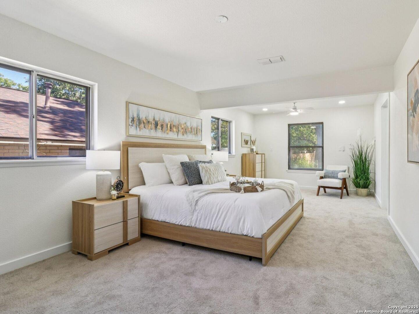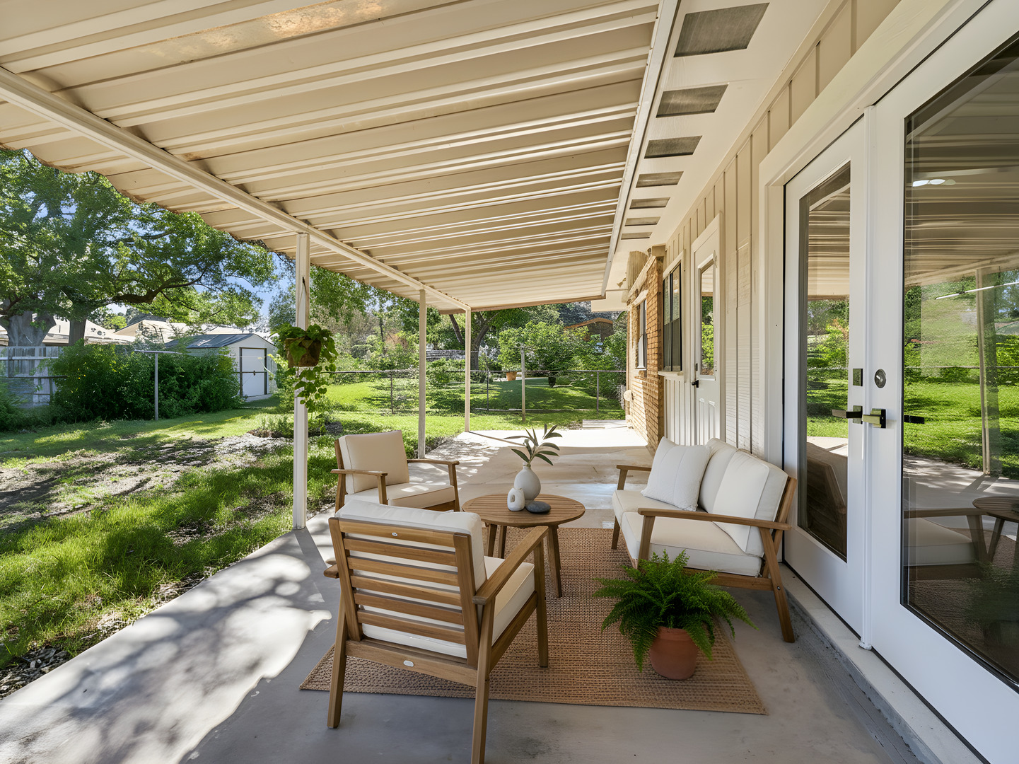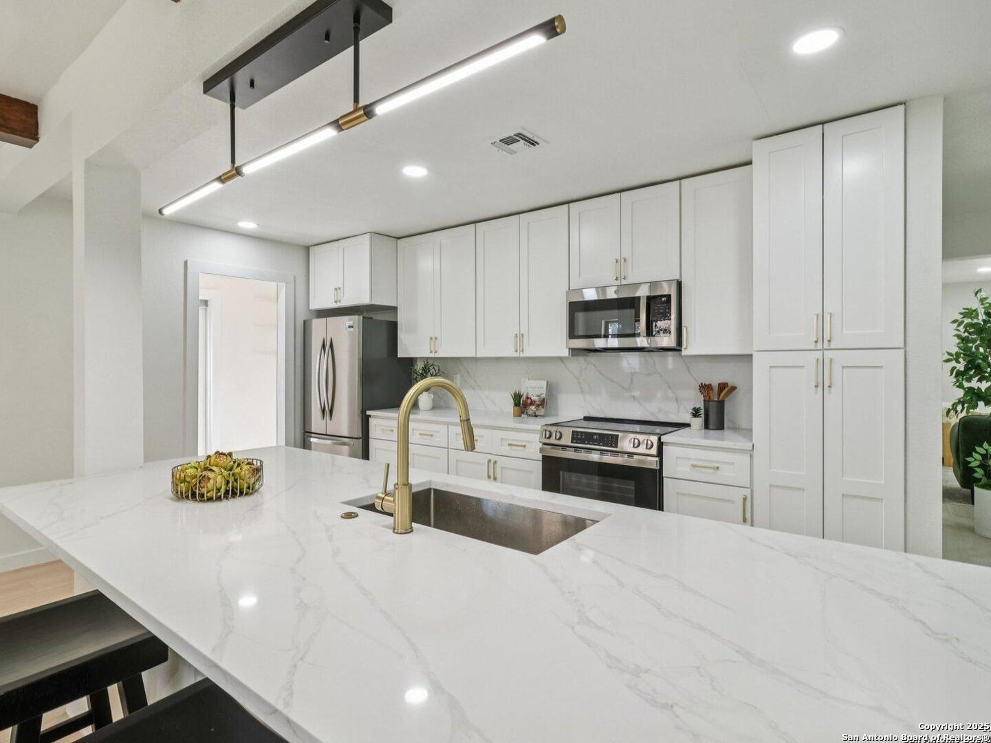 Experience mid-century charm reimagined for modern living at 3226 Colony Drive in San Antonio's desirable Colonies North neighborhood. From the street, this single-story ranch-style home retains its timeless character, but step inside and you'll find a completely modern transformation designed for today's lifestyle. Every detail has been thoughtfully updated - including all-new interior and exterior paint, luxury vinyl plank flooring, a fully reimagined kitchen, and spa-inspired bathrooms. The kitchen showcases quartz countertops, stainless steel appliances, custom cabinetry, and a spacious island perfect for entertaining. Both bathrooms feature stylish tilework, designer lighting, and premium fixtures for a polished, high-end feel. The home sits on a large, tree-shaded lot with a huge covered patio, offering plenty of outdoor space for relaxation or gatherings. Colonies North is known for its welcoming community vibe, walkable streets, and unbeatable central location - just minutes from the Medical Center, USAA, UTSA, La Cantera, and Huebner Oaks. Combining vintage charm with modern sophistication, 3226 Colony Drive is truly move-in ready and represents the best of San Antonio living in a well-established, convenient neighborhood.