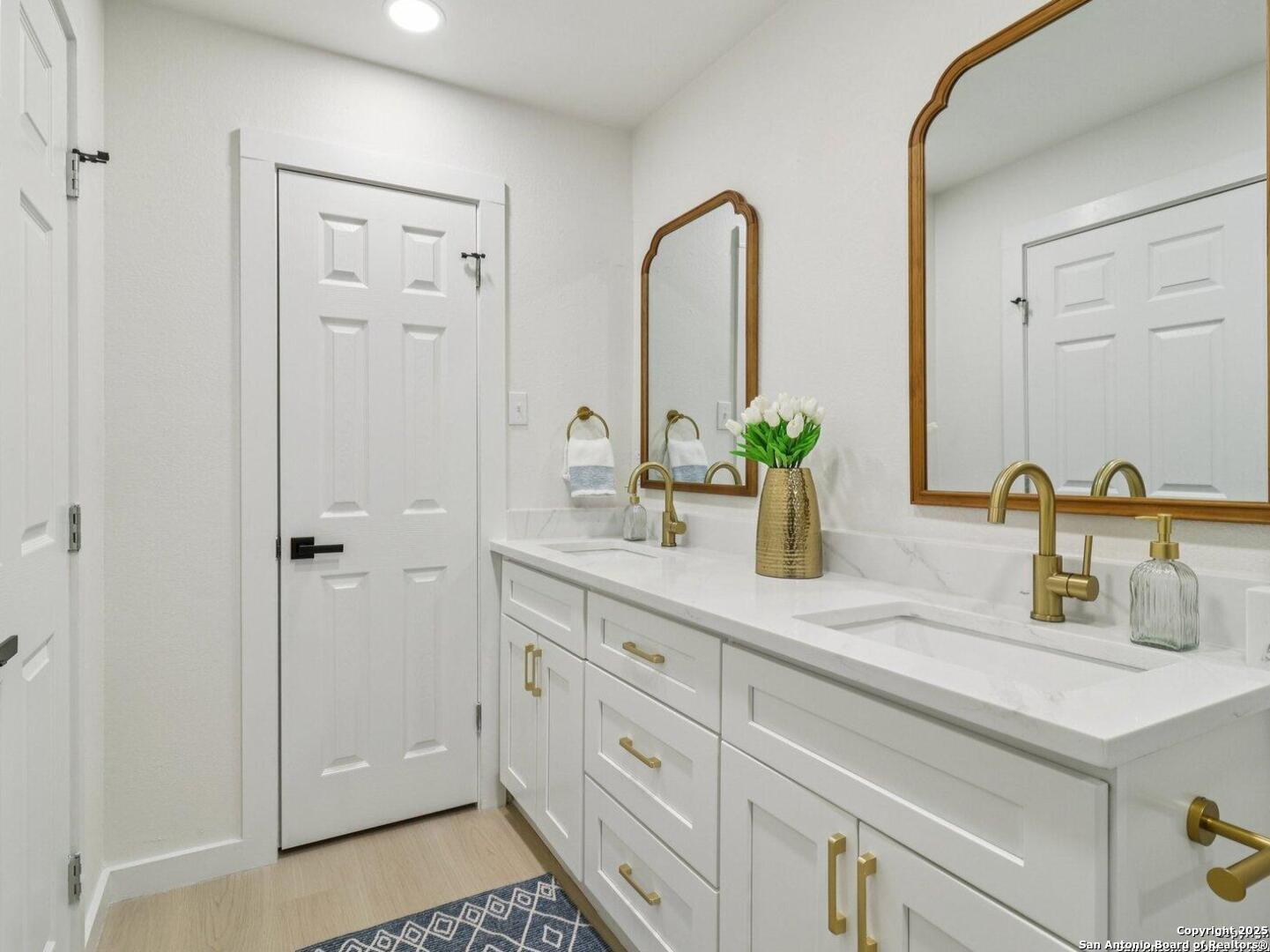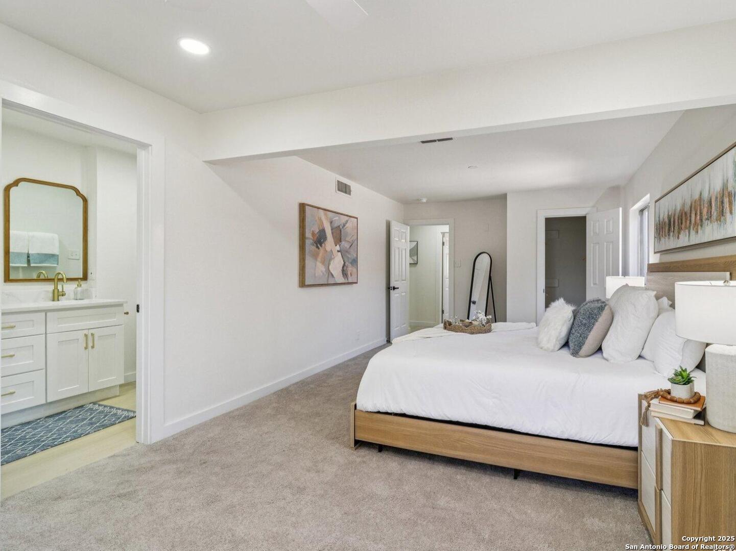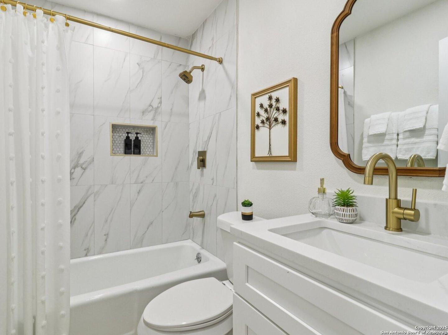 Experience mid-century charm reimagined for modern living at 3226 Colony Drive in San Antonio's desirable Colonies North neighborhood. From the street, this single-story ranch-style home retains its timeless character, but step inside and you'll find a completely modern transformation designed for today's lifestyle. Every detail has been thoughtfully updated - including all-new interior and exterior paint, luxury vinyl plank flooring, a fully reimagined kitchen, and spa-inspired bathrooms. The kitchen showcases quartz countertops, stainless steel appliances, custom cabinetry, and a spacious island perfect for entertaining. Both bathrooms feature stylish tilework, designer lighting, and premium fixtures for a polished, high-end feel. The home sits on a large, tree-shaded lot with a huge covered patio, offering plenty of outdoor space for relaxation or gatherings. Colonies North is known for its welcoming community vibe, walkable streets, and unbeatable central location - just minutes from the Medical Center, USAA, UTSA, La Cantera, and Huebner Oaks. Combining vintage charm with modern sophistication, 3226 Colony Drive is truly move-in ready and represents the best of San Antonio living in a well-established, convenient neighborhood.