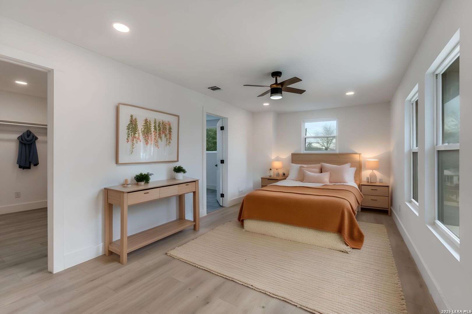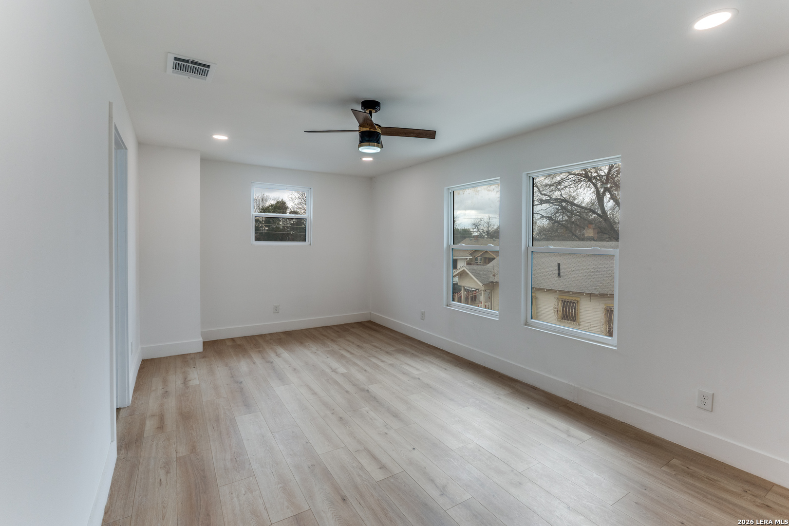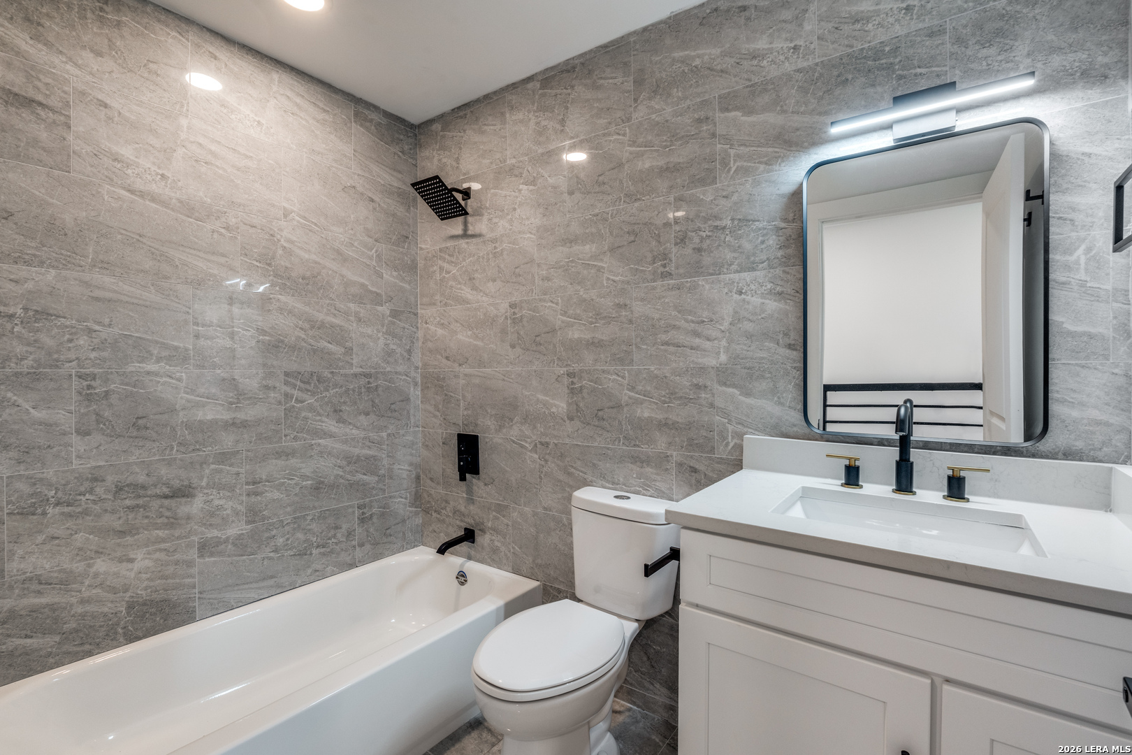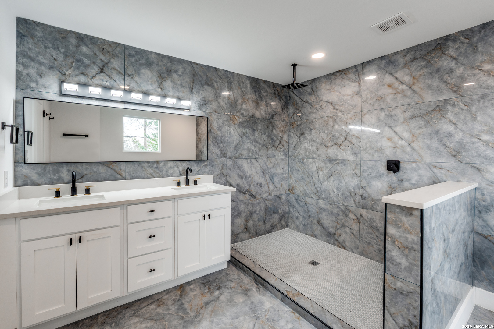 This completely renovated home offers a striking blend of modern design and functional living, showcasing bold curb appeal and high-end finishes throughout. Inside, the open-concept layout is filled with natural light and anchored by a stunning contemporary kitchen featuring quartz countertops, custom white cabinetry, stainless steel appliances, oversized island, and designer lighting, ideal for both everyday living and entertaining. The bathrooms are thoughtfully designed with spa-like finishes, including large-format tile, sleek fixtures, and a spacious walk-in shower that delivers a luxury feel. Clean lines, updated flooring, modern color palettes, and attention to detail throughout make this home truly move-in ready. Located in an established San Antonio neighborhood with convenient access to downtown, major highways, dining, and entertainment, this property is an exceptional opportunity for buyers seeking modern style, quality craftsmanship, and turnkey living.