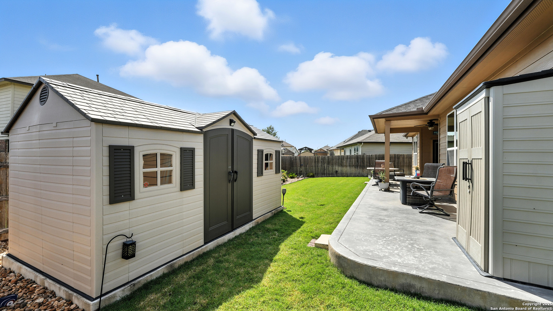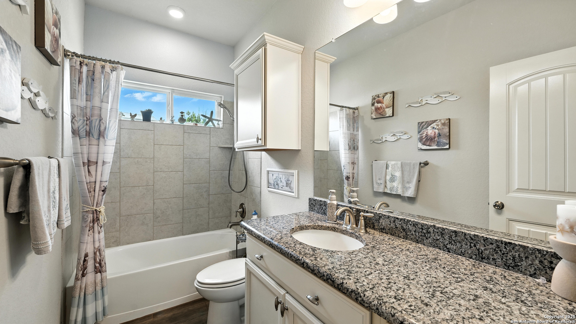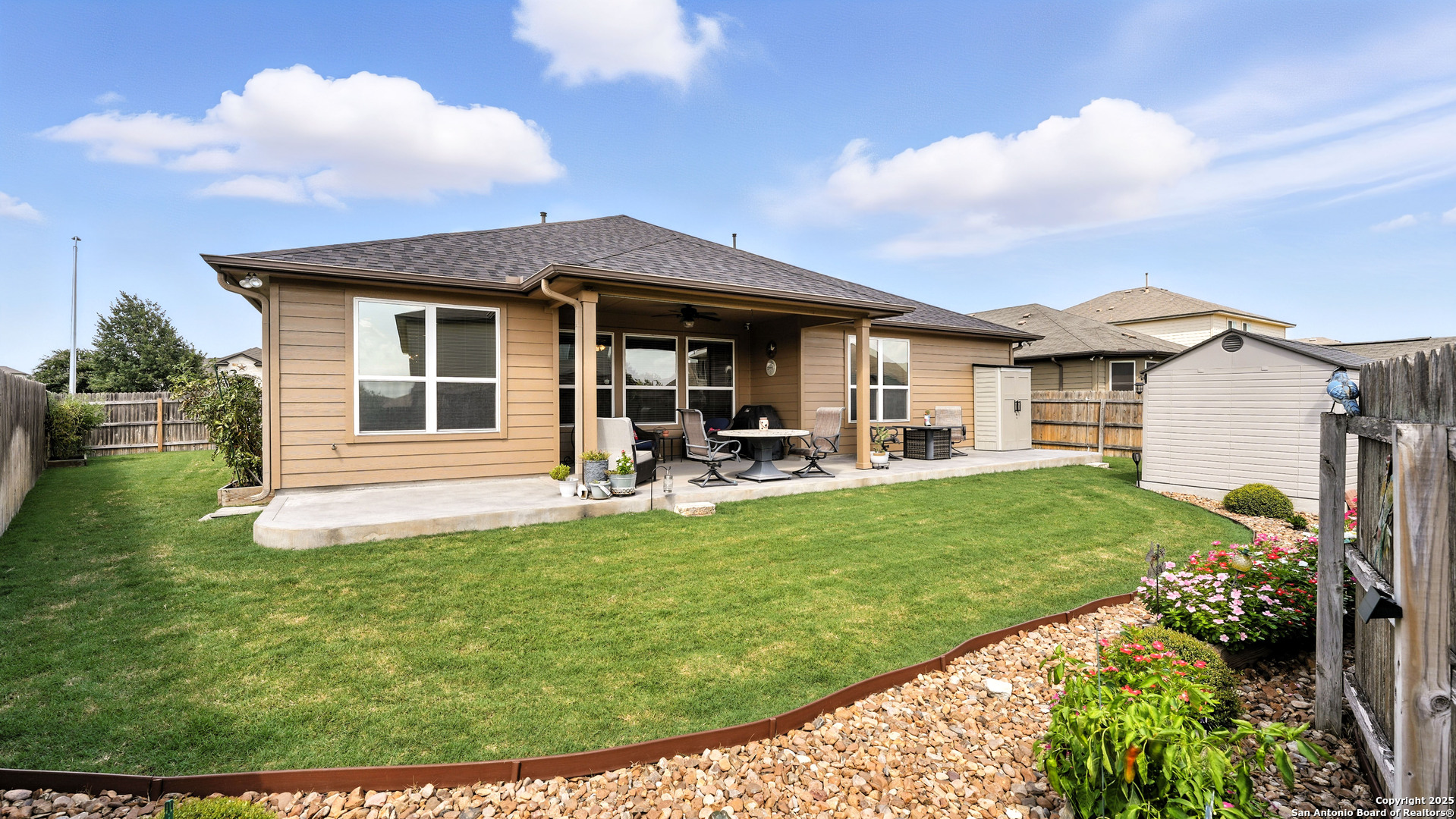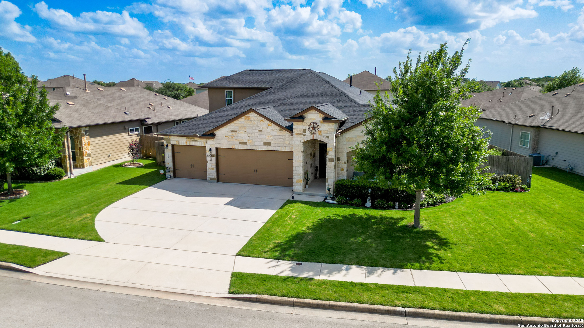 Welcome to this stunning and well-maintained 1.5-story home located in the highly sought-after Oak Creek Estates subdivision, just minutes from historic Gruene. Featuring a brand-new roof (installed approximately two months ago) and a recently added water heater (about one year old), this home is truly move-in ready. The layout is both spacious and functional, offering four generously sized bedrooms all on the main floor, 2.5 bathrooms, and a versatile upstairs loft perfect for a guest suite, home office, or media room. The expansive primary suite includes dual vanities and two walk-in closets, providing plenty of comfort and storage. At the heart of the home is a bright, modern kitchen with sleek subway tile, stainless steel appliances, and a smart microwave that doubles as a convection oven-ideal for both everyday meals and entertaining. The open-concept living area seamlessly connects the kitchen, dining, and living spaces, creating an inviting atmosphere throughout. Outside, you'll find a fully landscaped yard with a full irrigation system, a spacious backyard shed, and an extended patio perfect for outdoor living and entertaining. A powerful 22 KW Generac whole-home generator ensures peace of mind during outages. With quick access to I-35, you're perfectly positioned just minutes from Austin, San Antonio, and everything New Braunfels has to offer. This beautiful home combines comfort, style, and convenience-don't miss the opportunity to make it yours