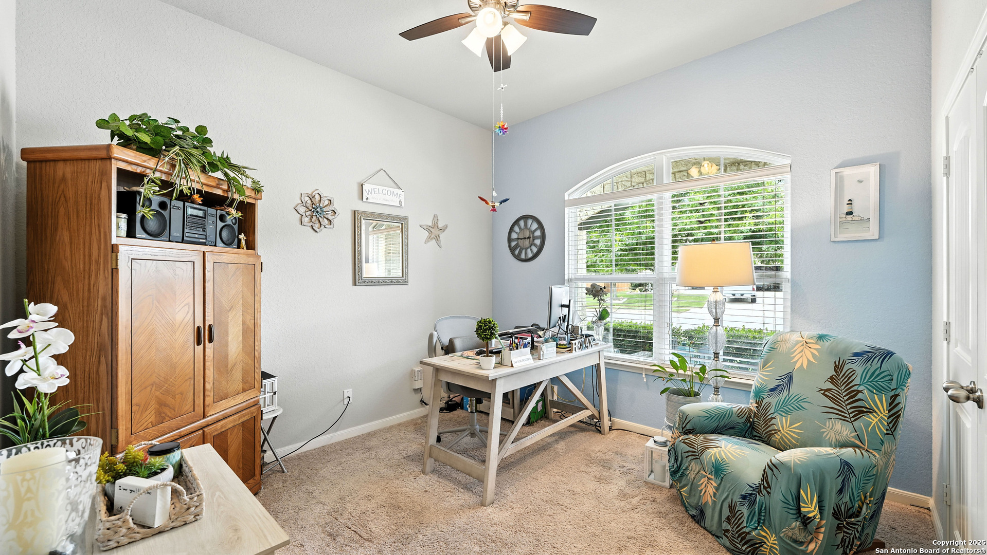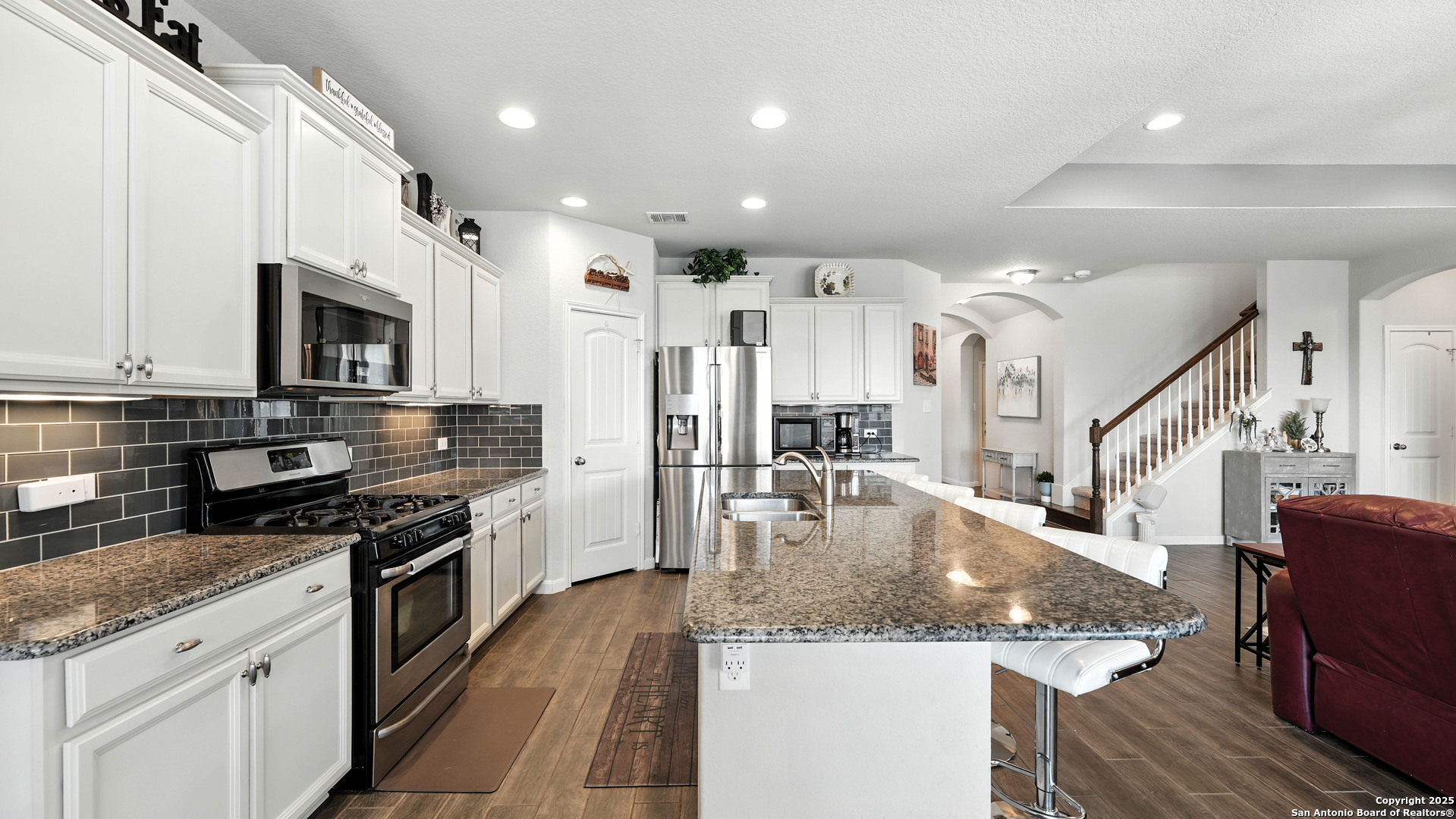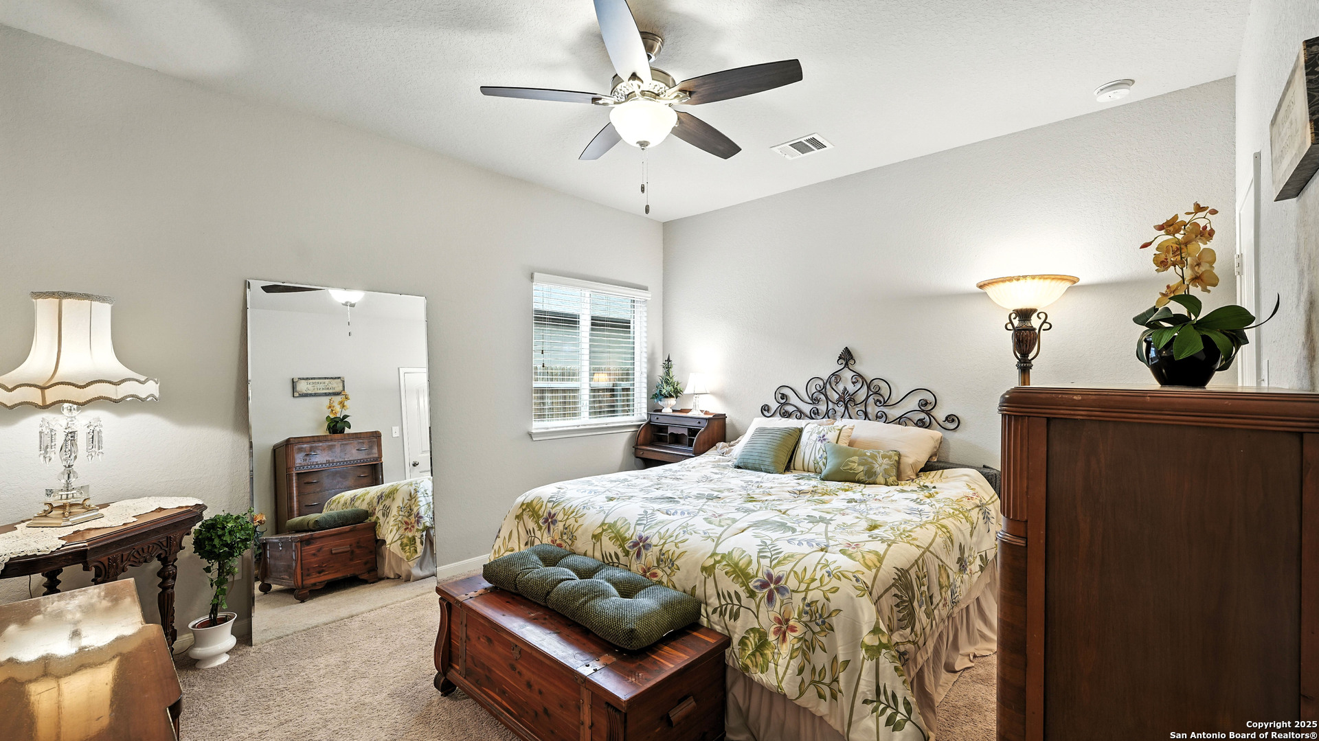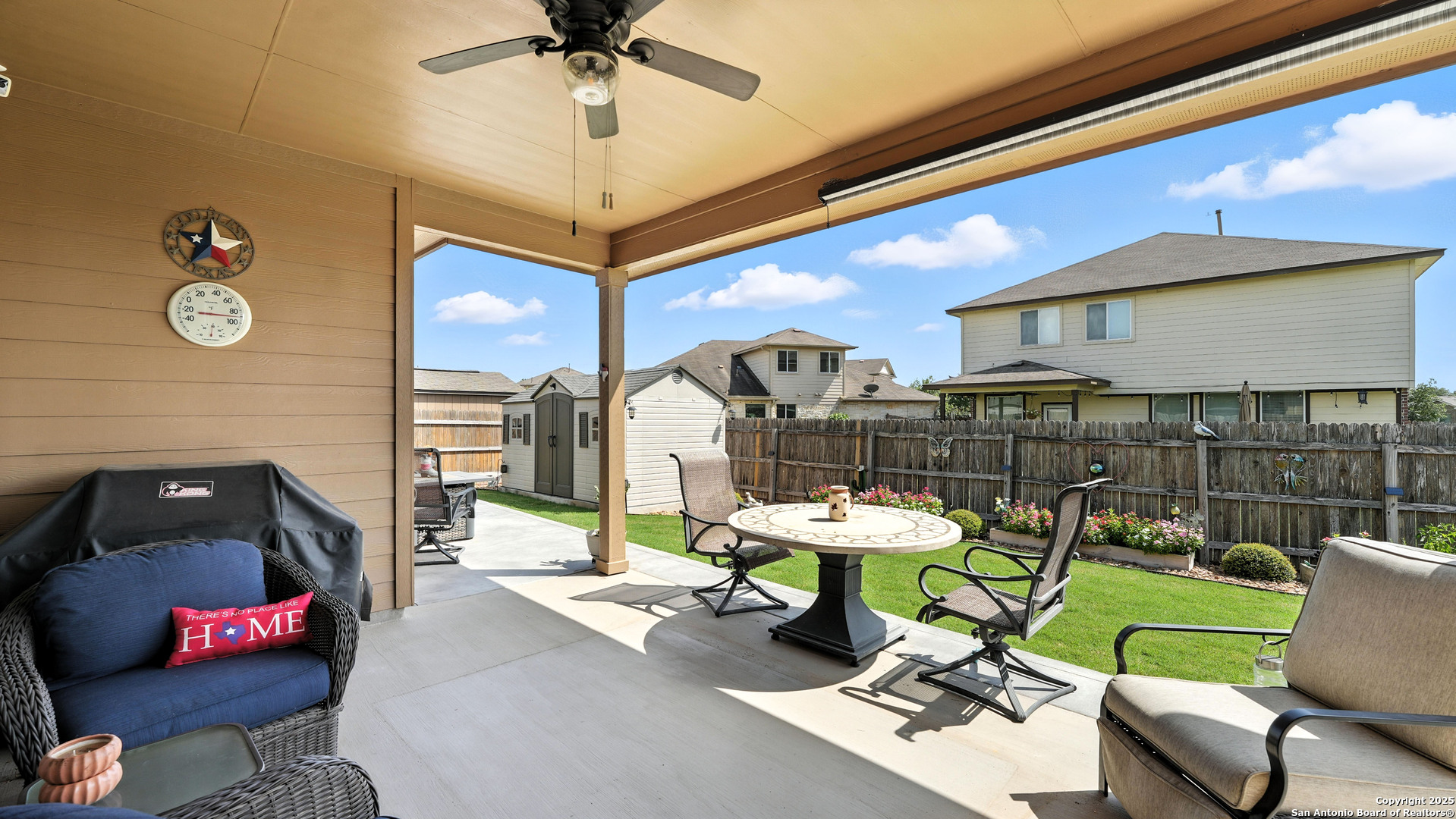 Welcome to this stunning and well-maintained 1.5-story home located in the highly sought-after Oak Creek Estates subdivision, just minutes from historic Gruene. Featuring a brand-new roof (installed approximately two months ago) and a recently added water heater (about one year old), this home is truly move-in ready. The layout is both spacious and functional, offering four generously sized bedrooms all on the main floor, 2.5 bathrooms, and a versatile upstairs loft perfect for a guest suite, home office, or media room. The expansive primary suite includes dual vanities and two walk-in closets, providing plenty of comfort and storage. At the heart of the home is a bright, modern kitchen with sleek subway tile, stainless steel appliances, and a smart microwave that doubles as a convection oven-ideal for both everyday meals and entertaining. The open-concept living area seamlessly connects the kitchen, dining, and living spaces, creating an inviting atmosphere throughout. Outside, you'll find a fully landscaped yard with a full irrigation system, a spacious backyard shed, and an extended patio perfect for outdoor living and entertaining. A powerful 22 KW Generac whole-home generator ensures peace of mind during outages. With quick access to I-35, you're perfectly positioned just minutes from Austin, San Antonio, and everything New Braunfels has to offer. This beautiful home combines comfort, style, and convenience-don't miss the opportunity to make it yours