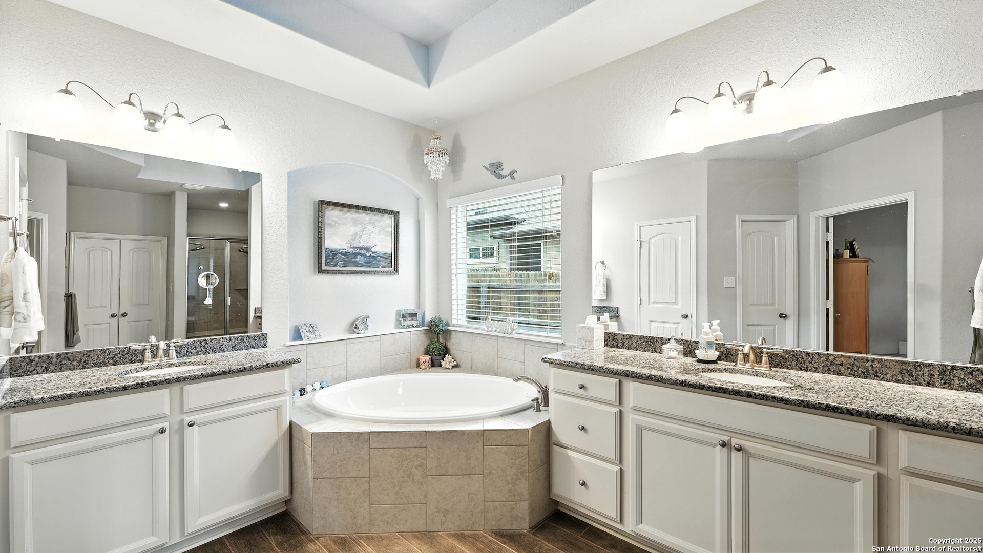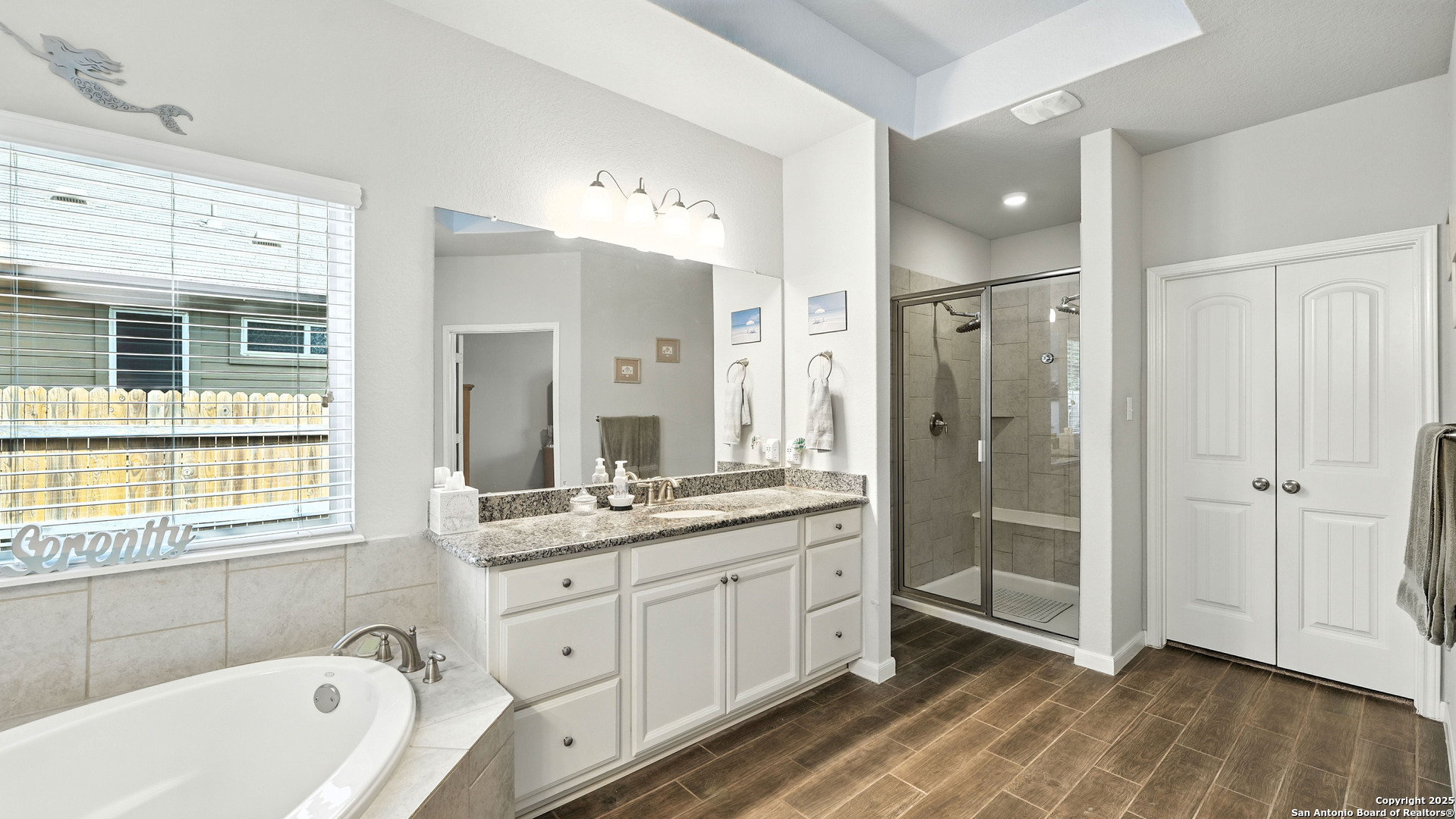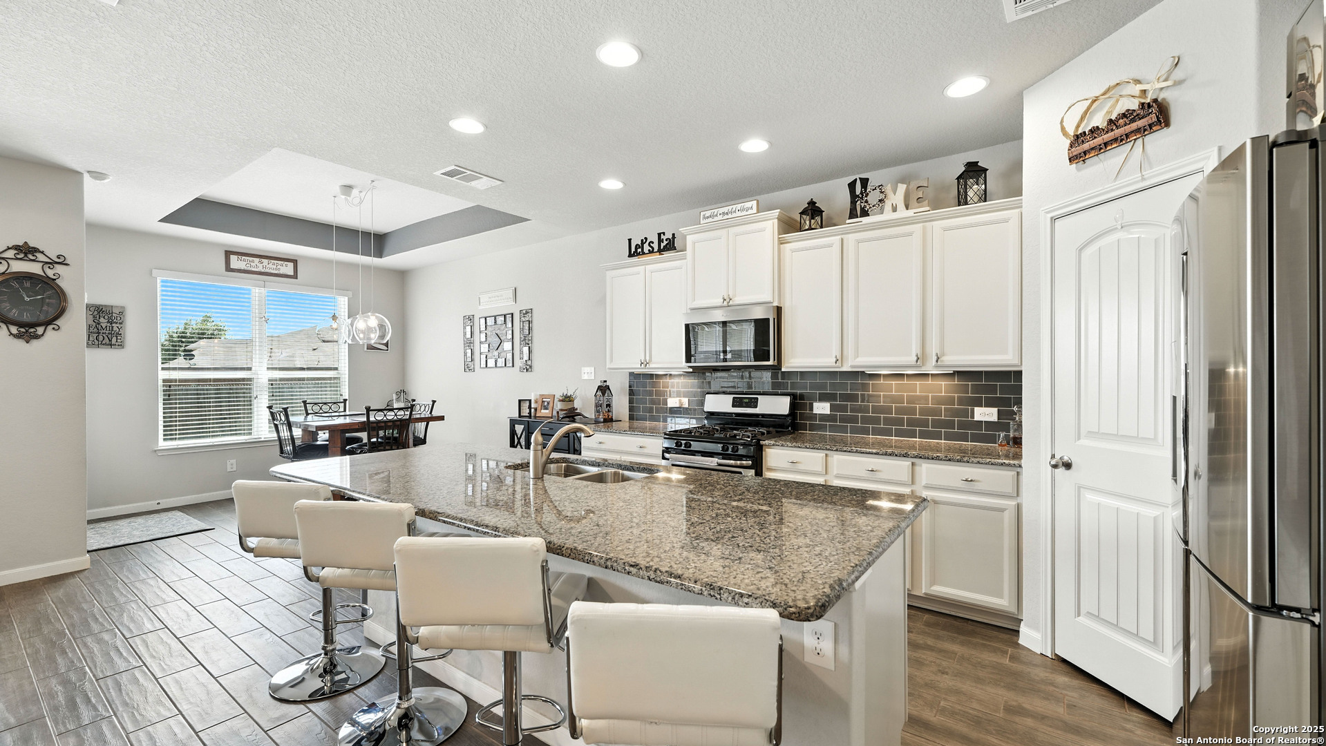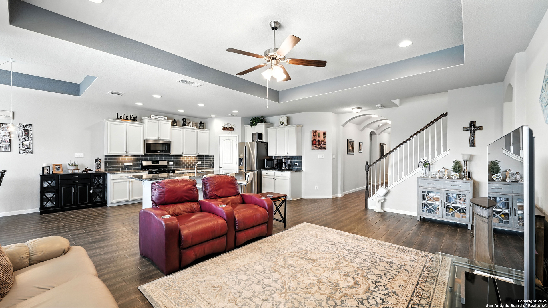 Welcome to this stunning and well-maintained 1.5-story home located in the highly sought-after Oak Creek Estates subdivision, just minutes from historic Gruene. Featuring a brand-new roof (installed approximately two months ago) and a recently added water heater (about one year old), this home is truly move-in ready. The layout is both spacious and functional, offering four generously sized bedrooms all on the main floor, 2.5 bathrooms, and a versatile upstairs loft perfect for a guest suite, home office, or media room. The expansive primary suite includes dual vanities and two walk-in closets, providing plenty of comfort and storage. At the heart of the home is a bright, modern kitchen with sleek subway tile, stainless steel appliances, and a smart microwave that doubles as a convection oven-ideal for both everyday meals and entertaining. The open-concept living area seamlessly connects the kitchen, dining, and living spaces, creating an inviting atmosphere throughout. Outside, you'll find a fully landscaped yard with a full irrigation system, a spacious backyard shed, and an extended patio perfect for outdoor living and entertaining. A powerful 22 KW Generac whole-home generator ensures peace of mind during outages. With quick access to I-35, you're perfectly positioned just minutes from Austin, San Antonio, and everything New Braunfels has to offer. This beautiful home combines comfort, style, and convenience-don't miss the opportunity to make it yours