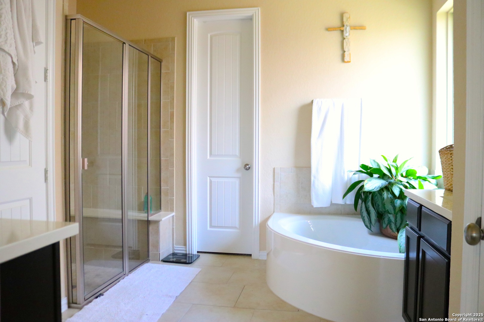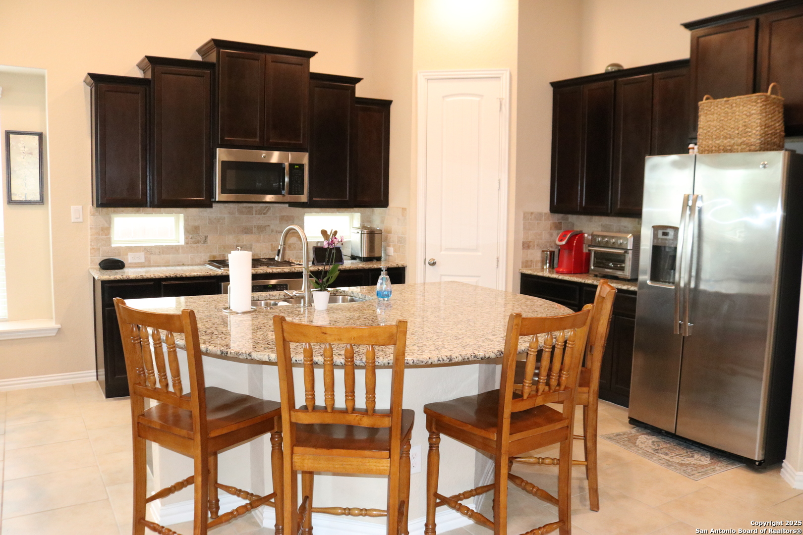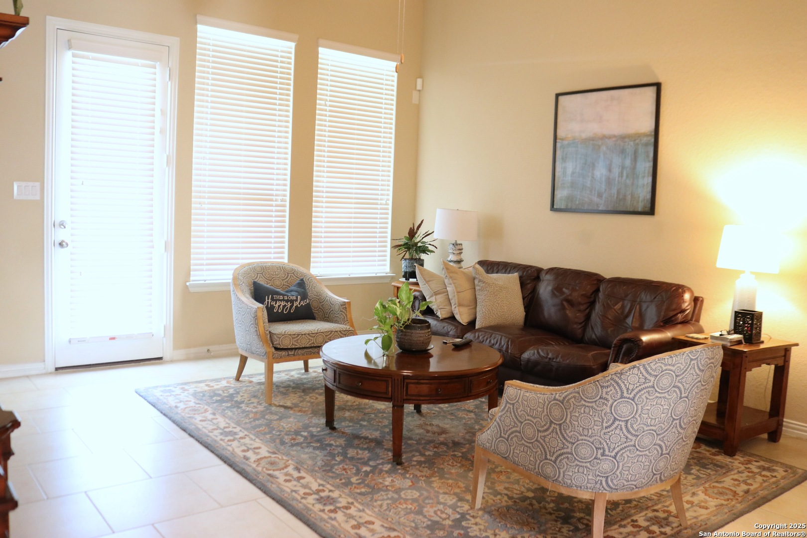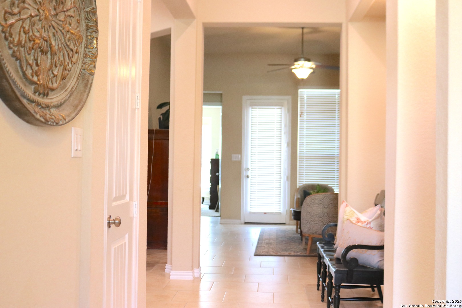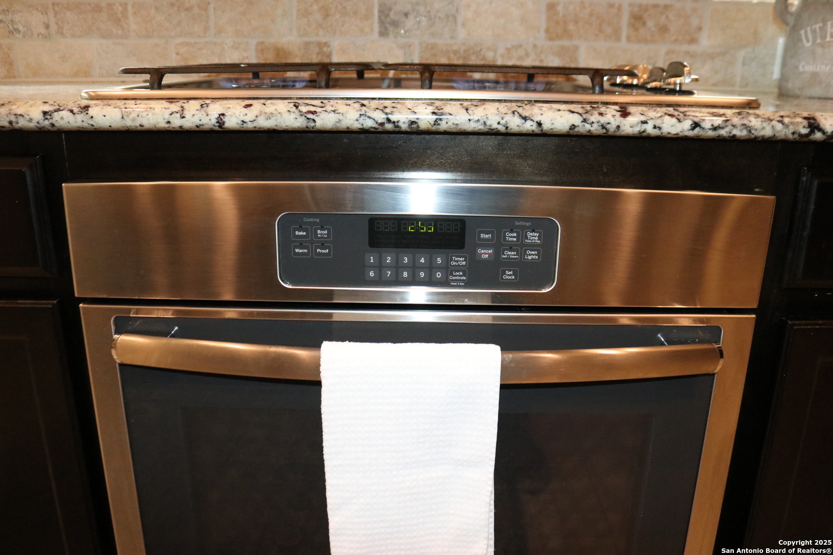 This home has an Assumable V.A. Loan at 2.75. You DO NOT have to be a veteran to assume a VA loan. From the moment you drive through the gated entrance, you'll feel the difference. Lined with beautiful, nearly-new homes and lush, manicured landscaping, this Hill Country community exudes charm and warmth. Drive slowly-not just to take it all in-but because children are often out riding bikes or playing catch in the street, safely within the gates. This particular home sits on a level, well maintained lot. In the Spring and Summer the lawn is vibrant green, and the Crepe Myrtles are in full, colorful bloom-thanks to the full automatic sprinkler system that keeps everything thriving with ease. Step through the impressive 8-foot front door and you'll be greeted by soaring tray ceilings in the entryway. To your left, a formal dining room awaits-currently used as an office, but note there is ample space for a large dining table in the oversized kitchen. And speaking of the kitchen-you'll find it's a chef's dream. Outfitted with stainless steel appliances, it includes a high-tech programmable, self-cleaning oven and a sleek gas cooktop. Granite countertops and a stylish brick backsplash complete the look. The open-concept floor plan and 11-foot ceilings throughout the home create an airy, expansive feel that's perfect for entertaining or relaxing. As part of the prestigious Brookstone Collection, this home is loaded with upgrades. The primary suite is a true retreat, featuring a tray ceiling, a bay of windows with a built-in seat, and picturesque Hill Country views-you'll even catch the sunrise from here. Step into the luxurious en suite bathroom and prepare to be wowed: separate his-and-hers vanities, a garden tub, and the shower of your dreams. You'll want to try it out immediately-but save that for after closing! And thanks to the tankless Rinnai water heater, you'll never run out of hot water-ever. There's so much more to see, but why read about it when you can experience it for yourself? Come take a tour. This home truly has it all. Please look for the virtual tour above. You won't want to miss that!