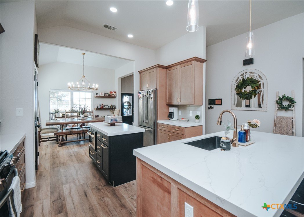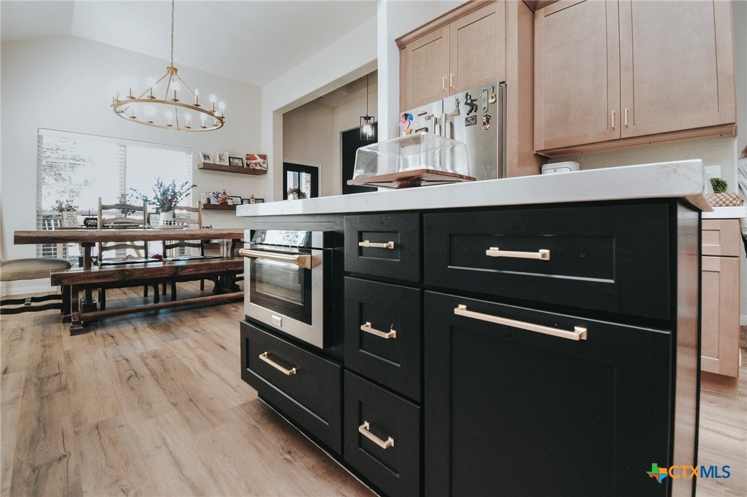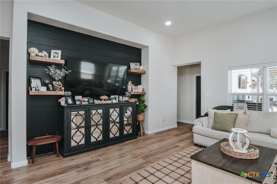 This well-maintained 4-bedroom, 2-bath home with a 2-car garage is located in the desirable Terra Vista community and was fully updated approximately two years ago. The home features custom cabinetry, quartz countertops throughout, luxury vinyl flooring, and an open-concept layout that works well for everyday living. The kitchen offers a gas stove, built-in microwave drawer, and custom vent hood, making it both functional and inviting. Both bathrooms include tile showers with updated finishes. The spacious floor plan provides comfortable living areas, good-sized bedrooms, and plenty of natural light. An extended back patio adds extra outdoor space for relaxing or entertaining. This move-in-ready home combines thoughtful updates with a practical layout in a great location.