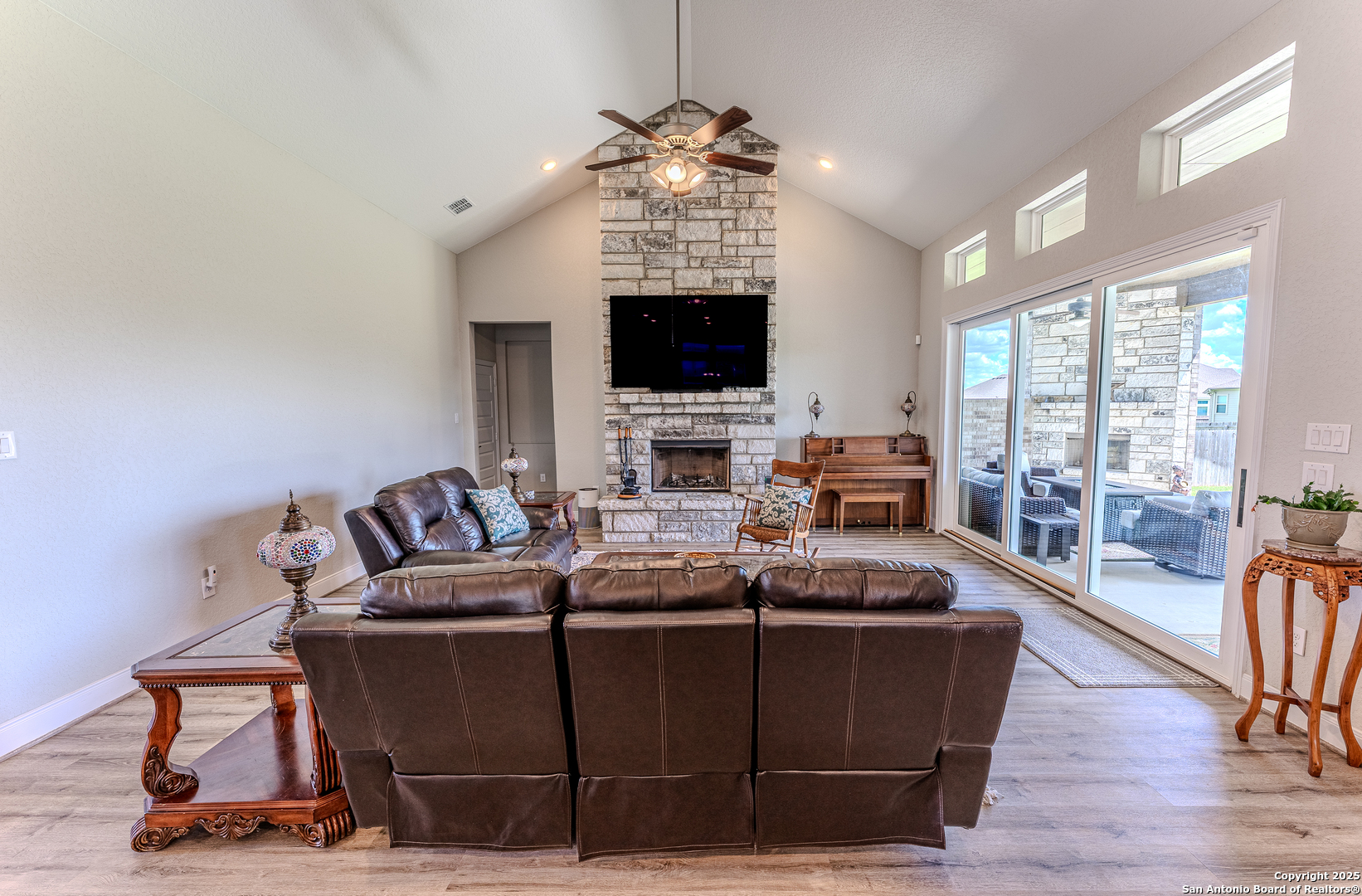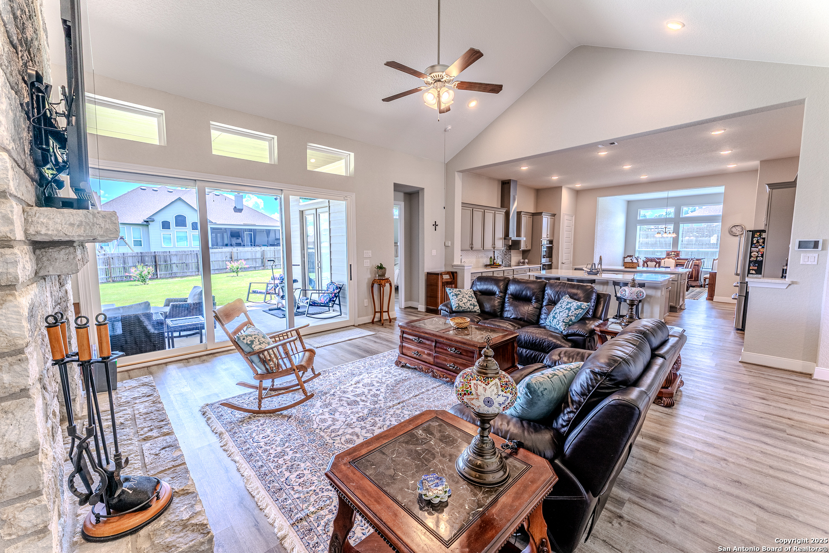 Everything's Bigger in Texas-Especially This One-Story Stunner in Marion. The ceilings soar, the spaces stretch, and this home serves style from every angle. Nice size level lot to roam. Floor plan gives you all the volume and versatility of a two-story-without the stairs. The home features a floor-to-ceiling stone fireplace, a designated office, media room and more.