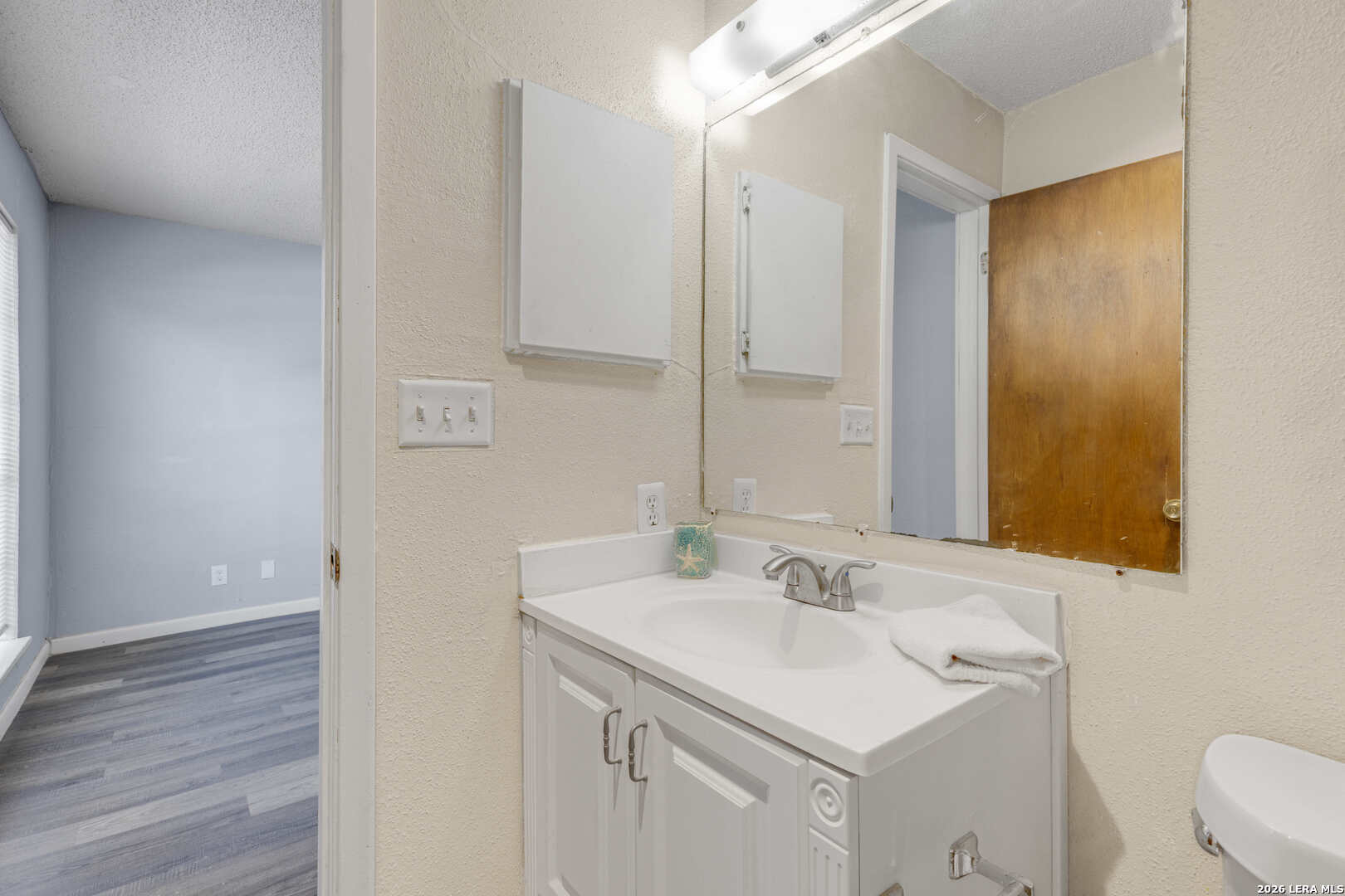 Centrally located 2 large bedrooms, 2 bathroom condo on first floor with newer luxury vinyl plank flooring, updated cabinets and counters in kitchen, stainless steel appliances, washer & dryer, and fridge included. Covered parking, access to pool. Credit score 550+, 3x income to rent. Located in NEISD school district.