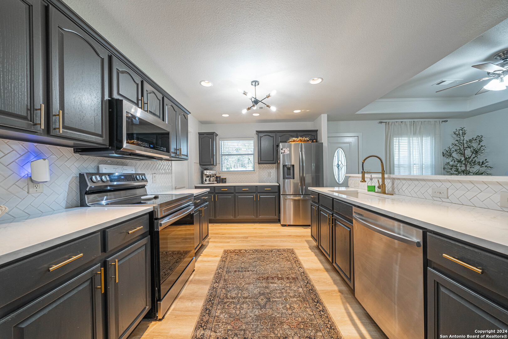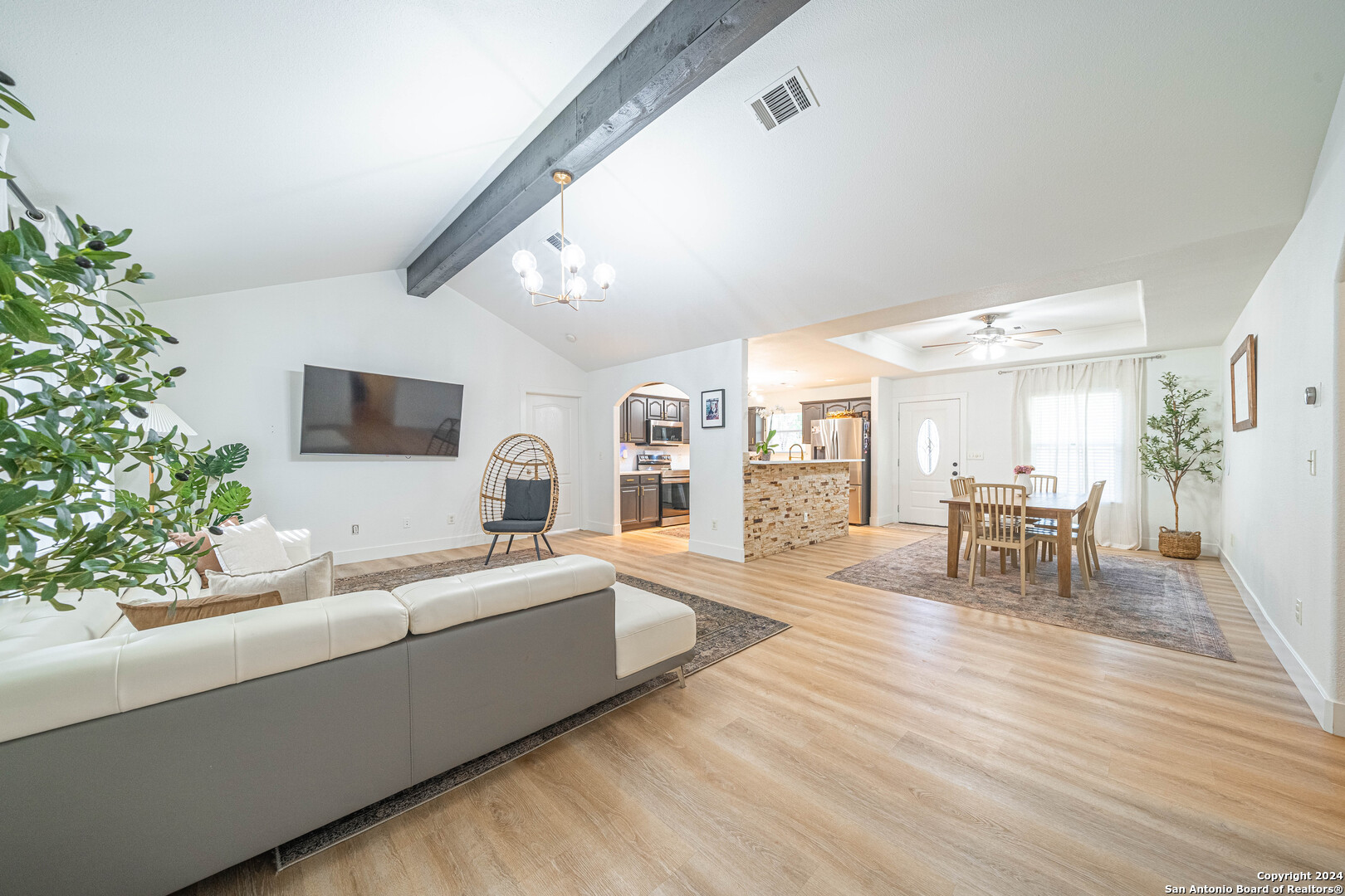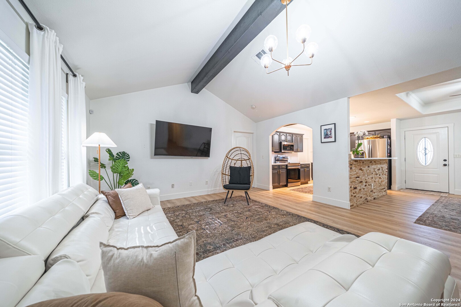 Welcome to this charming property that perfectly blends a serene country vibe with the convenience of city living. Just a few miles from bustling shopping centers and entertainment options, this home offers the best of both worlds. Enjoy the benefits of low Medina County property taxes and no city tax, situated on the far west side of San Antonio between Potranco and Culebra. This prime location provides easy access to major employment hubs and a plethora of dining choices. Nestled on one of the largest lots in the neighborhood, this 1.3-acre property boasts mature shade trees that offer both privacy and a perfect setting for outdoor events. The home has been recently renovated with meticulous attention to quality and design. Step through the front door to an open floor plan featuring vaulted ceilings that seamlessly connect the living room and dining areas, making it an ideal space for entertaining. The kitchen is a chef's dream, beautifully designed with quartz countertops, matching cabinetry, and a stylish backsplash. The spacious and bright main suite provides a full spa-like bathroom experience, ensuring ultimate relaxation. Secondary bedrooms are thoughtfully located on the opposite side of the house, each offering generous space for comfort and practicality. The backyard is designed for family fun and memorable evenings around the bonfire with friends. A concrete patio and deck provide ample space for outdoor cooking and gatherings. Both the interior and exterior of the home have been freshly repainted, enhancing its beauty and durability. The owner invested $100k in remodeling this home with the intention of staying long-term, but recent life changes now present buyers in San Antonio with an amazing opportunity. Don't miss your chance to own this exceptional property-schedule your visit today!