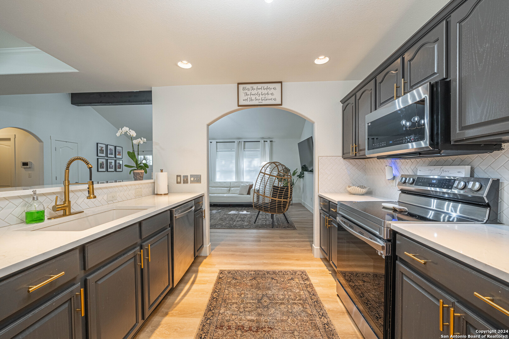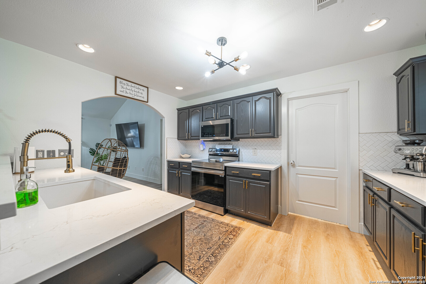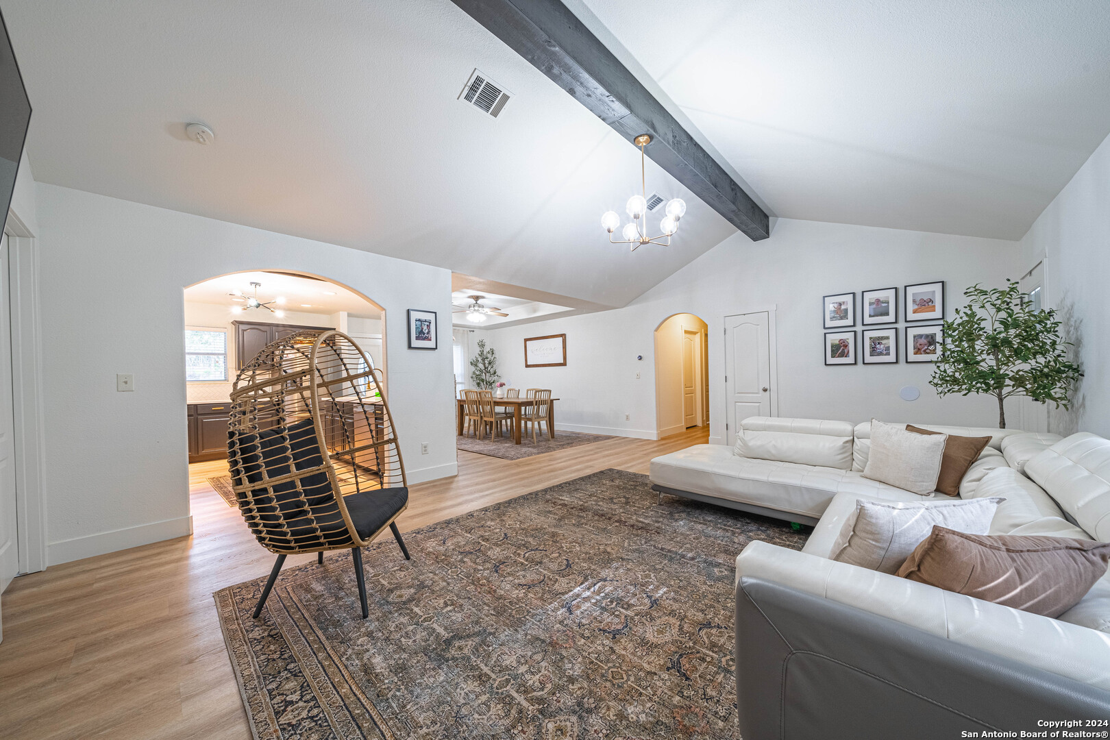 Welcome to this charming property that perfectly blends a serene country vibe with the convenience of city living. Just a few miles from bustling shopping centers and entertainment options, this home offers the best of both worlds. Enjoy the benefits of low Medina County property taxes and no city tax, situated on the far west side of San Antonio between Potranco and Culebra. This prime location provides easy access to major employment hubs and a plethora of dining choices. Nestled on one of the largest lots in the neighborhood, this 1.3-acre property boasts mature shade trees that offer both privacy and a perfect setting for outdoor events. The home has been recently renovated with meticulous attention to quality and design. Step through the front door to an open floor plan featuring vaulted ceilings that seamlessly connect the living room and dining areas, making it an ideal space for entertaining. The kitchen is a chef's dream, beautifully designed with quartz countertops, matching cabinetry, and a stylish backsplash. The spacious and bright main suite provides a full spa-like bathroom experience, ensuring ultimate relaxation. Secondary bedrooms are thoughtfully located on the opposite side of the house, each offering generous space for comfort and practicality. The backyard is designed for family fun and memorable evenings around the bonfire with friends. A concrete patio and deck provide ample space for outdoor cooking and gatherings. Both the interior and exterior of the home have been freshly repainted, enhancing its beauty and durability. The owner invested $100k in remodeling this home with the intention of staying long-term, but recent life changes now present buyers in San Antonio with an amazing opportunity. Don't miss your chance to own this exceptional property-schedule your visit today!