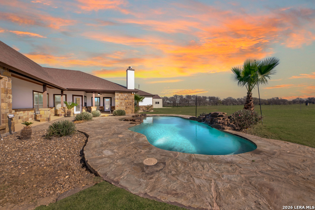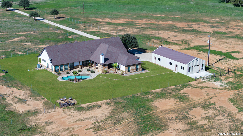 Welcome to Wild Creek Ranch-where 43 acres of pristine Texas landscape meets refined luxury and top-tier La Vernia school district. Tucked away in the serene countryside of La Vernia, this one-of-a-kind property offers the perfect blend of rugged, ranch-style beauty and high-end living. Featuring significant, highly desirable frontage on FM 539, this estate offers the rare balance of total privacy and easy accessibility. Whether you are looking for your own private sanctuary or the ultimate retreat to share with family, this property is designed to deliver. The Home: Step into a bright, beautifully appointed 3,183 sq. ft. residence. With 4 spacious bedrooms, a dedicated office perfect for working from home, and an open floor plan, the house is designed for effortless living. The entire home is fully spray-foam insulated, ensuring superior energy efficiency and year-round comfort regardless of the Texas weather. Every window serves as a frame for the stunning views of your private domain, creating an inviting space for family dinners or quiet mornings. The Lifestyle: Wild Creek Ranch provides the perfect, tranquil setting for keeping a small herd of Longhorns-their presence serves as stunning "living art. For convenience and ease of care, the property is equipped with a well-appointed cattle pen, making it simple to manage your animals while enjoying the peaceful Texas lifestyle. The Outdoor Oasis: The backyard is a true escape, featuring a sparkling, resort-style pool that serves as the centerpiece of your outdoor living area. As the sun sets, retreat to your custom fire pit to enjoy the cool, quiet Texas evenings under the vast, clear night skies. The Workshop: For the creator or hobbyist, the property boasts a substantial, heavy-duty workshop. It is the perfect home base for equipment storage, vehicle maintenance, or large-scale projects, with plenty of room to grow. Property Highlights: Expansive Acreage: 43 acres of pristine, private, and usable land. Highly Coveted Location: Located in the prestigious La Vernia ISD. The Residence: 3,183 sq. ft. of comfortable, energy-efficient living (4 bedrooms + dedicated office). High Efficiency: Fully spray-foam insulated for year-round climate control. Ranch-Ready Infrastructure: Well-appointed cattle pen included. Outdoor Living: Resort-style pool and custom fire pit. Nature's Bounty: Massive mature oaks, indigenous flora, the namesake dry creek, and a seasonal tank. Versatile Workshop: Professional-grade space for all your projects.
