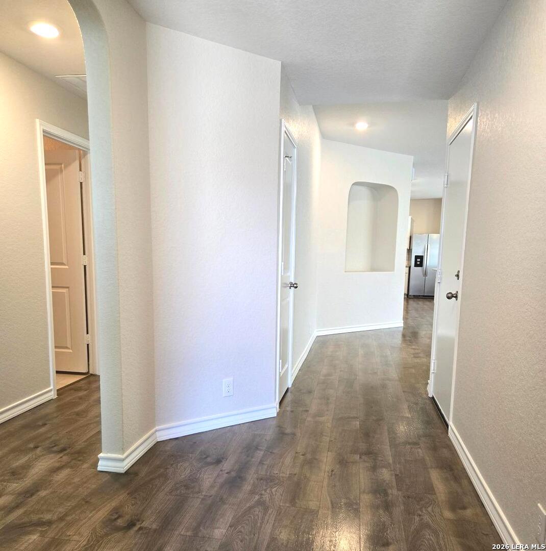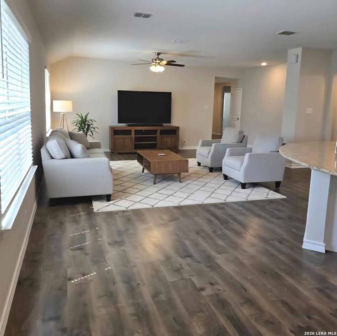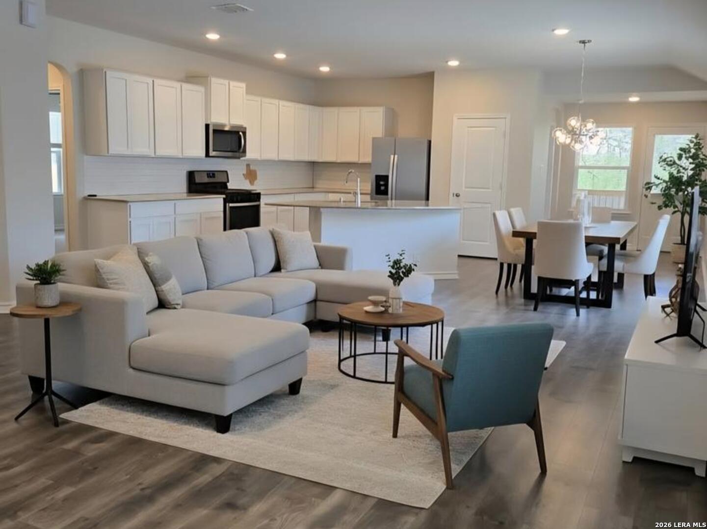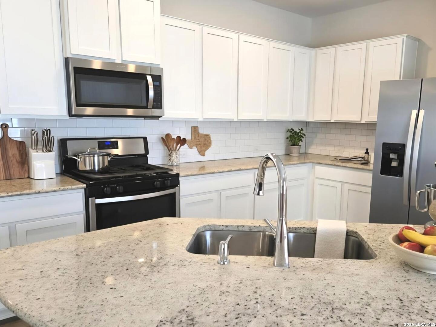 Welcome home to this gorgeous Knight floor plan. This single story home has four bedrooms, two bathrooms and a two car garage. You will quickly fall in love with the open floor plan with 9' ceilings. The home features a gas cooking range, subway tile back splash, stainless steel appliances, washer, dryer and fridge will convey as well. The home is also pre-plumbed for a water softener. The yard has a working irrigation system. The living and dining combination allows for great entertainment and functionality. The interior walls have recently been repainted. The commode in the secondary bathroom has been replaced. The back yard is large enough for entertaining, relaxing or anything that you may desire. There is a greenbelt behind which allows for privacy in your backyard. Additional features include two neighborhood swimming pools, basketball court, walking trails, playgrounds, club house and much more. HEB is located just two miles from the home. There are numerous eateries in the area. You will fall in love with Redbird Ranch and this highly desirable community. Don't wait too long.