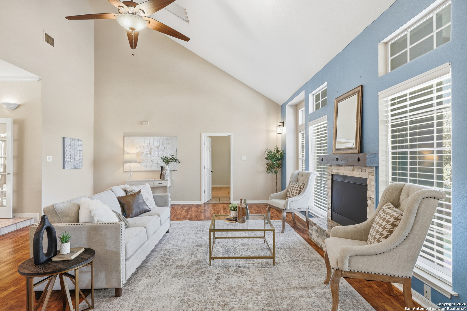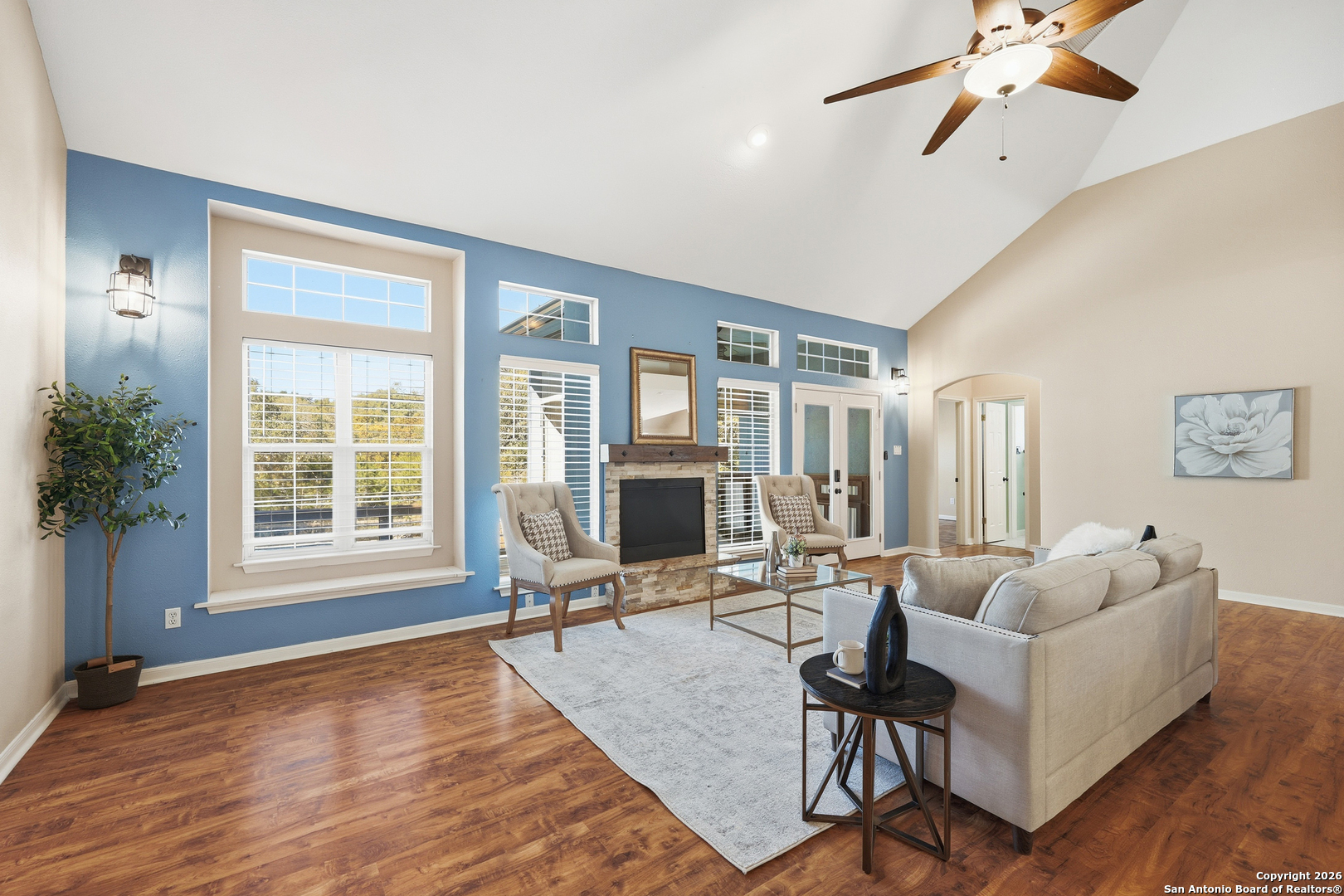 Set on over half an acre and backing to no rear neighbors, this home offers a rare sense of space and privacy within a well-established neighborhood. Thoughtfully designed for both everyday living and entertaining, the open living area features soaring ceilings and a statement fireplace that creates a warm, inviting focal point. The kitchen is both stylish and functional, with upgraded cabinetry and a new double oven. It is well-suited for everyday living and hosting alike, while a dedicated dining area offers an inviting setting for gatherings. A private study with custom built-ins works beautifully as a home office or can easily serve as a fourth bedroom. The primary suite is generously sized and thoughtfully designed, offering ample storage and a calm retreat at the end of the day. The home has been carefully maintained, with recent improvements including a new roof and six-inch gutter system (2024), a high-end water softener, energy-efficient water heater, updated shower stall and a newly painted exterior. Recently completed septic and home inspections add additional peace of mind to the buyer's experience. Outdoors, the backyard feels like a private oasis, featuring a pool, fire pit, vegetable garden and expansive space for relaxing or entertaining. RV parking and the generous lot size further enhance the home's versatility and appeal. This home offers a rare combination of space and community living within a highly regarded homeowners association. Residents enjoy access to over 30 acres of beautifully maintained common areas along with free seasonal concerts and community events that create a welcoming, connected feel. With an exceptionally low HOA of under $400 per year, the community is frequently recognized for its engagement. This is a distinctive home that balances lifestyle, comfort and long-term value.