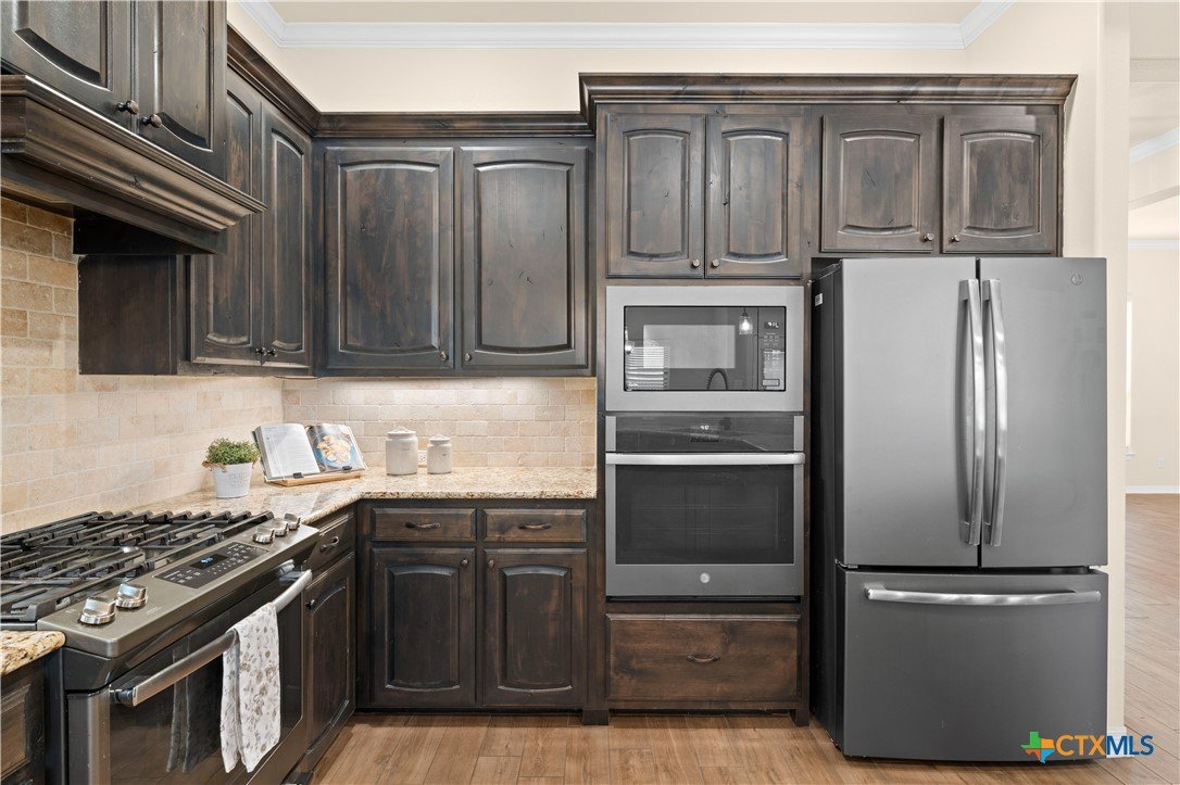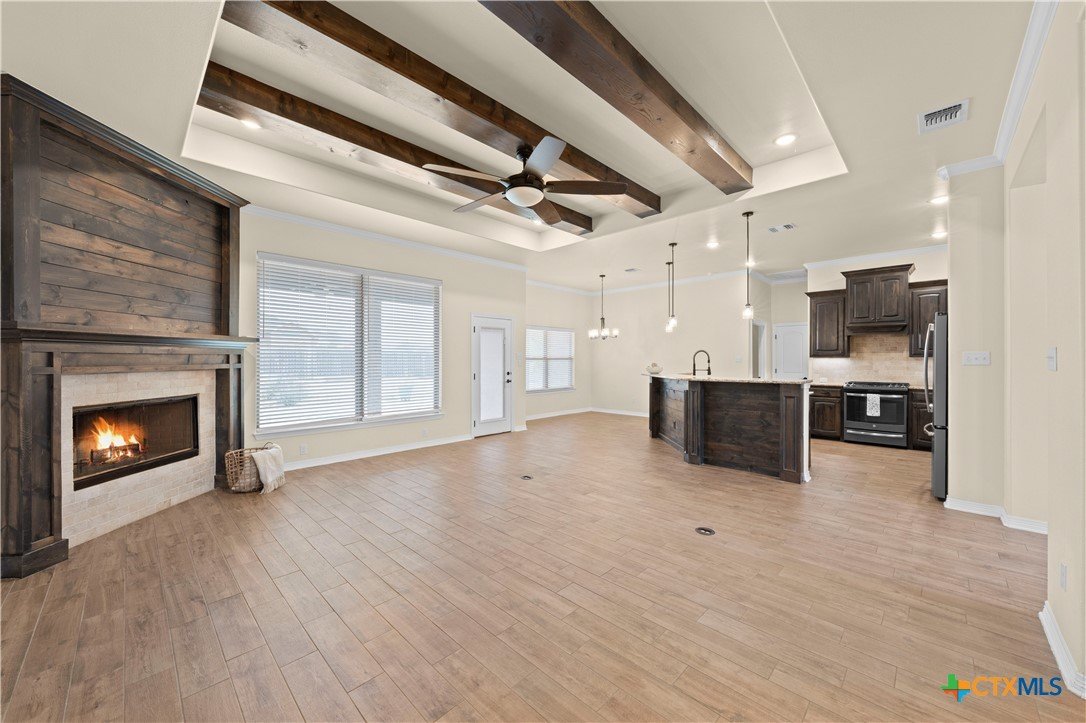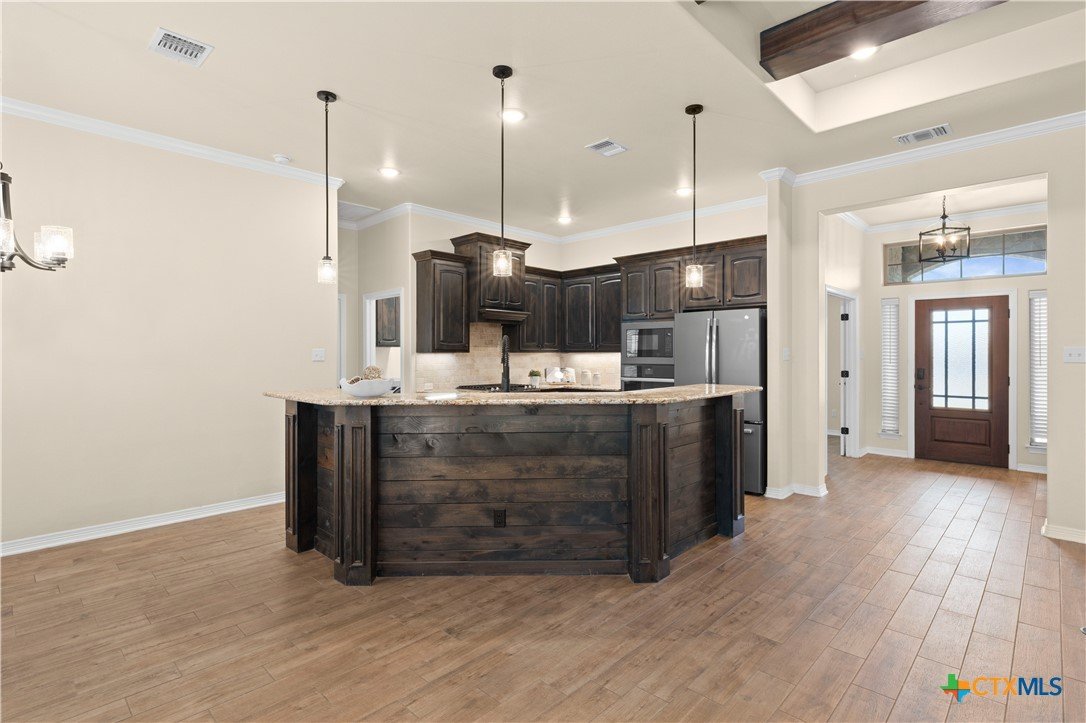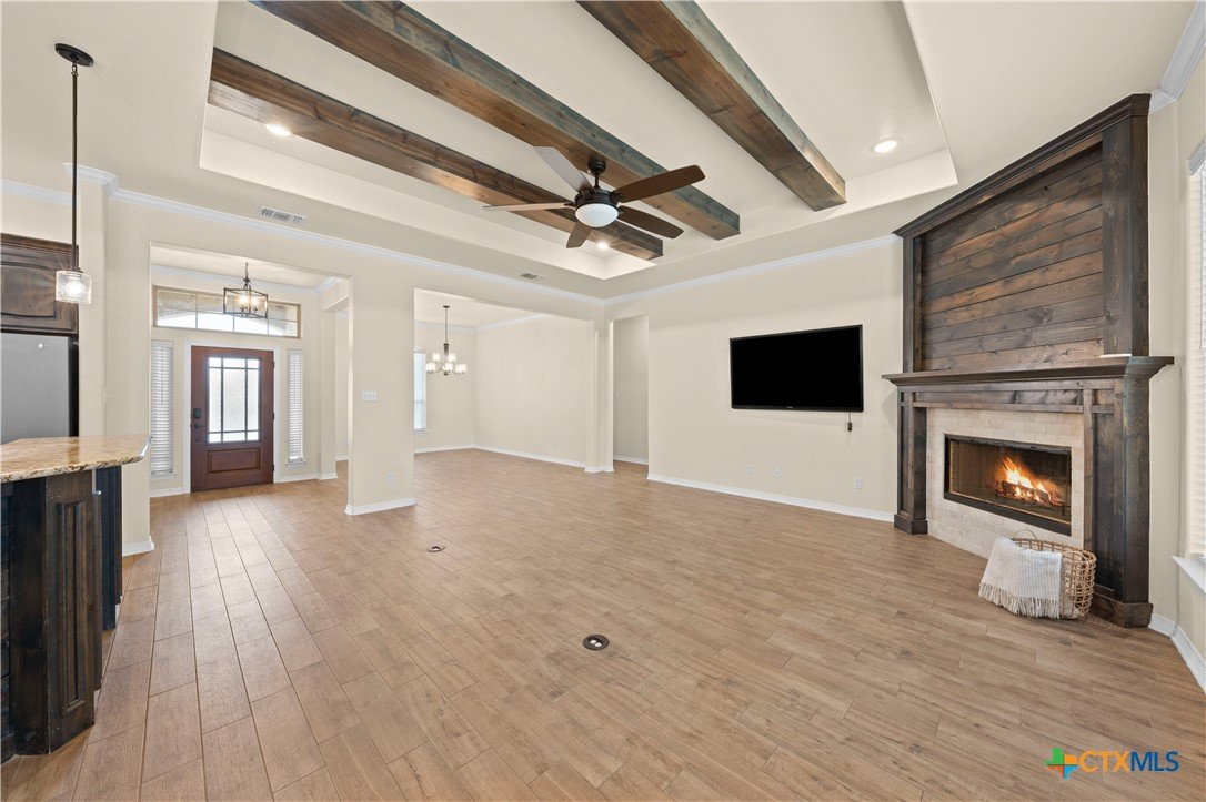 Welcome to this exceptional move-in ready Carothers home, perfectly situated in a highly desired neighborhood with no HOA and low Tax rate— offering luxury, privacy, and over half an acre of beautifully enhanced living space. From the moment you enter, you’re greeted by soaring ceilings accented with striking wood beams and a stunning custom fireplace that anchors the spacious living room. Designed for both elegance and functionality, the open-concept layout flows seamlessly into a formal dining space and a true chef’s kitchen featuring a gas stove, expansive prep areas, and premium finishes — ideal for entertaining or everyday luxury living. The thoughtfully designed split floorplan provides privacy and comfort. The extra-large primary suite is a true retreat, complete with French doors leading into a spa-like ensuite bath and an oversized walk-in closet. Two additional bedrooms offer generous space, while the bonus room showcases a dedicated office with glass French doors — perfect for working from home in style.This home includes fully paid-off solar panels with a battery backup system and the option to sell excess energy back to the power company, offering both sustainability and long-term savings. A full-home water softener system enhances water quality throughout. The detached workshop or RV storage building is insulated with spray foam, providing energy efficiency and versatile use. An extended back patio creates the perfect outdoor entertaining space overlooking the expansive backyard. The property also features mature fruit trees and a full aerobic sprinkler system to maintain the landscaping with ease. Step outside to enjoy over half an acre of beautifully maintained property with space to relax, entertain, and fully embrace Texas living. Every detail has been thoughtfully upgraded — making this the perfect turnkey luxury property combining efficiency, comfort, and high-end design.This is more than a home — it’s a lifestyle.