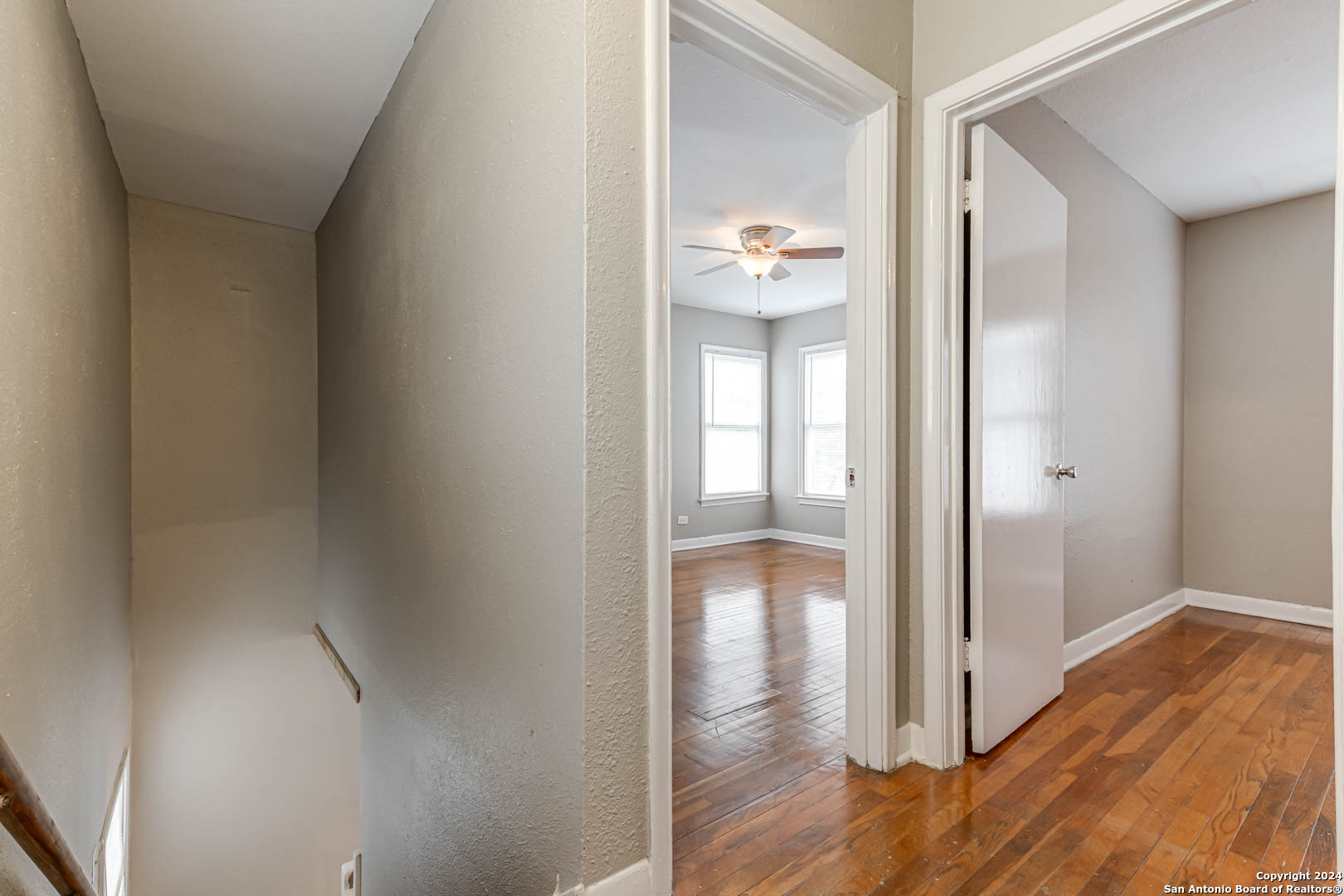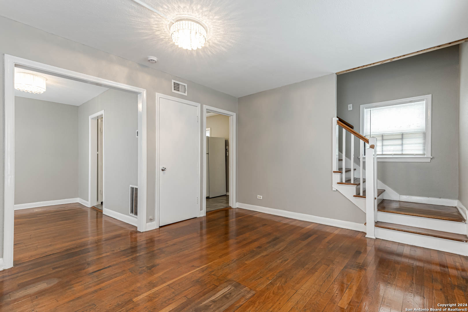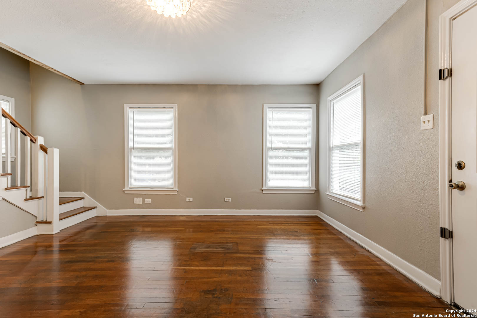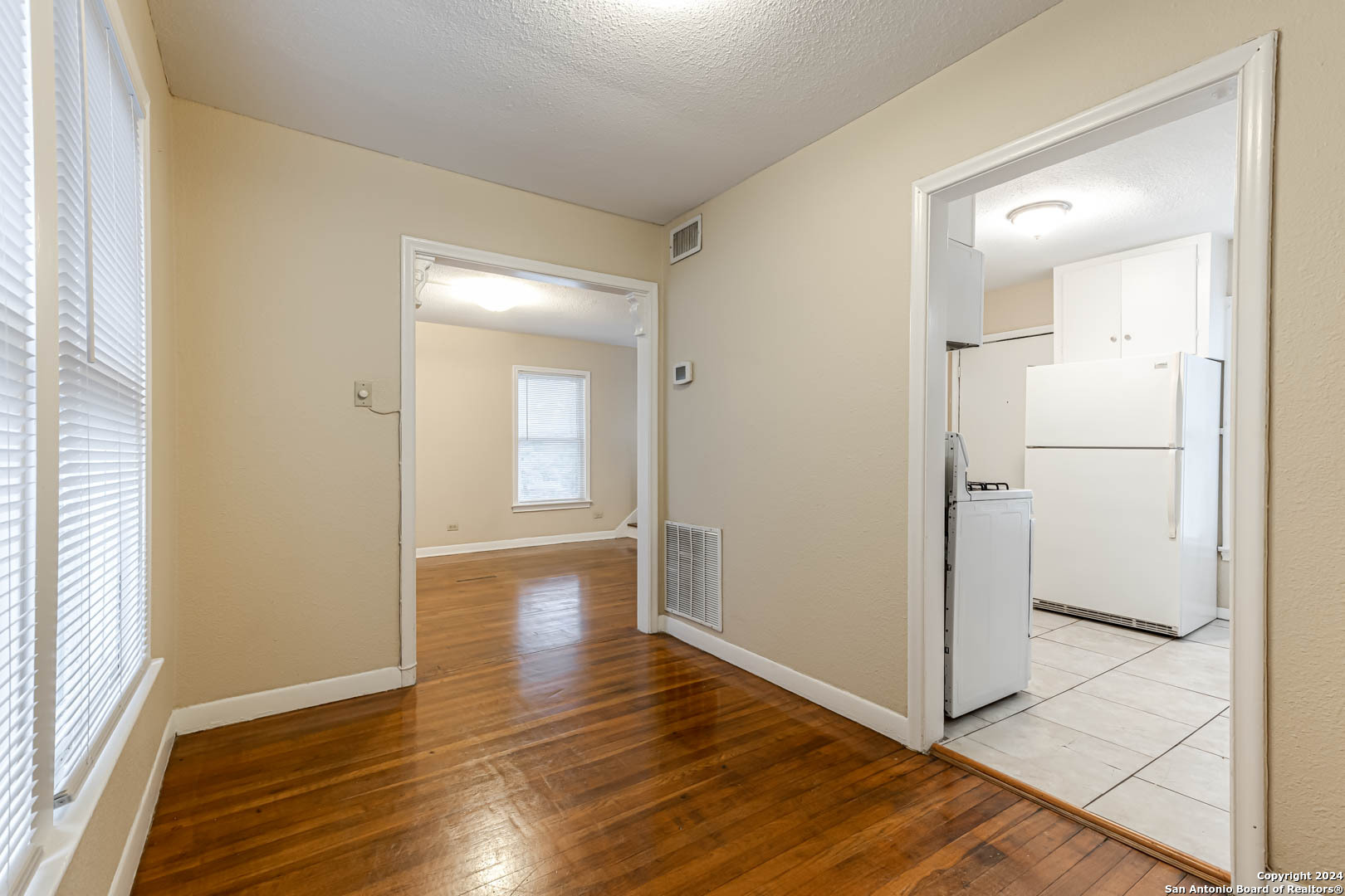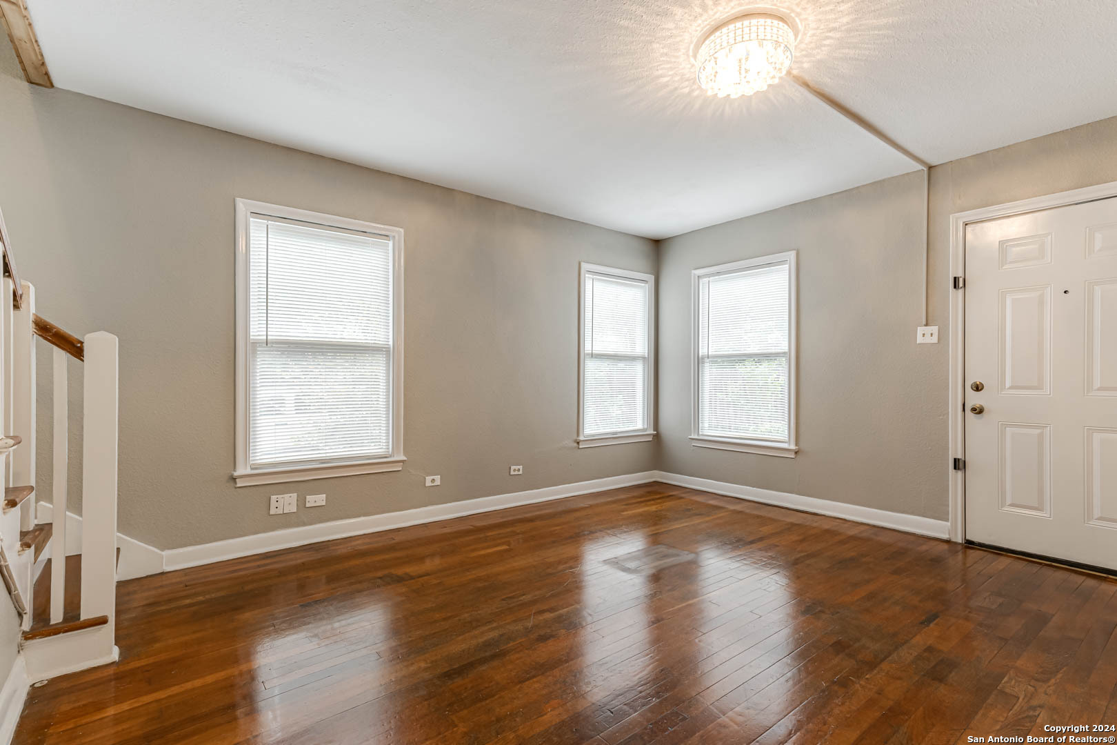 Charming two-story duplex in desirable Mahncke Park, just off Broadway and near Alamo Heights! This freshly painted unit features central air and heat, hardwood floors, and two upstairs bedrooms. Enjoy the convenience of an in-unit washer and dryer! Prime location close to Fort Sam Houston, The Pearl, the DoSeum, and just minutes from downtown and Highway 281. A short bike ride to the San Antonio Zoo, local shops, restaurants, museums, and nightlife. Smoke-free living! This unique layout offers the privacy of an upstairs/downstairs setup with no neighbors above you.