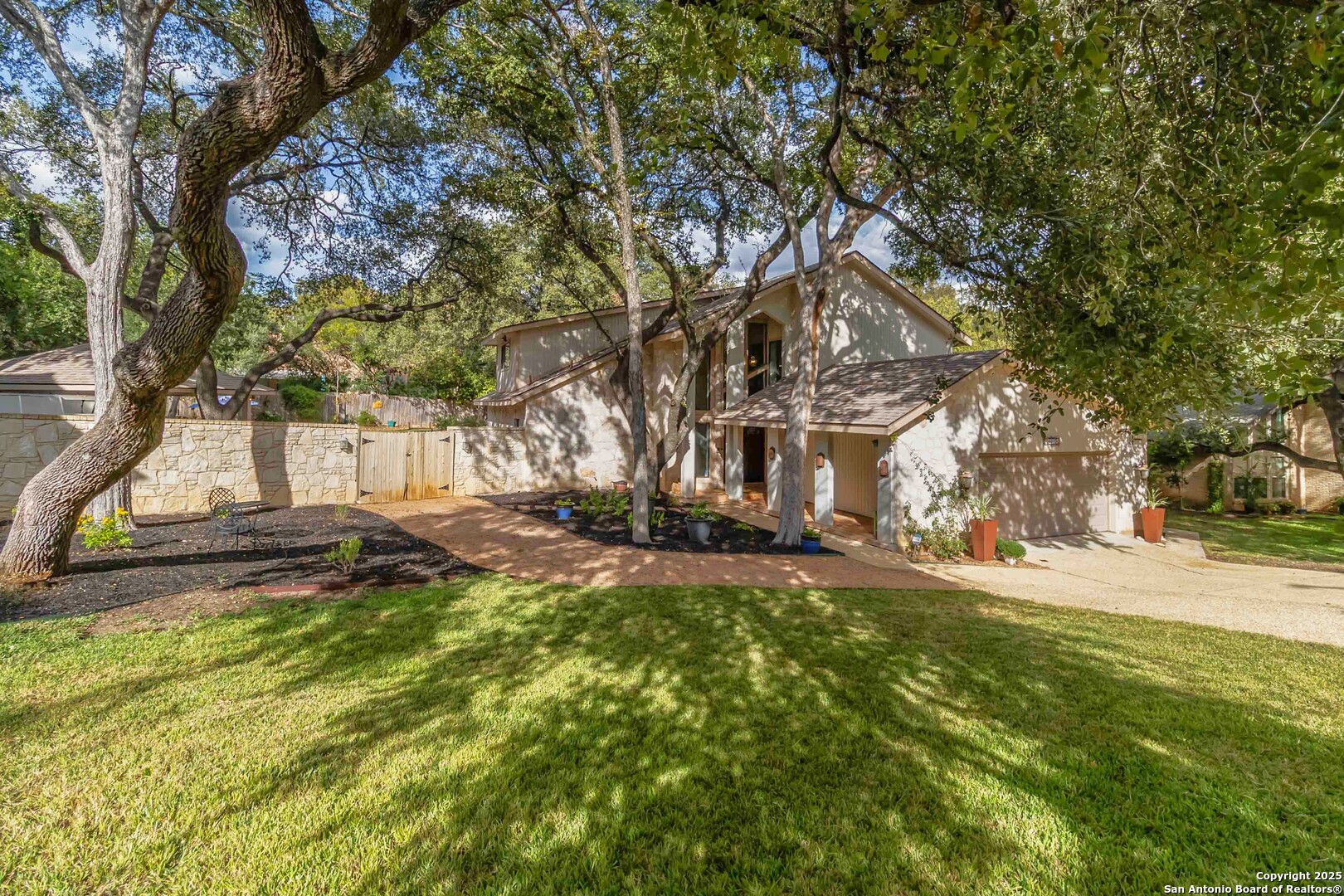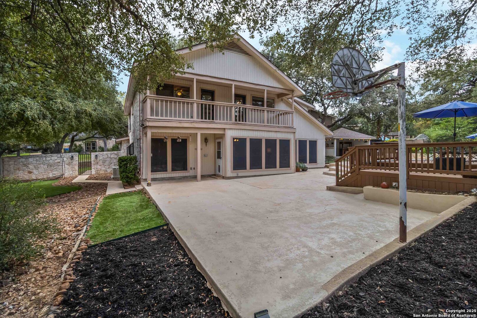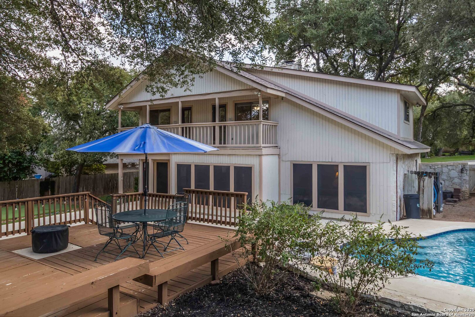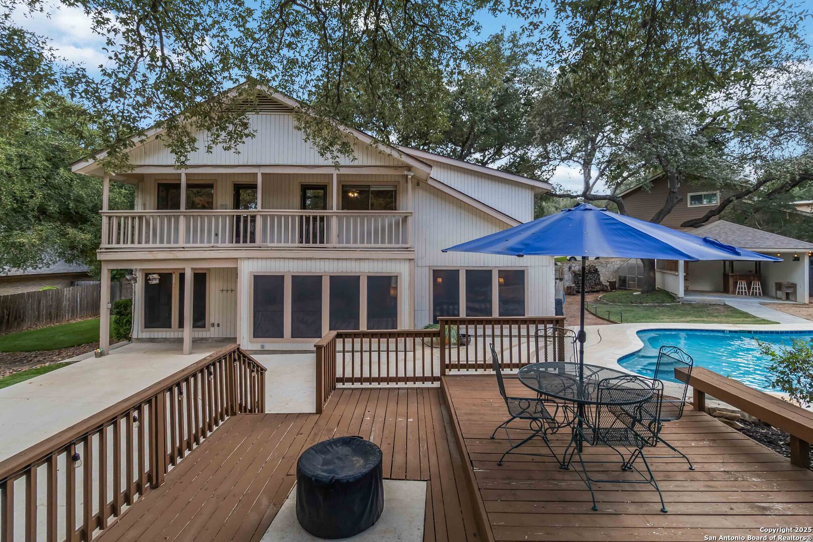Where timeless charm meets easy living in the heart of North Central San Antonio. Nestled on a peaceful, tree-lined street, this beautifully maintained home invites you to slow down, stretch out, and savor every moment. Inside, you'll find a comfortable balance of space and sophistication - from the welcoming foyer with updated lighting to the sunlit kitchen featuring granite counters, built-in oven and microwave, smooth-top stove, ice machine, and cheerful garden windows bringing in natural light and views of the side yard. The downstairs primary suite offers a serene retreat away from it all, complete with a recently updated ensuite with shower and dual vanities, and a roomy bedroom overlooking the pool. Meanwhile upstairs are three spacious bedrooms, a double-sink bath, and a large game room providing plenty of room for everyone to spread out. Out back, the fun continues. Enjoy a refreshing swim, relax under the covered cabana, shoot hoops on the oversized patio, or practice your short game on the private putting green and driving net - or perhaps you'd simply prefer staying in touch with nature by spending time in your very own green house. And when it's time to eat, make the most of the oversized deck with plenty of space for both grilling and dining. This thoughtfully designed outdoor oasis is truly intended for both play and leisure. Bad weather warnings won't even dampen your joy, as you'll be the only home on the street with lights aglow, thanks to your Generac whole house generator! Set on nearly half an acre surrounded by mature oaks, this home is part of a friendly, walkable community known for its rolling hills and easy access to everything. From here, you can be at the airport, shopping, or your favorite restaurant in minutes. A home that's ready for your next chapter - with comfort, convenience, and character that never goes out of style.