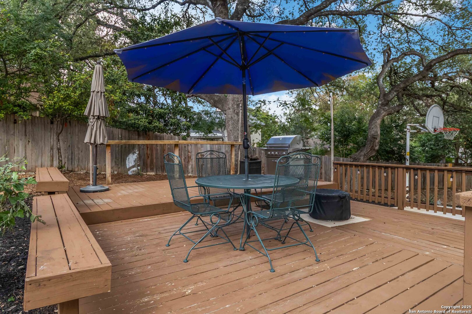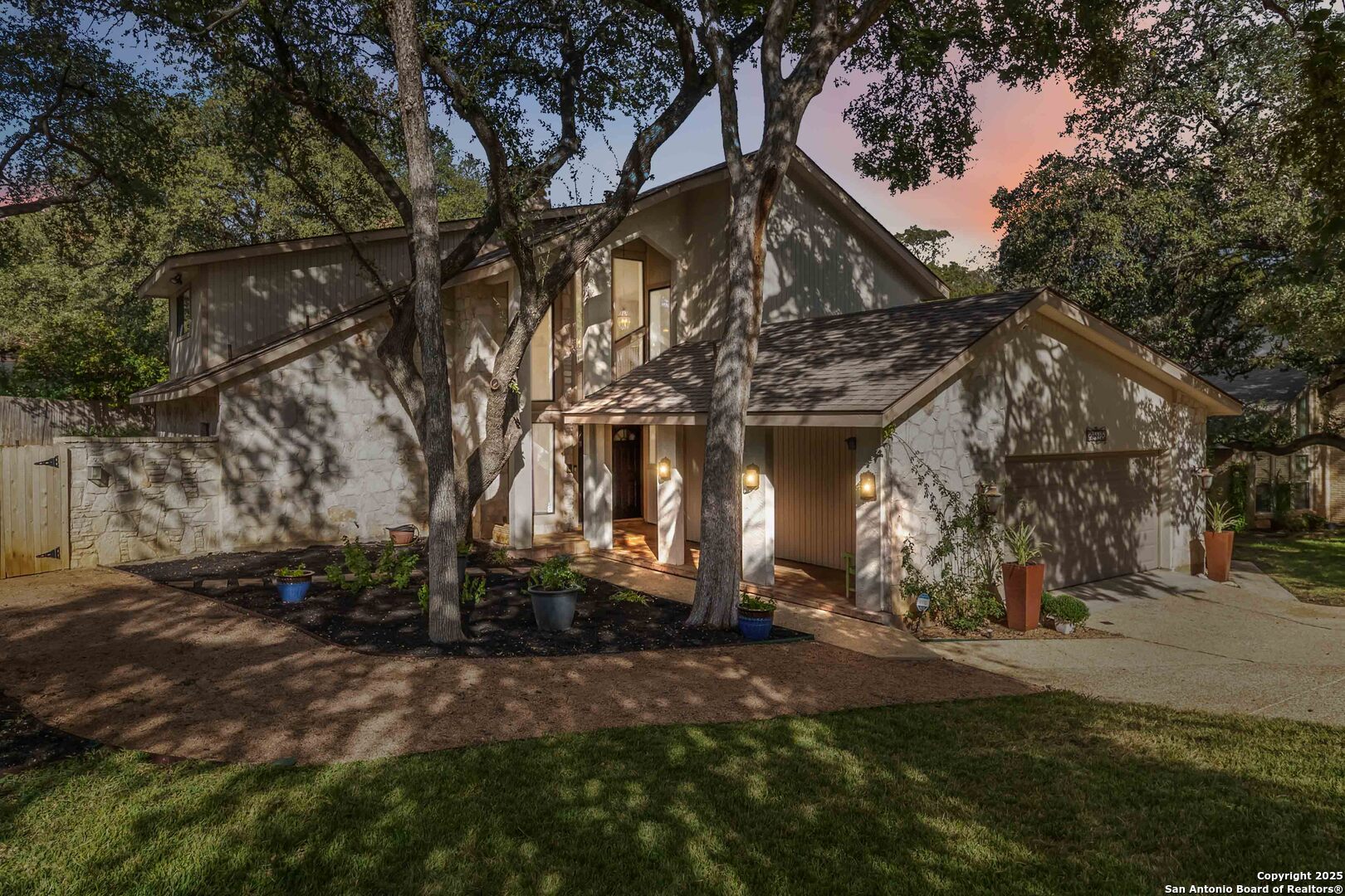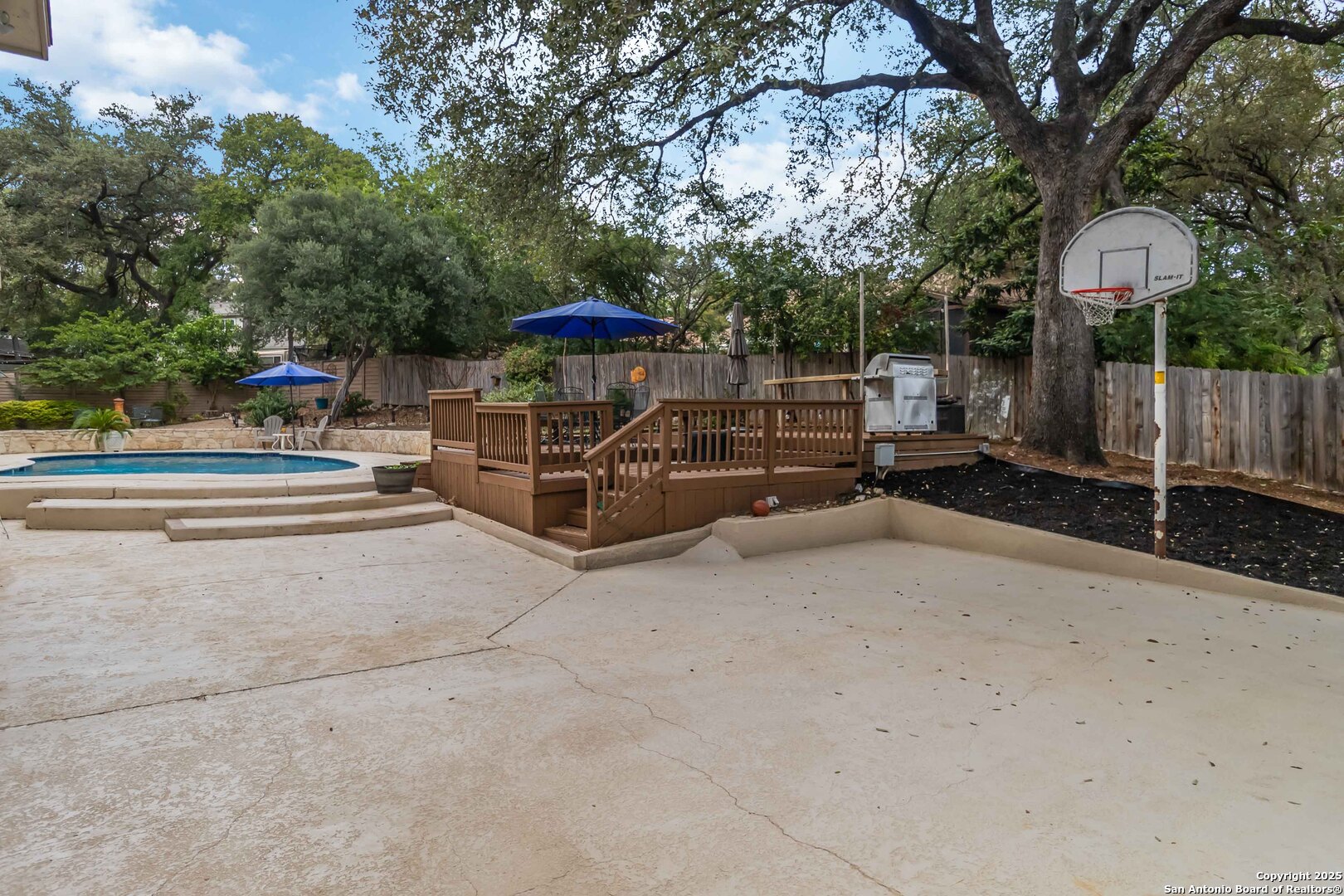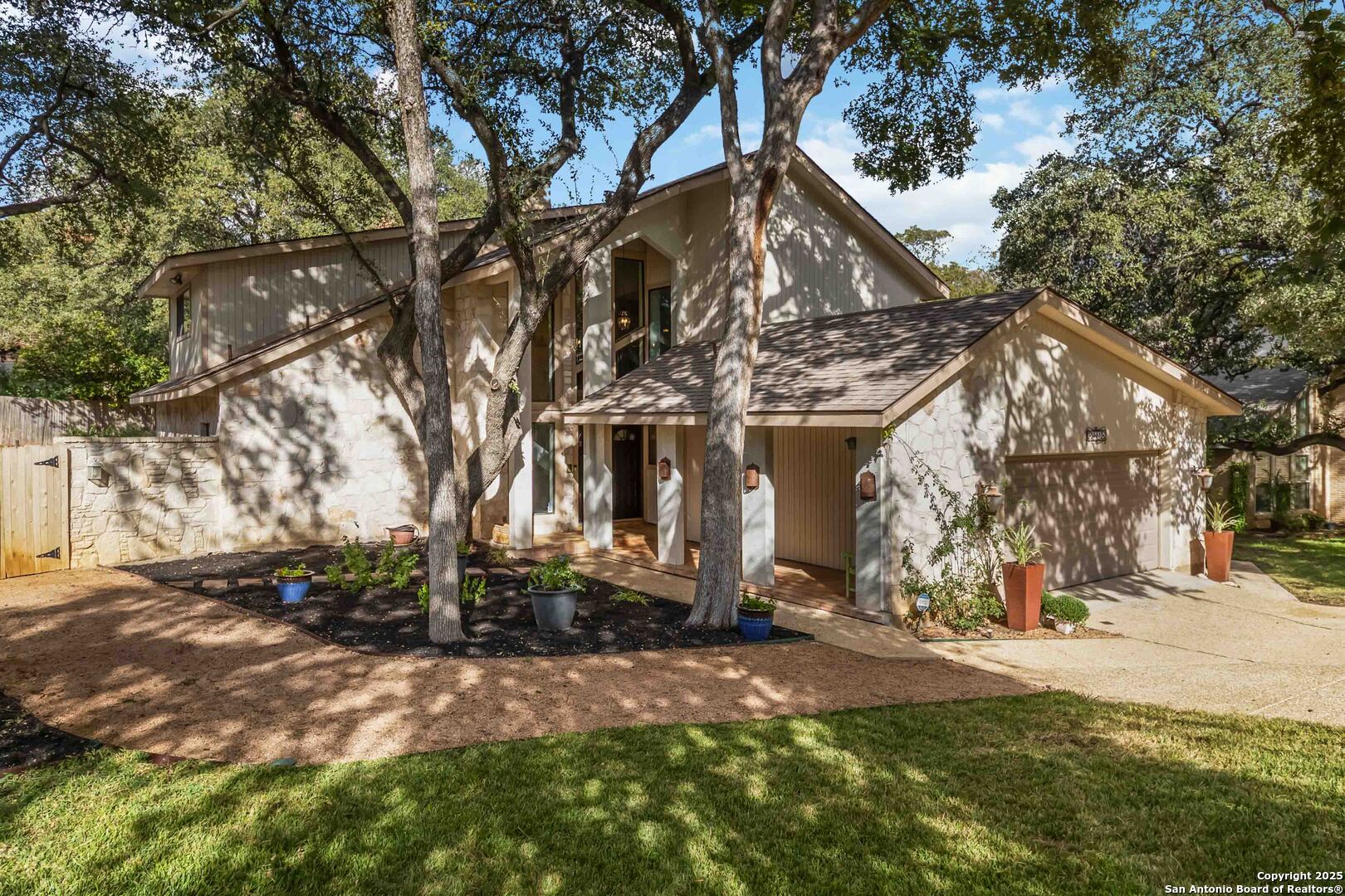 Where timeless charm meets easy living in the heart of North Central San Antonio. Nestled on a peaceful, tree-lined street, this beautifully maintained home invites you to slow down, stretch out, and savor every moment. Inside, you'll find a comfortable balance of space and sophistication - from the welcoming foyer with updated lighting to the sunlit kitchen featuring granite counters, built-in oven and microwave, smooth-top stove, ice machine, and cheerful garden windows bringing in natural light and views of the side yard. The downstairs primary suite offers a serene retreat away from it all, complete with a recently updated ensuite with shower and dual vanities, and a roomy bedroom overlooking the pool. Meanwhile upstairs are three spacious bedrooms, a double-sink bath, and a large game room providing plenty of room for everyone to spread out. Out back, the fun continues. Enjoy a refreshing swim, relax under the covered cabana, shoot hoops on the oversized patio, or practice your short game on the private putting green and driving net - or perhaps you'd simply prefer staying in touch with nature by spending time in your very own green house. And when it's time to eat, make the most of the oversized deck with plenty of space for both grilling and dining. This thoughtfully designed outdoor oasis is truly intended for both play and leisure. Bad weather warnings won't even dampen your joy, as you'll be the only home on the street with lights aglow, thanks to your Generac whole house generator! Set on nearly half an acre surrounded by mature oaks, this home is part of a friendly, walkable community known for its rolling hills and easy access to everything. From here, you can be at the airport, shopping, or your favorite restaurant in minutes. A home that's ready for your next chapter - with comfort, convenience, and character that never goes out of style.