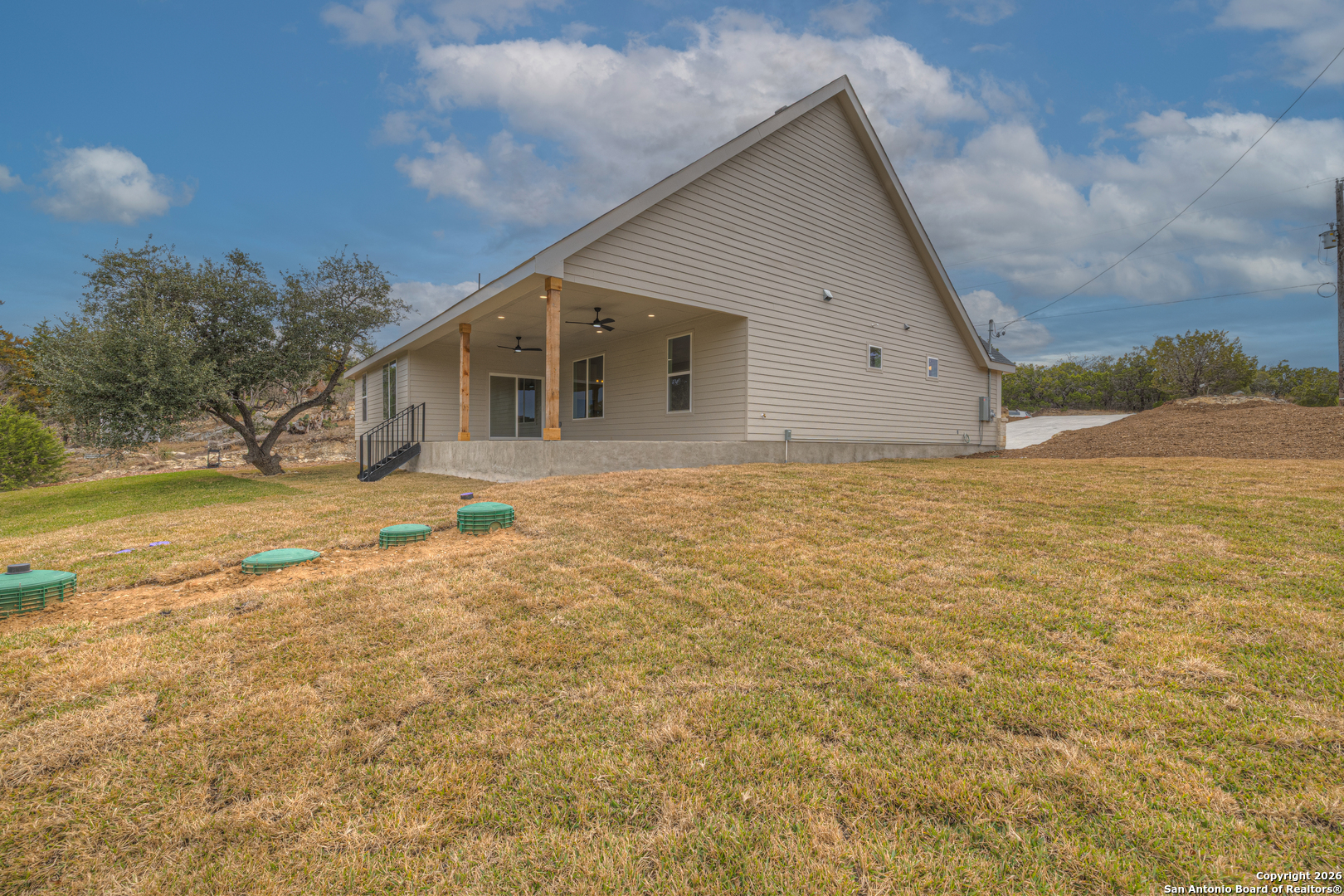 Welcome to your dream home at Canyon Lake. This newly constructed 3-bedroom, 3.5-bath residence offers over 2600 square feet of thoughtfully designed living space, blending modern comfort with serene Hill Country living. Positioned on an elevated 0.65-acre lot, the home enjoys added privacy and scenic views. Inside, the open-concept layout features raised ceilings in the family room, creating a bright and airy atmosphere ideal for both everyday living and entertaining. The modern kitchen is equipped with stainless steel appliances and an oversized island, providing ample workspace and gathering space. Tile flooring throughout the home adds both elegance and low-maintenance durability. The primary suite offers a spacious retreat, complete with a large walk-in closet and well-appointed bath. Two additional bedrooms provide flexibility for family, guests, or a home office, both bedrooms comes with their own bathroom and walk-in closet. A two-car garage and extended driveway offer generous parking and storage options. Outdoor living is equally impressive, with a covered patio and expansive lot that allows easy access around the entire property-perfect for entertaining or enjoying the outdoors. An aerated septic system ensures efficiency and long-term reliability. Thoughtful upgrades and distinctive features set this home apart from other new construction options. Ideally located just minutes from Canyon Lake High School and a short drive to multiple boat ramps, this property is perfectly suited for families and lake enthusiasts alike. Don't miss the opportunity to own a beautifully crafted home in one of Canyon Lake's most desirable areas.