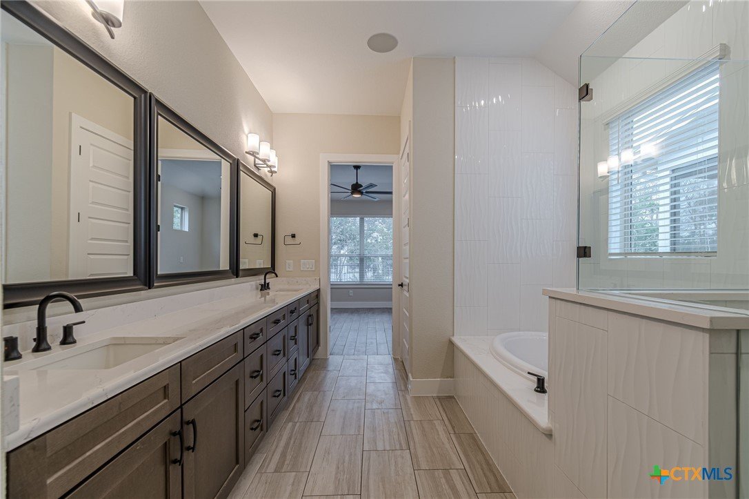 Your search for the perfect home has ended! This is a beautifully finished Tulane floor plan- offering over 2000 sq.ft. in a 2 bedroom, 2 bath home with a study. The study located off of the kitchen/living/dining space makes for awesome, classy and comfortable living. This master suite checks all the boxes with an exceptional bathroom offering a jetted tub AND large separate shower. One of the rare features of this home is the storage space INSIDE the home, some use as a secondary study. You'll find you're loving the separation between master and guest rooms, the openness at the hub of the home, the large quartz island kitchen, the natural light that flows throughout the home. The benefit of the extensive outdoor landscaping in both the front and backyards make this the end of your home search! You will be hard pressed to find something that is finished out as well as this home is - come take a look now before this home gets picked up!