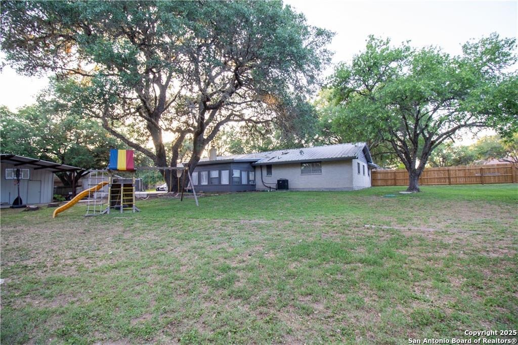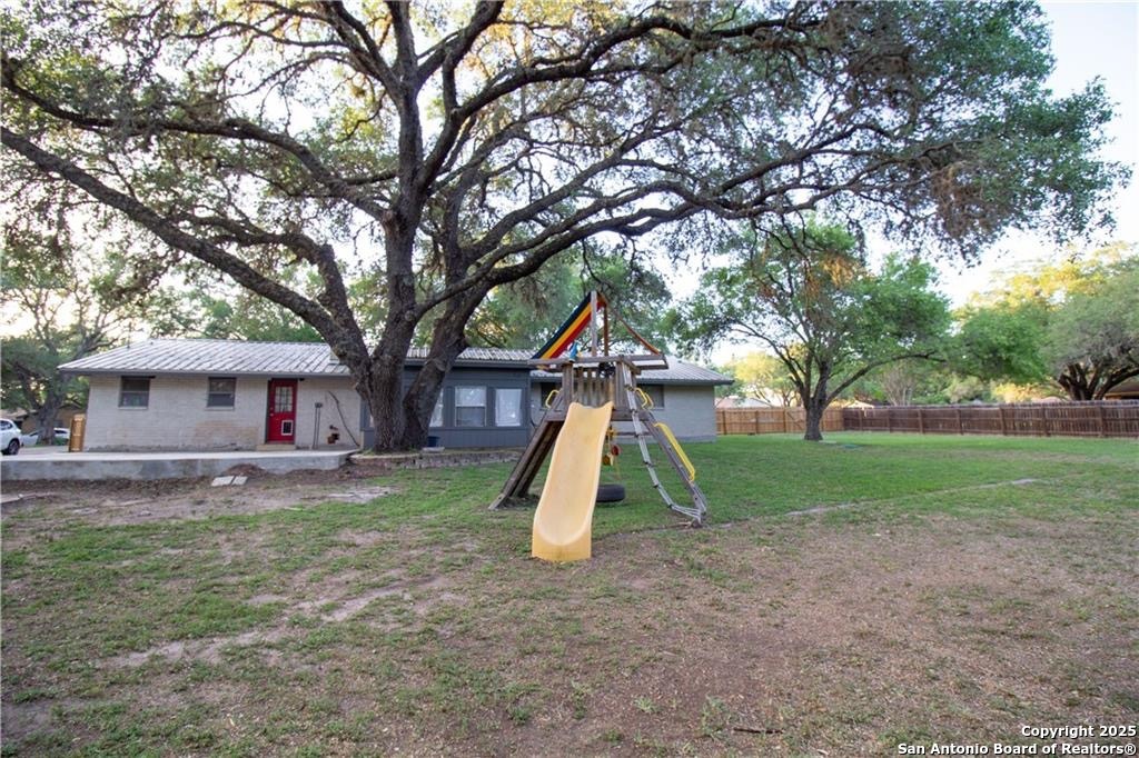 This recently updated and charming 4-bedroom, 2-bathroom brick home is the perfect blend of comfort and convenience, nestled beneath the shade of spectacular oak trees on a spacious .56-acre lot. Inside, you'll find freshly painted interiors, a sunroom bathed in natural light, newly renovated bathrooms, and a versatile extra room that can serve as an additional bedroom, office, gym, or second living area. The home also features a durable metal roof, a newly constructed metal shop with 2 large bays for projects or secure parking, and an extended concrete patio ideal for entertaining or relaxing outdoors. Adding to its appeal, this property offers both timeless charm and modern updates, with a swing set that stays for endless fun. Located in one of Beeville's most sought-after locations, this home truly offers the best of indoor and outdoor living.
