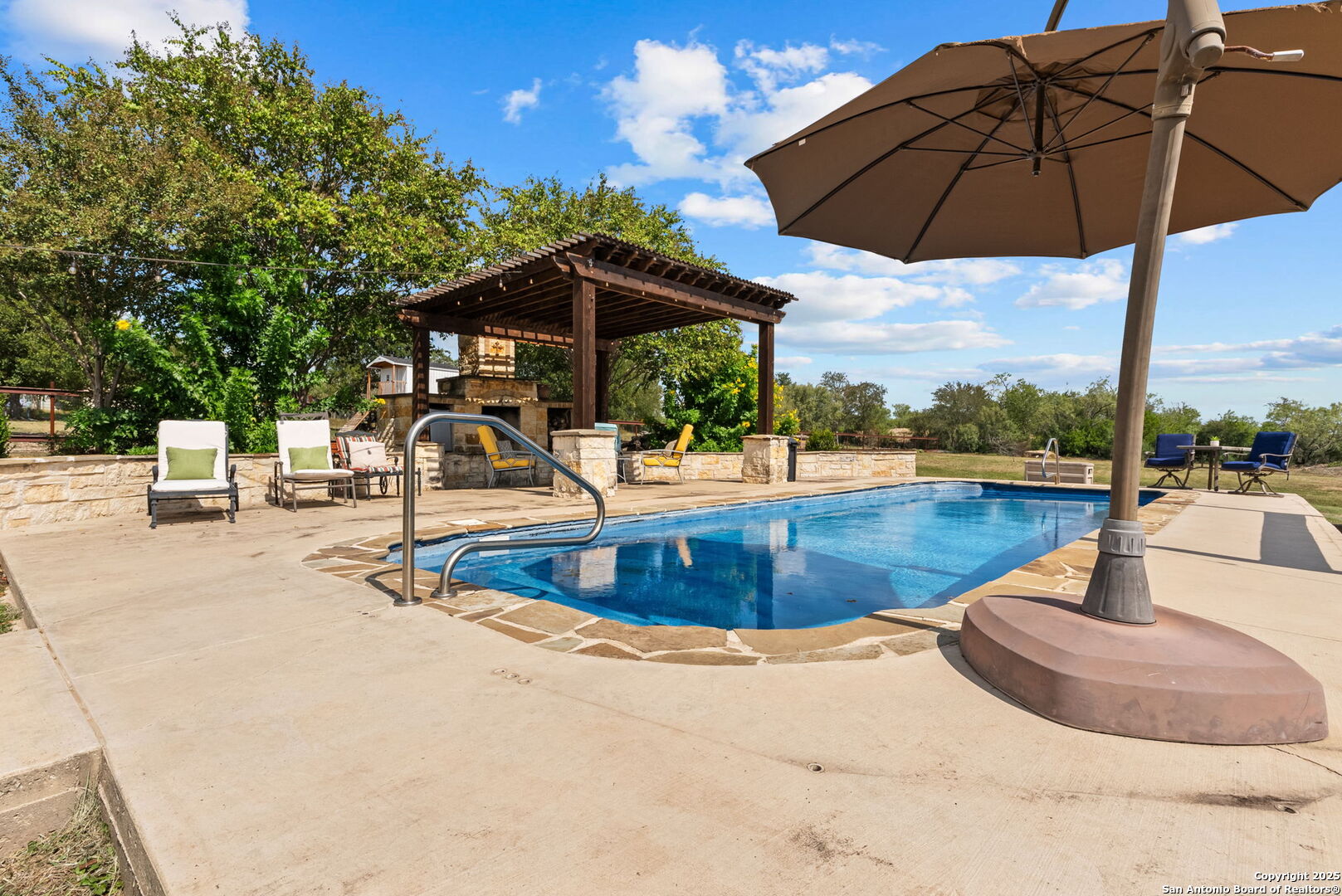 Welcome to 330 Ferryboat Ln, where everyday living feels like a getaway. Set on 2 acres with no HOA, this New Braunfels retreat offers freedom, space, and flexibility just minutes from the best of town. The main home features 3 bedrooms, 2.5 baths, a home office, open kitchen-living area, screened porch, open porch, and a balcony to soak in Hill Country breezes. Upstairs, a flex space makes the perfect man cave, game room, or even a 4th bedroom. Outside, enjoy your private pool with fireplace and plenty of room to entertain. Need more space? A detached apartment plus office creates endless opportunities for multi-generational living, guests, or working from home. With San Antonio and Austin within easy reach, this is the rare property that lets you have it all-freedom, lifestyle, and convenience.