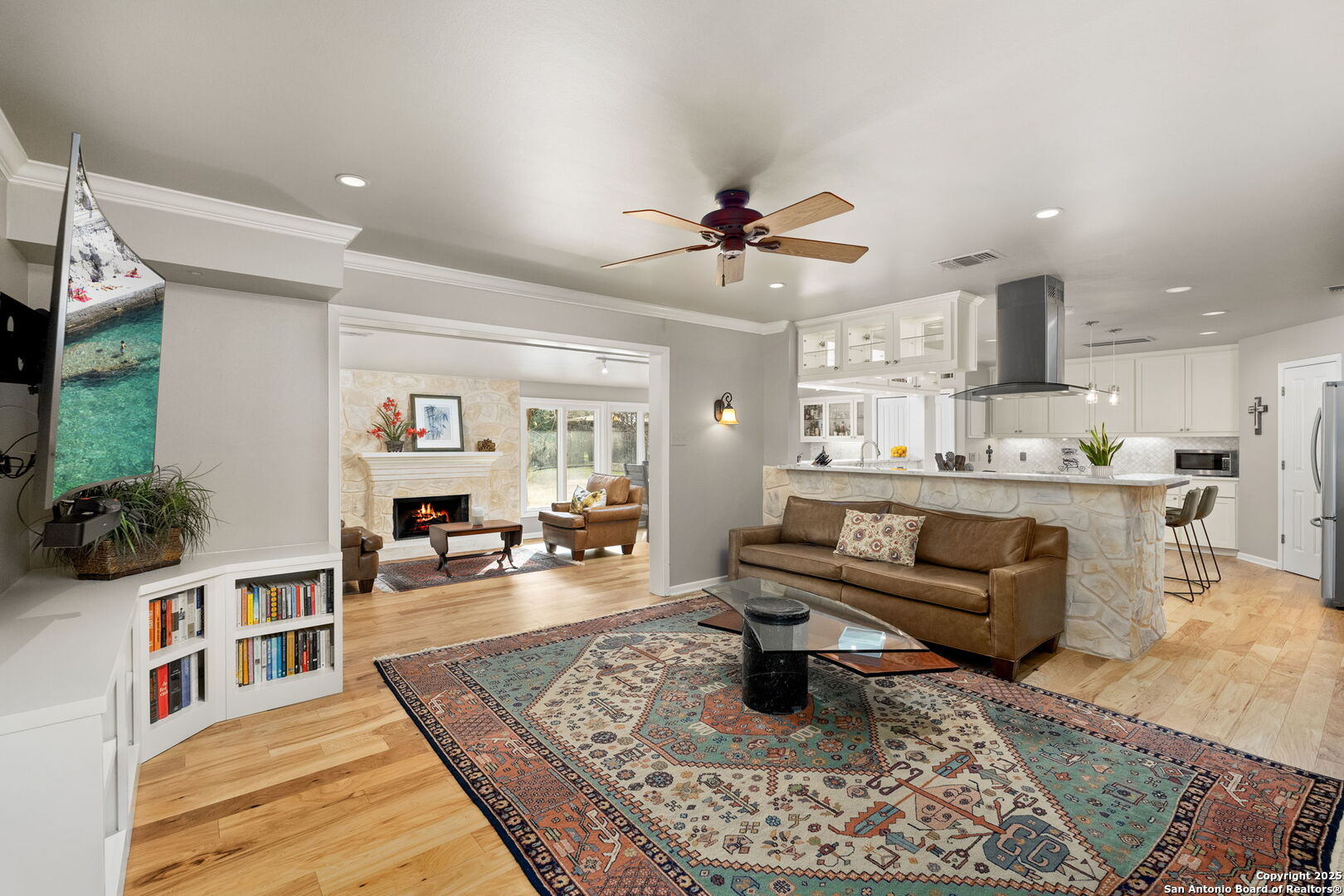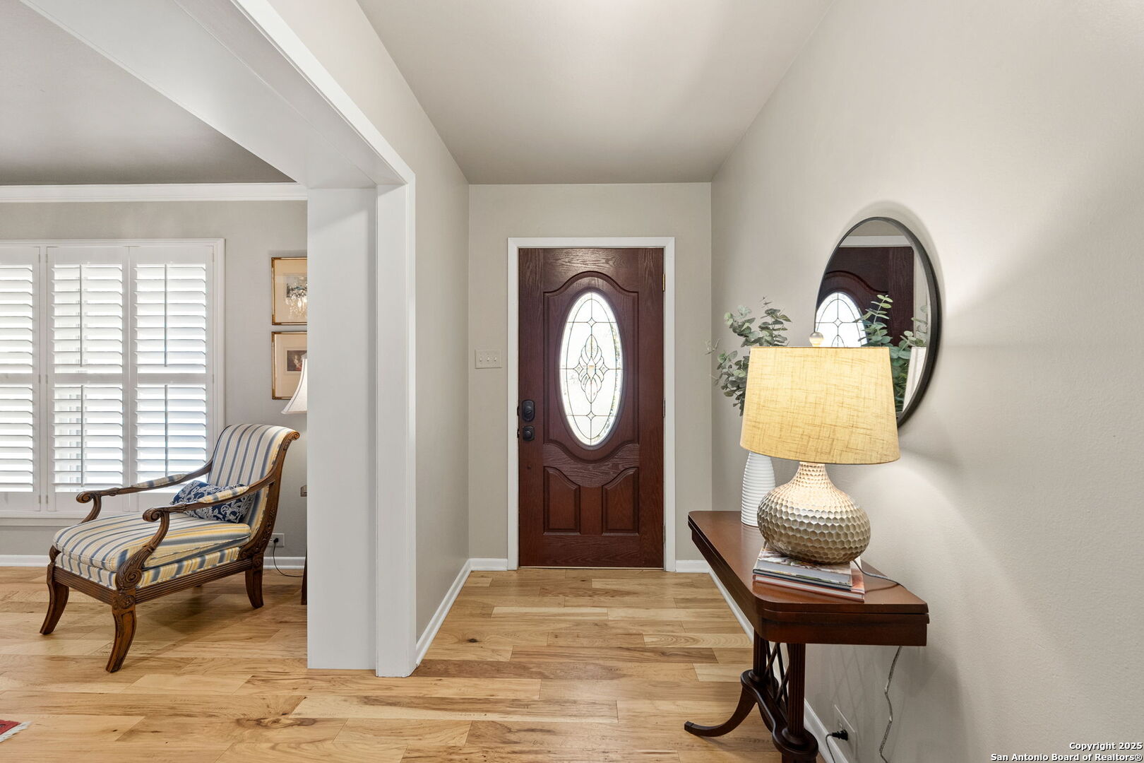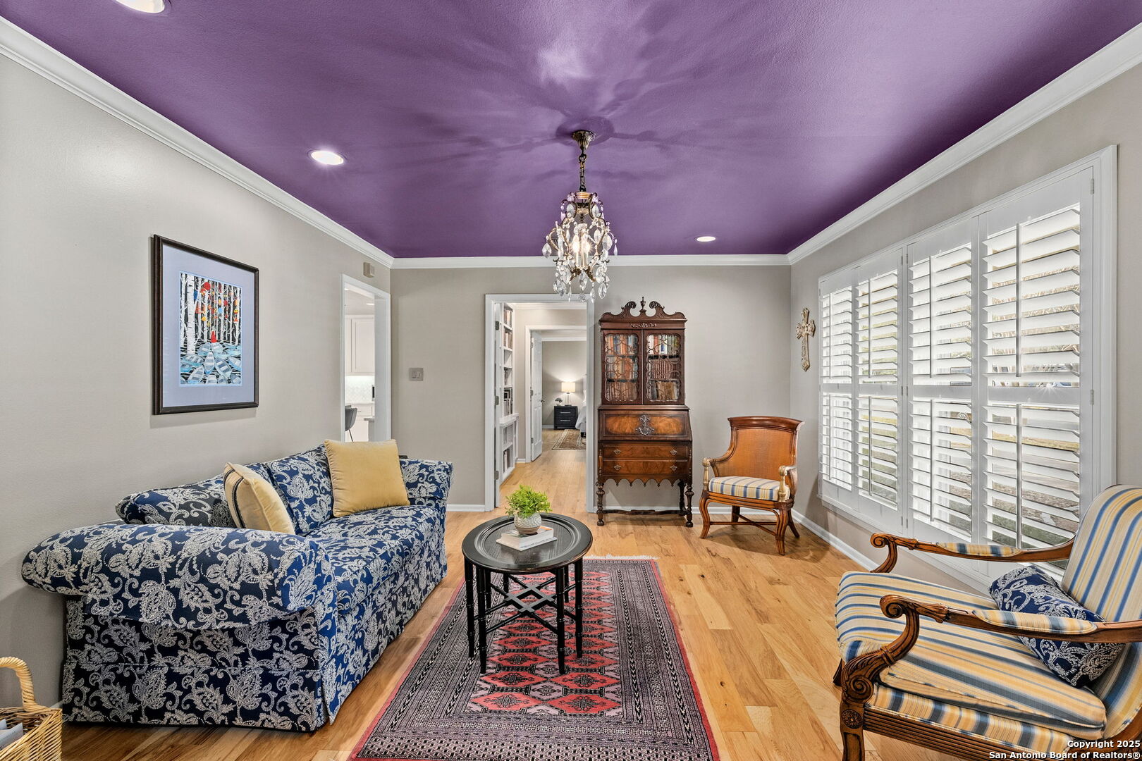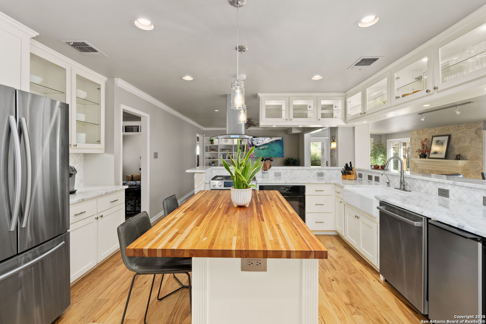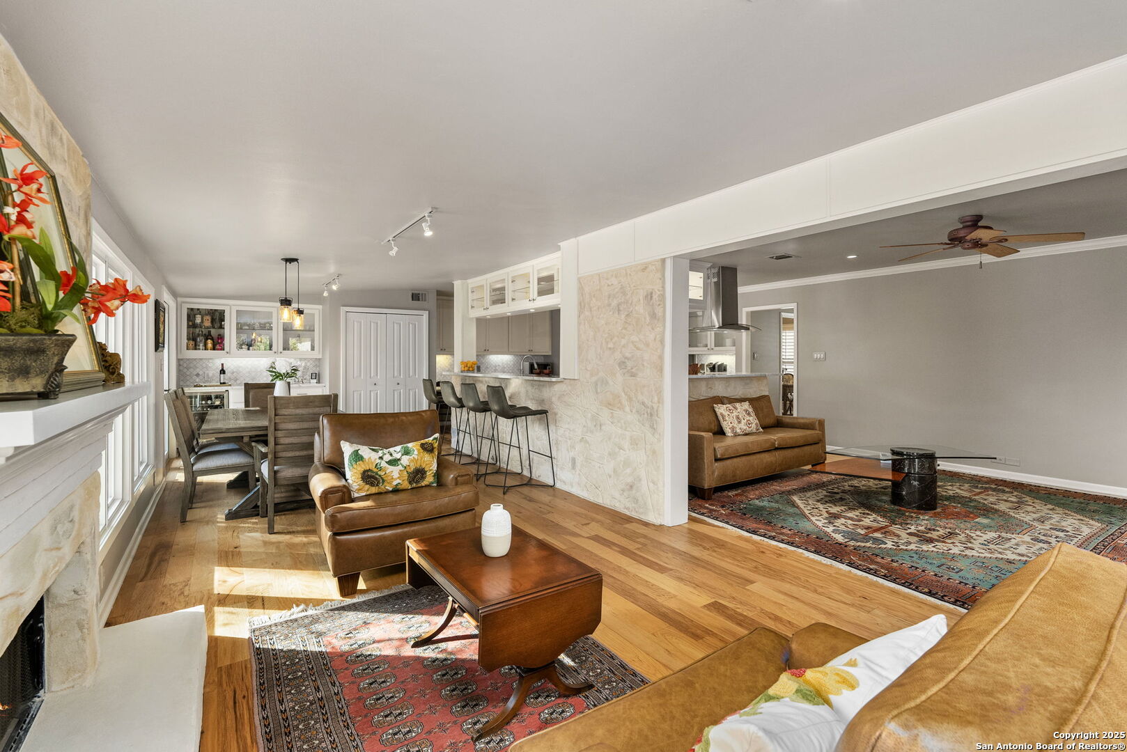 Discover refined luxury and exceptional design in this stunning one-story rancher located in the prestigious Northwood subdivision. Thoughtfully updated with crown molding, and beautiful blond hardwood floors throughout, this home offers an elegant blend of modern comfort and timeless charm. Designed for both gracious entertaining and everyday living, this home boasts dual primary suites, dual living areas, and dual dining spaces. The expansive island kitchen is a chef's dream, featuring marble countertops, abundant cabinetry, a walk-in pantry, gas cooking, a butcher block center island, and two ovens-one gas and one electric. The formal dining room welcomes gatherings with its rich wood floors, while the casual dining area provides a more intimate setting. The living room features built-in entertainment shelving and opens into a second living space with a fireplace and picturesque backyard views, creating a seamless indoor-outdoor flow. Both primary suites offer spacious layouts, with the main suite boasting multiple closets, an adjoining study/sitting area, and a completely remodeled en-suite bath. The second primary suite offers private comfort, perfect for multigenerational living or guests. A generously sized secondary bedroom completes the home. Luxury extends outdoors, where a wonderfully fenced yard features two outdoor living areas, ideal for alfresco dining or gathering around the fire pit. The oversized detached two-car garage with alley entry provides additional storage and convenience. This extraordinary home delivers elegance, functionality, and a premier location-schedule your private tour today!