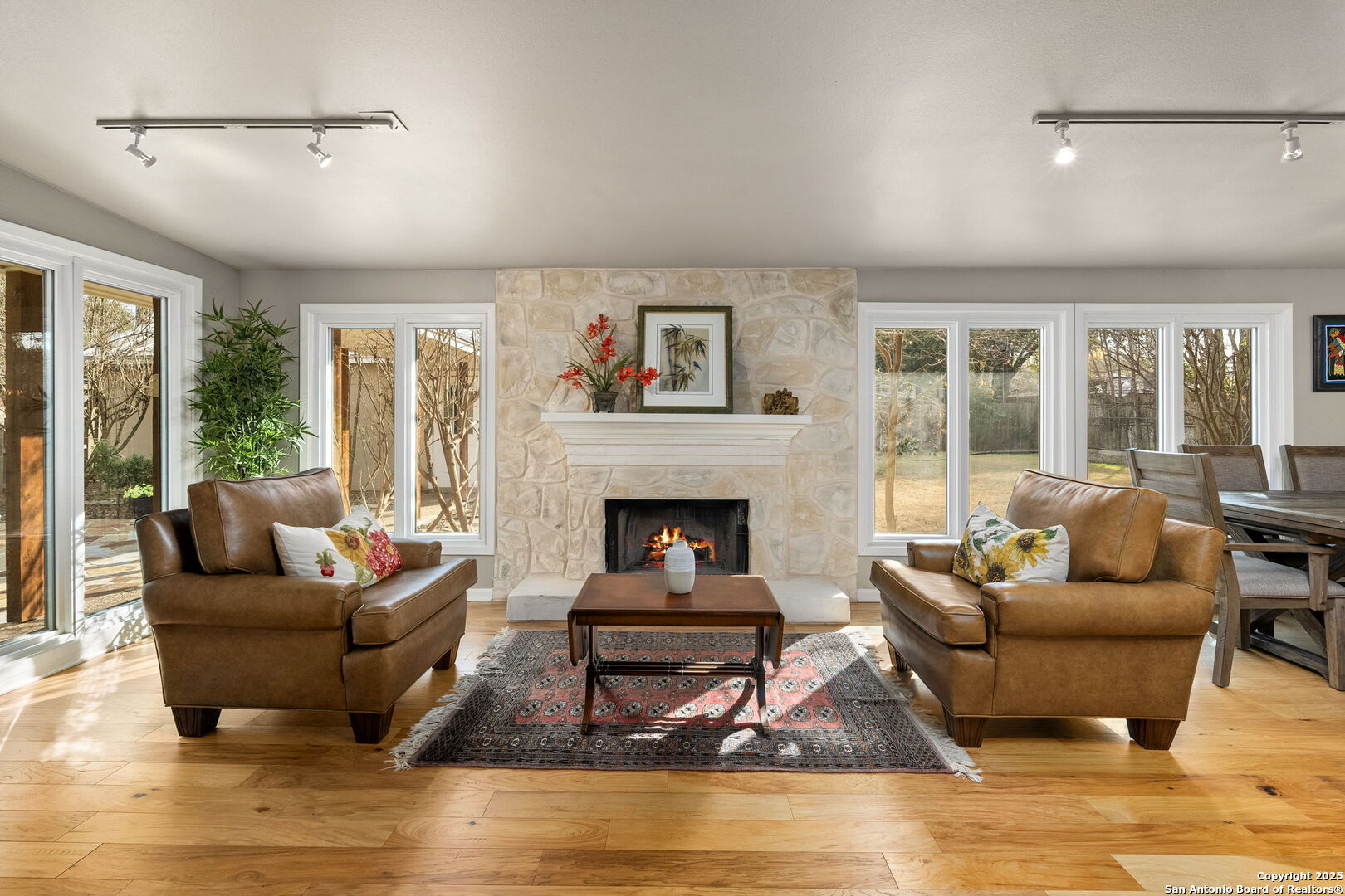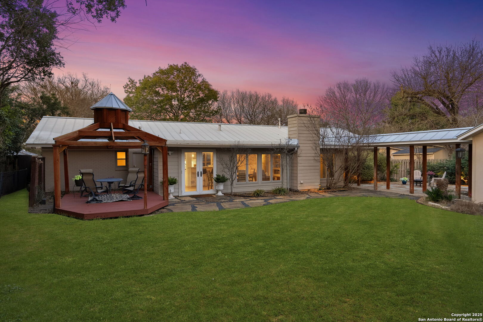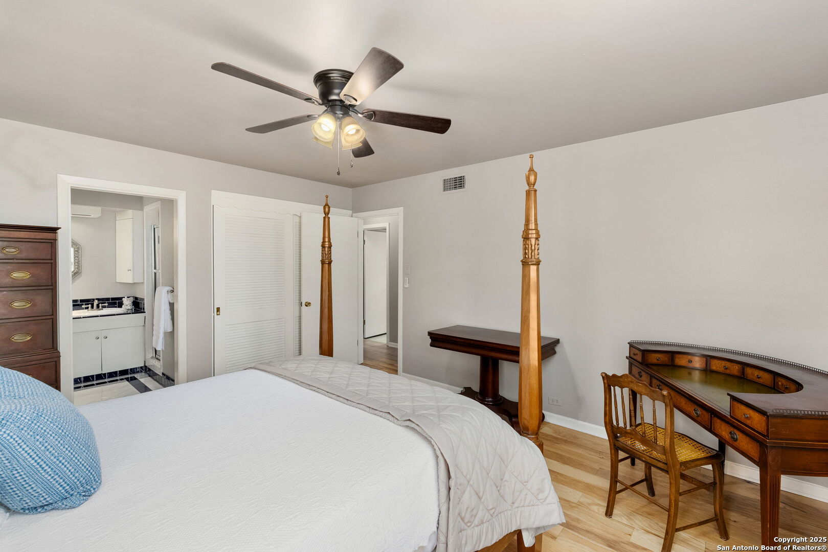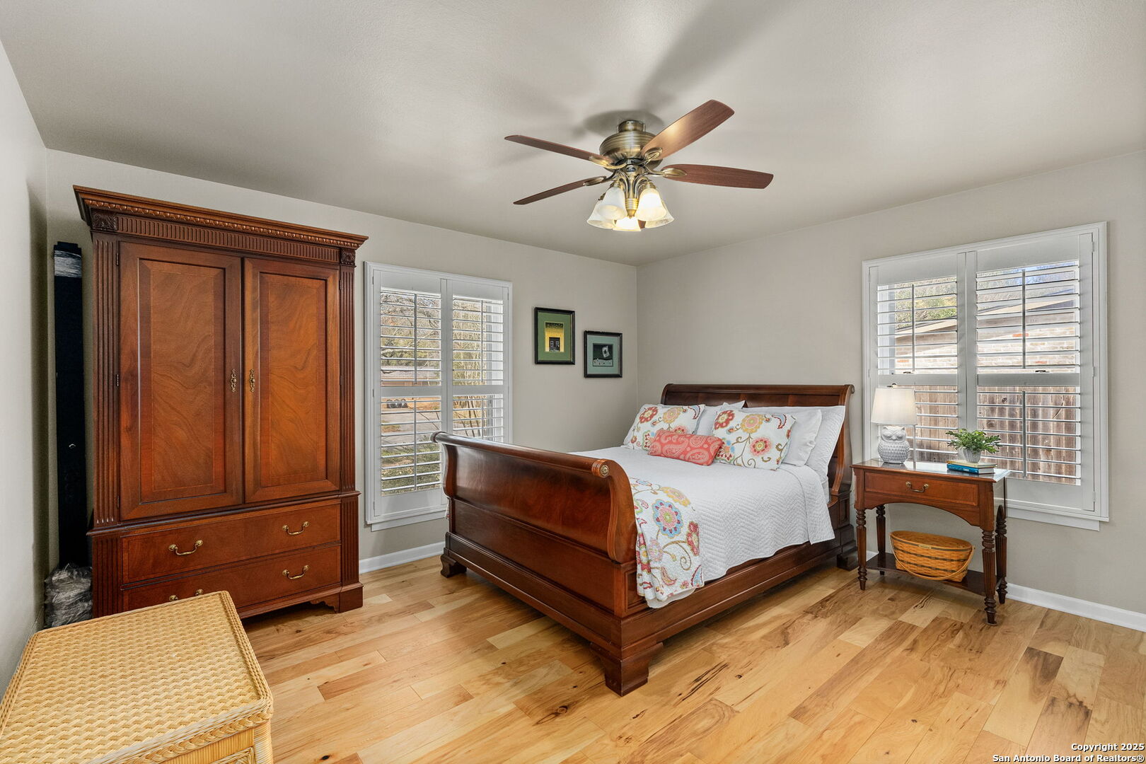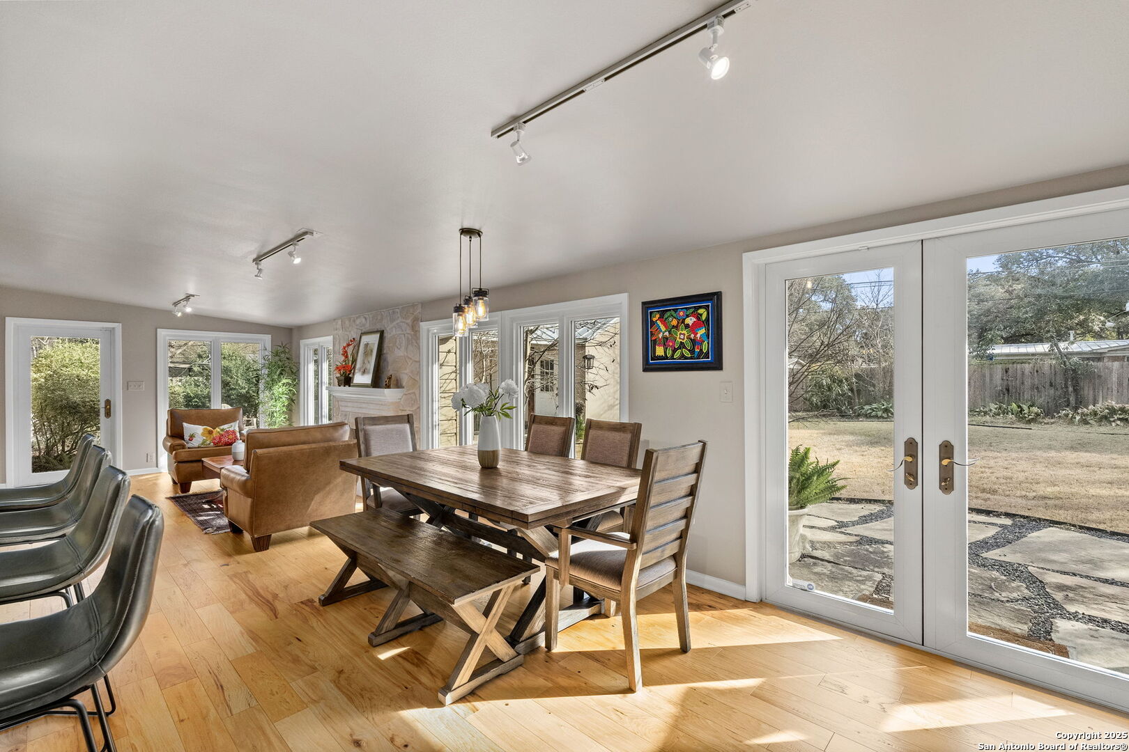 Discover refined luxury and exceptional design in this stunning one-story rancher located in the prestigious Northwood subdivision. Thoughtfully updated with crown molding, and beautiful blond hardwood floors throughout, this home offers an elegant blend of modern comfort and timeless charm. Designed for both gracious entertaining and everyday living, this home boasts dual primary suites, dual living areas, and dual dining spaces. The expansive island kitchen is a chef's dream, featuring marble countertops, abundant cabinetry, a walk-in pantry, gas cooking, a butcher block center island, and two ovens-one gas and one electric. The formal dining room welcomes gatherings with its rich wood floors, while the casual dining area provides a more intimate setting. The living room features built-in entertainment shelving and opens into a second living space with a fireplace and picturesque backyard views, creating a seamless indoor-outdoor flow. Both primary suites offer spacious layouts, with the main suite boasting multiple closets, an adjoining study/sitting area, and a completely remodeled en-suite bath. The second primary suite offers private comfort, perfect for multigenerational living or guests. A generously sized secondary bedroom completes the home. Luxury extends outdoors, where a wonderfully fenced yard features two outdoor living areas, ideal for alfresco dining or gathering around the fire pit. The oversized detached two-car garage with alley entry provides additional storage and convenience. This extraordinary home delivers elegance, functionality, and a premier location-schedule your private tour today!
