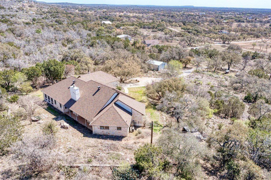 Stunning Hill Country retreat on nearly 11 private acres with breathtaking panoramic views. A paved driveway lined with magnificent mature oaks welcomes you to this thoughtfully designed 3-bedroom, 2.5-bath home. The custom floor plan follows the natural contour of the land and was designed to balance comfortable family living with effortless entertaining. The spacious primary suite includes a private sunroom, perfect for enjoying the surrounding landscape. Farmhouse-inspired updates and an open floor plan create a warm and inviting atmosphere throughout. A versatile shop provides space for hobbies, projects, or recreational storage. With privacy, scenic beauty, and sweeping sunset views, this property offers a rare opportunity to experience the best of Hill Country living.