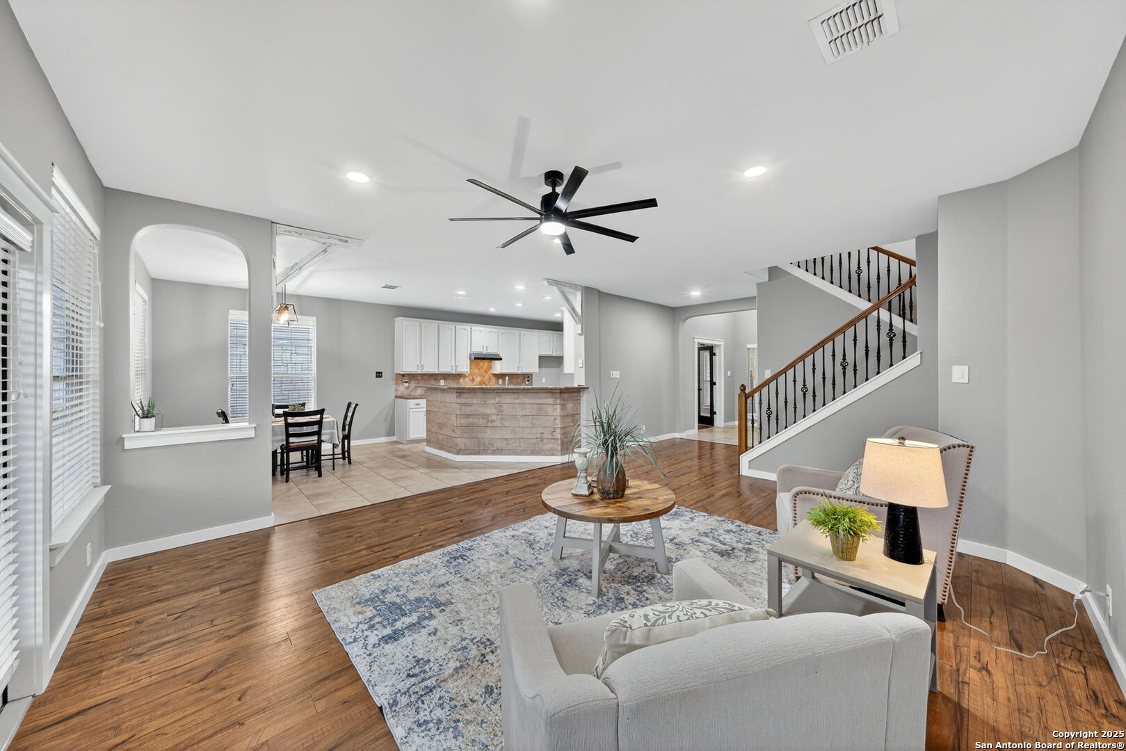 Discover comfort, space, and serenity in this beautifully updated 5-bedroom, 3.5-bath home, perfectly situated in a quiet, family-friendly neighborhood. Backing up to a peaceful greenbelt, this property offers added privacy and natural views you can enjoy year-round from the covered patio, ideal for morning coffee, evening relaxation, or weekend gatherings. Step inside to an inviting open-concept layout designed for both everyday living and effortless entertaining. The spacious kitchen features abundant counter space, generous cabinetry, and a seamless flow into the living and dining areas, making hosting a breeze. Upstairs, you'll find well-proportioned bedrooms for everyone in the household, along with a large gameroom, perfect for movie nights, playtime, or a second living space. A three-car garage provides ample room for vehicles, storage, and hobbies. Residents enjoy fantastic neighborhood amenities, including a community pool, playground, (pickleball courts currently being constructed) and dog park, fun for every member of the family, two-legged and four-legged alike. Located within the desirable Comal ISD and offering **no city taxes**, this home provides convenient access to shopping, dining, and entertainment just minutes away. With numerous updates and a warm, welcoming feel, this property truly checks every box. Come experience the charm, space, and comfort this home has to offer-and see why it's the perfect place to make lasting memories for years to come.