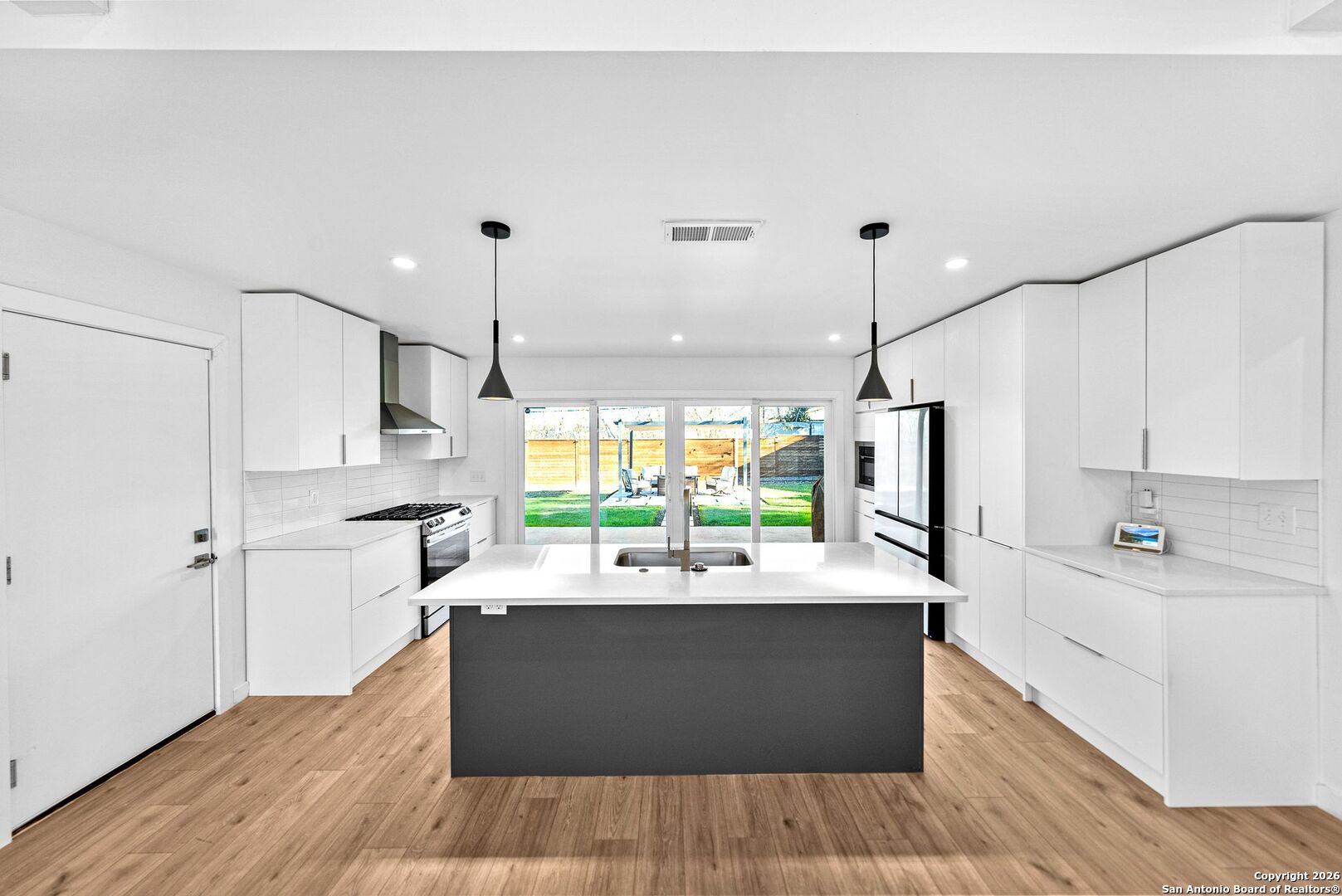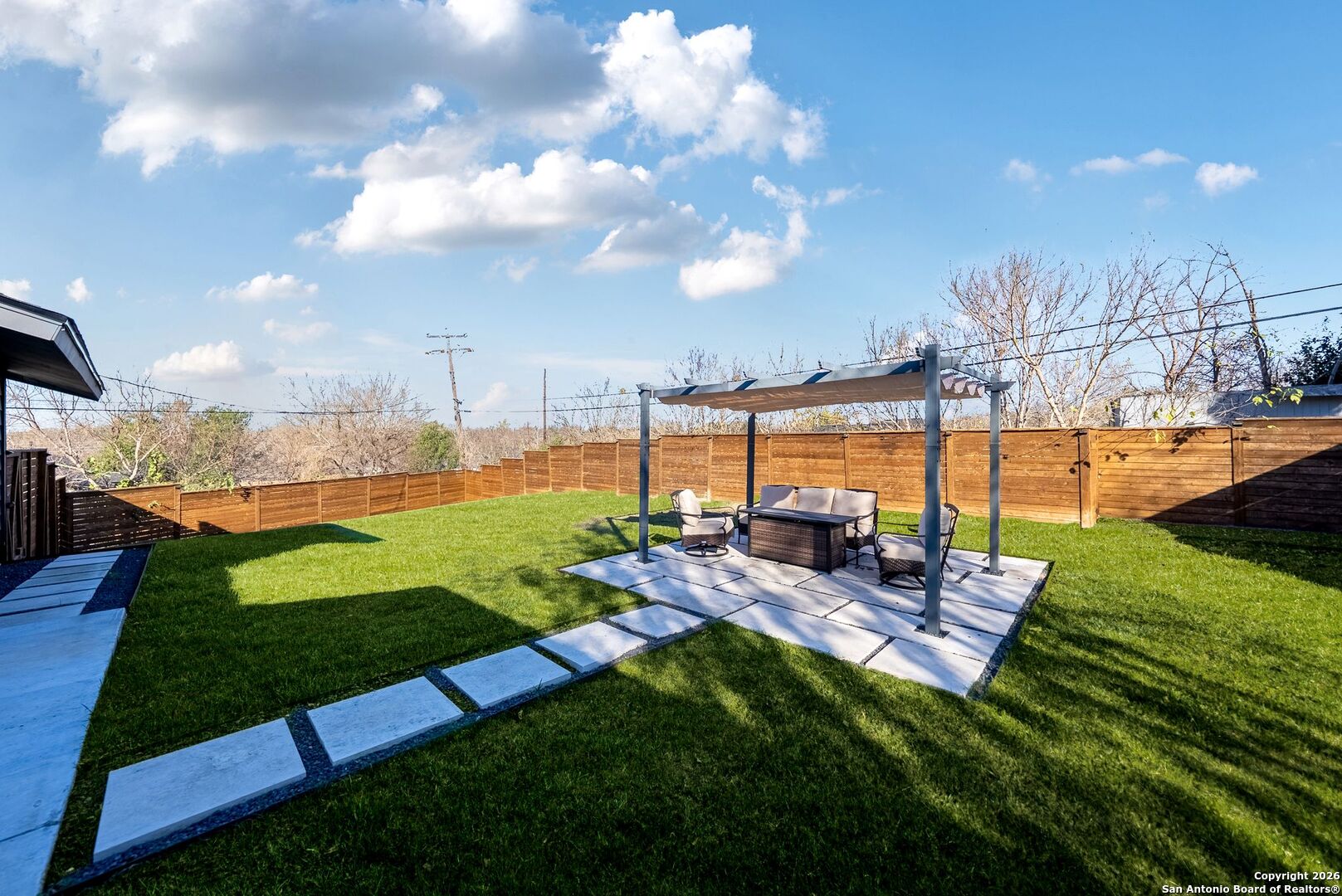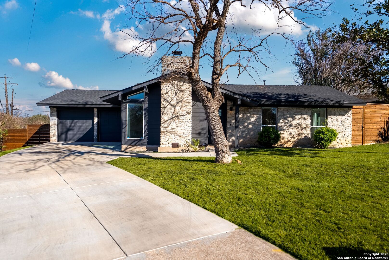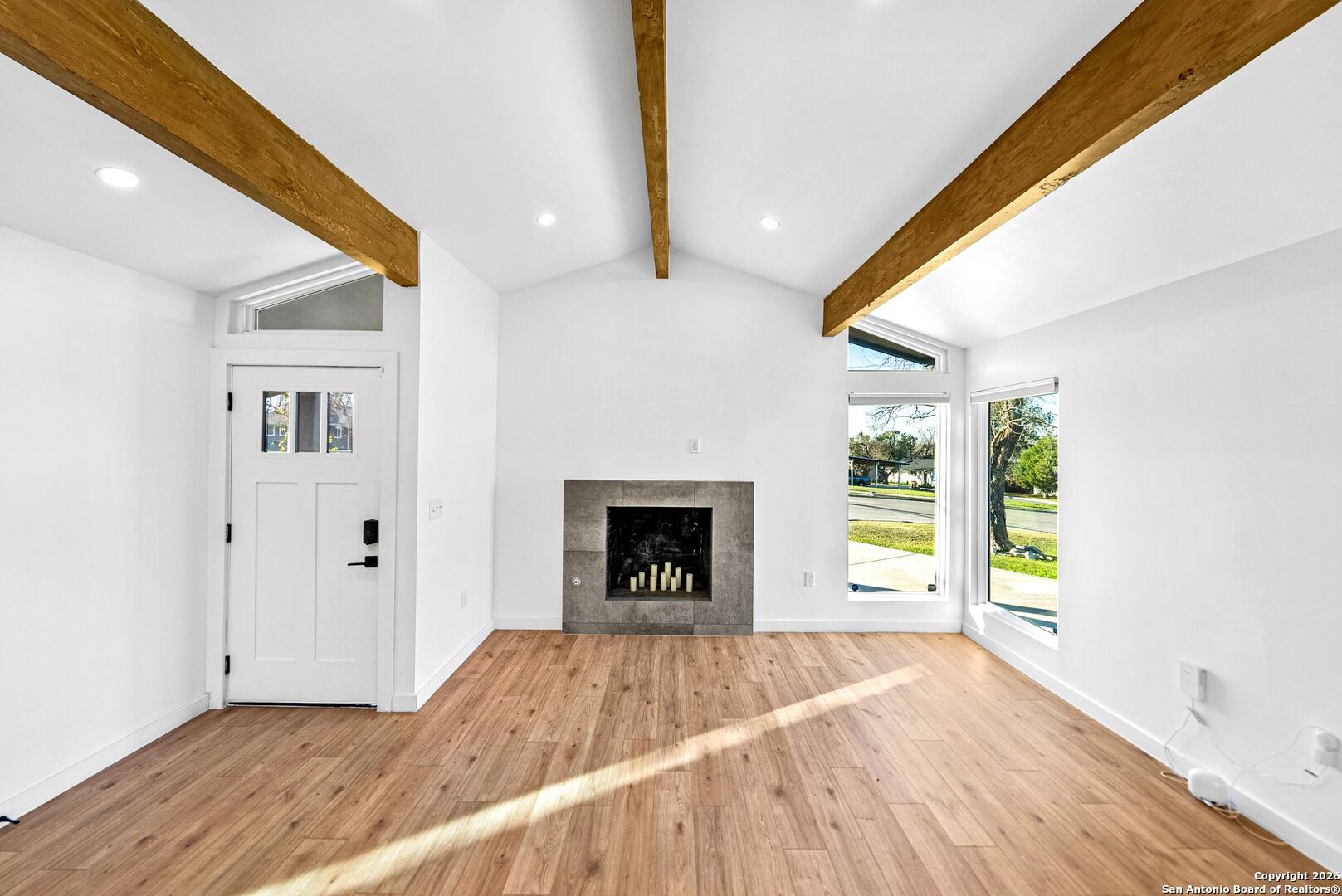Step into a home that instantly makes you slow down, take a deep breath, and feel proud to walk through the door. Set on an expansive 10,000 square foot lot, this beautifully remodeled residence offers a sense of space, privacy, and calm that is increasingly rare. From the moment you arrive, the property feels like a personal retreat designed for both everyday living and meaningful moments. Inside, the layout unfolds effortlessly, creating an open and airy experience that feels far larger than expected. Luxury vinyl plank flooring flows throughout the living spaces and bedrooms, offering both elegance and durability for real life. The main living area is anchored by striking wood beams and a gorgeous fireplace, setting the tone for cozy evenings, relaxed weekends, and gatherings that naturally draw people together. Picture quiet mornings with sunlight streaming in as you sip your coffee, or evenings spent unwinding by the fire after a long day. The bright open concept design allows the home to live beautifully throughout the day. Brand new Pella windows and an impressive 12 foot sliding glass door flood the space with natural light, creating a warm and welcoming atmosphere from sunrise to sunset. Every room feels intentional, comfortable, and thoughtfully finished. The kitchen is truly a showpiece and the heart of the home. Polished quartz countertops shimmer under recessed lighting, perfectly paired with crisp white cabinetry and stainless steel appliances. The oversized two toned island invites everything from casual breakfasts and homework sessions to wine nights with friends. This is a kitchen where meals are shared, conversations linger, and everyday routines feel elevated. Both bathrooms are brand new and designed with a spa inspired feel, offering a sense of calm at the beginning and end of each day. New flooring throughout enhances the clean modern aesthetic while adding comfort underfoot. Step outside and discover a backyard designed for living well. The extended pergola patio creates the ideal setting for outdoor dining, weekend lounging, and memorable evenings gathered around the fire pit. Thoughtful landscaping frames the space, offering privacy and beauty whether you are hosting guests or enjoying a quiet night under the stars. For those who appreciate both form and function, the two car garage stands out with its generous size and sleek epoxy flooring, perfect for car enthusiasts, hobbyists, or additional storage. Behind the scenes, this home has been completely updated with a 2023 electrical rewire, new panels, recessed lighting throughout, new PVC plumbing, and advanced foam insulation in the walls and attic, all finished with smooth level 4 drywall. These upgrades provide peace of mind, energy efficiency, and modern comfort. This home is more than a rental. It is a place where life feels balanced, moments feel meaningful, and every detail has been carefully considered. A rare opportunity to enjoy refined living in a space that truly feels like home.