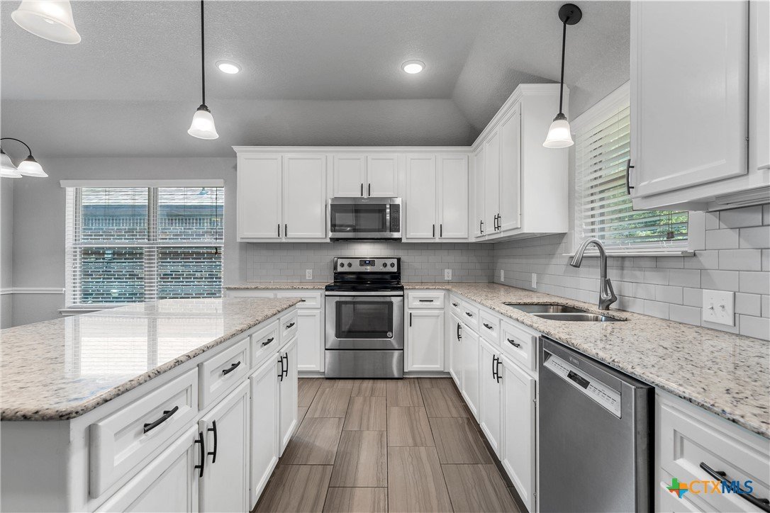 Affordable Comfort – 4-Bedroom, 2-Bath Home with Great Features in Belton ISD district. This well-maintained 4-bedroom, 2-bath home offers great comfort with plenty of space and practical upgrades. Enjoy easy-to-clean ceramic tile in the main living areas and soft carpet in the bedrooms. The kitchen includes durable granite countertops, stainless steel appliances, and a spacious walk-in pantry with a stylish frosted door—perfect for keeping things organized. The primary bedroom features vaulted ceilings and crown molding for a touch of elegance, while the bathroom includes both a tiled shower and a large soaking tub. You’ll also appreciate the upgraded roof shingles with gutters and the extra storage space in the laundry room. A smart choice for anyone looking for comfort and quality at a budget-friendly price. Buyers to verify schools and measurements in important.
