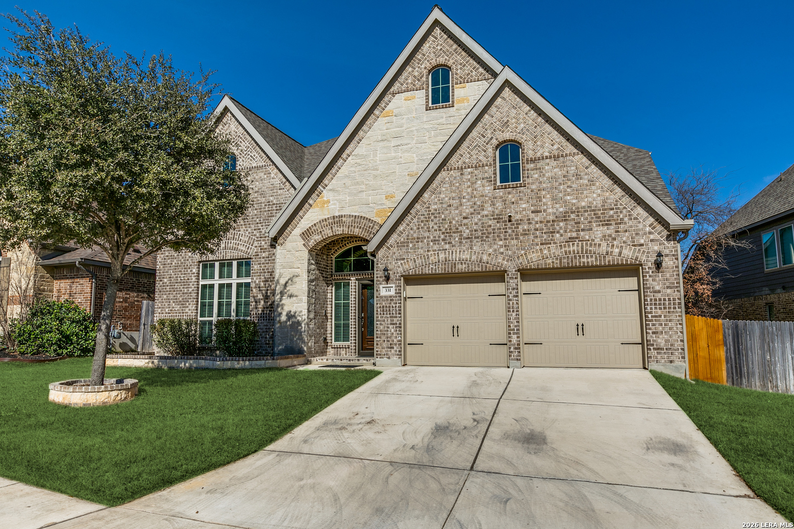 Designed for comfortable family living, this beautifully maintained 2018 Perry Home offers an open layout, soaring ceilings, and bright, welcoming spaces throughout. The entry features a private study with French doors and a dramatic 20-foot ceiling, plus a rotunda and separate formal dining room-great for gatherings and celebrations. The spacious family room showcases an 18-foot ceiling, and a wall of windows for natural light, ceramic tile floors in main living areas. The island kitchen opens to the morning area and includes a walk-in pantry, making everyday meals and entertaining easy. The private primary suite provides a peaceful retreat with a spa-style bath featuring a garden tub, and separate glass-enclosed shower, dual vanities, linen closet, and large walk-in closet that connects to the main floor laundry. Located within approximately 0.5 miles walking distance to Lindsey Elementary, and close to Loop 1604 and shopping in San Antonio. Living room furniture, primary bed frame, armoire, and dresser may convey-making this home move-in ready for your family.