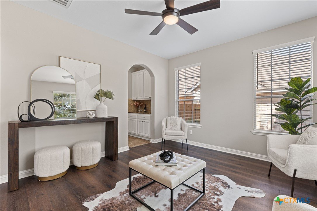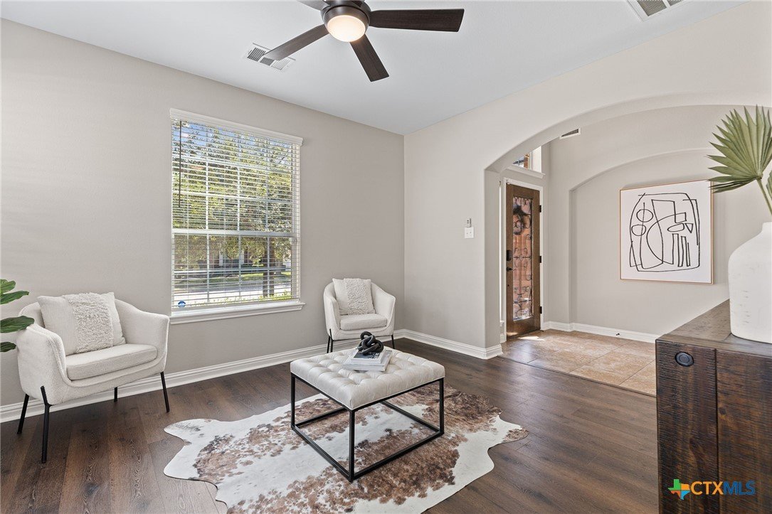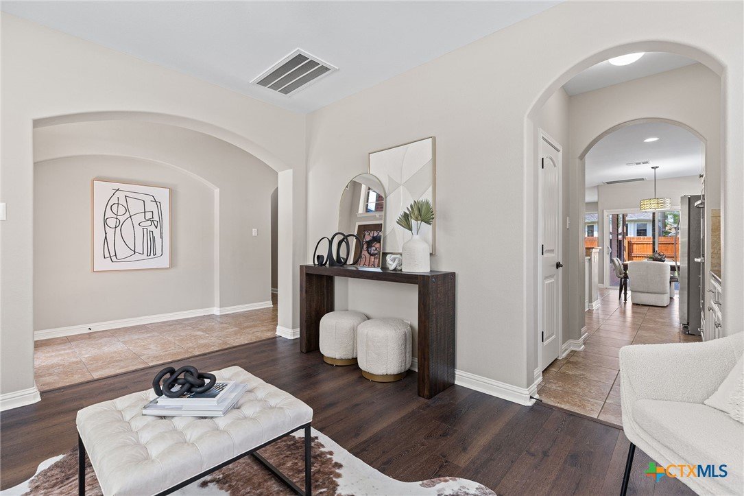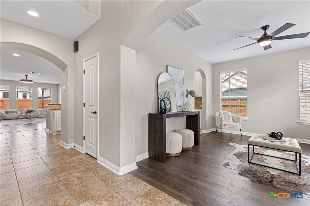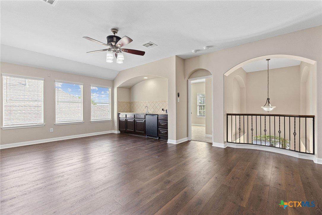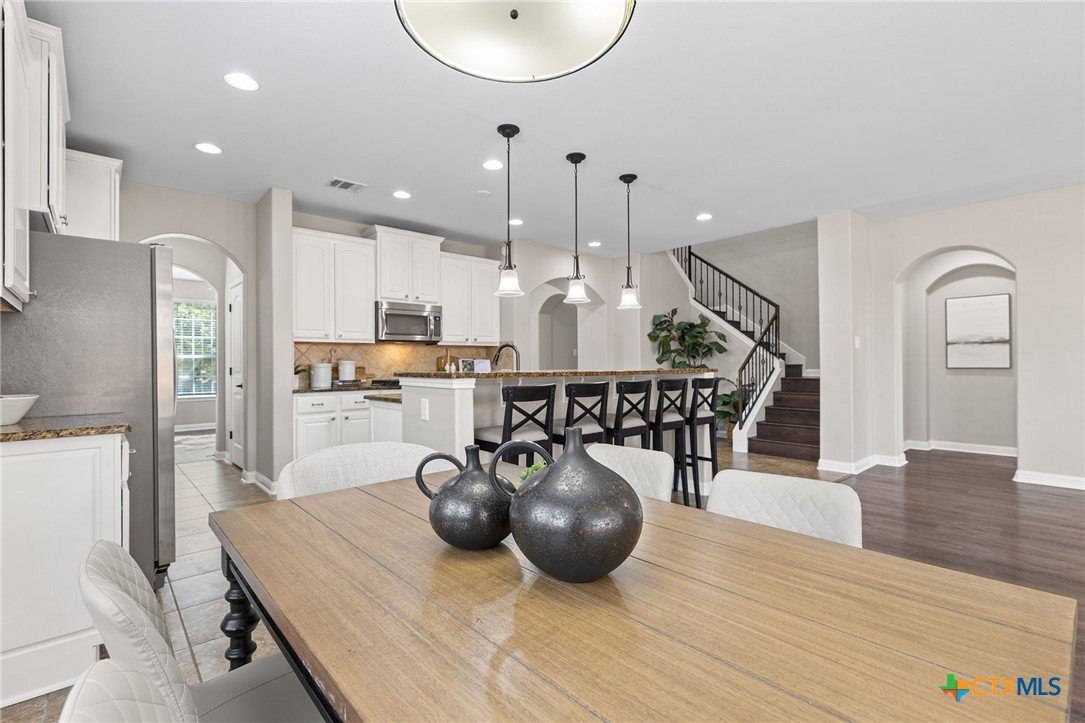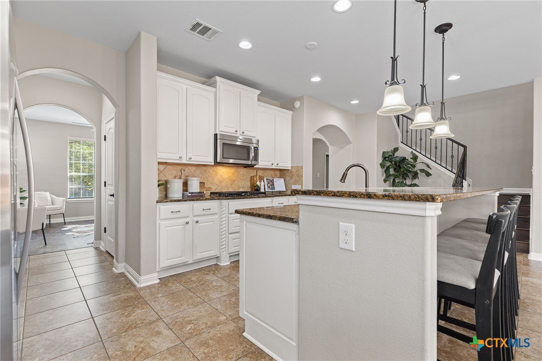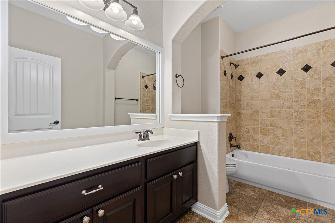 Your stunning executive-style home welcomes you with its elegant features and spacious layout. As you enter, you are greeted by the inviting front flex room, perfect for a dining room or office space. The great room offers a backyard view, complete with an extended pergola covering an extra-large patio space, which is excellent for outdoor relaxation and entertaining. The kitchen is a chef's delight, boasting beautiful ivory cabinets, a double oven for culinary convenience, a generous breakfast bar for casual dining, and built-in stainless-steel appliances that add a modern touch. Additional amenities include a butler's pantry for seamless entertaining and a large walk-in pantry for ample storage space. The primary suite is a true retreat, with a spa-like bath featuring a huge walk-in closet with built-in cabinetry, ensuring ample storage and an oversized shower. Also, downstairs is a second bedroom and complete bathroom that offer added convenience for guests. Upstairs is a spacious game room with newly installed luxury vinyl plank flooring that provides plenty of space for recreational activities. There are three freshly carpeted bedrooms and two bathrooms. One of the second-floor bedrooms is large enough to function as a second primary bedroom or media room for multigenerational living needs. A fourth bedroom with beautiful wood floors can double as an elegant office. Overall, this home combines functional flexibility with elegance, offering multiple living spaces and luxurious amenities catering to daily living and entertaining guests. Less than a one-minute drive to lakeside amenities: fishing pond, pickleball court, two parks/playgrounds, splash pad, bi-level pool, community center, and trailhead to nearly five miles of trails around the lake & creek. Less than a 10-minute drive to Toll Road 130 with further easy access to Toll Road 45 and I-35, and less than 15 minutes from shopping and dining in the University Oaks and Hutto areas!