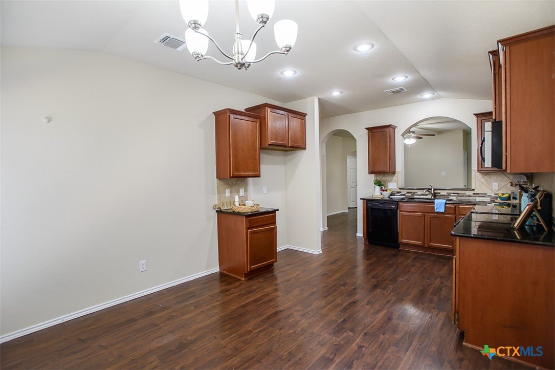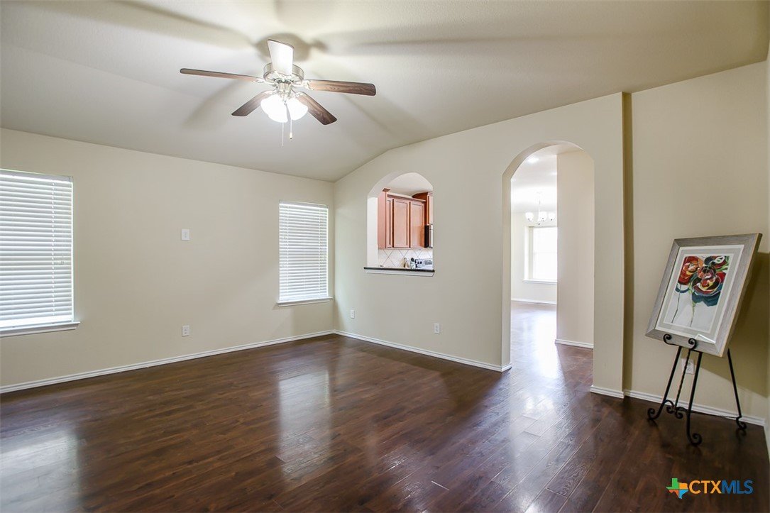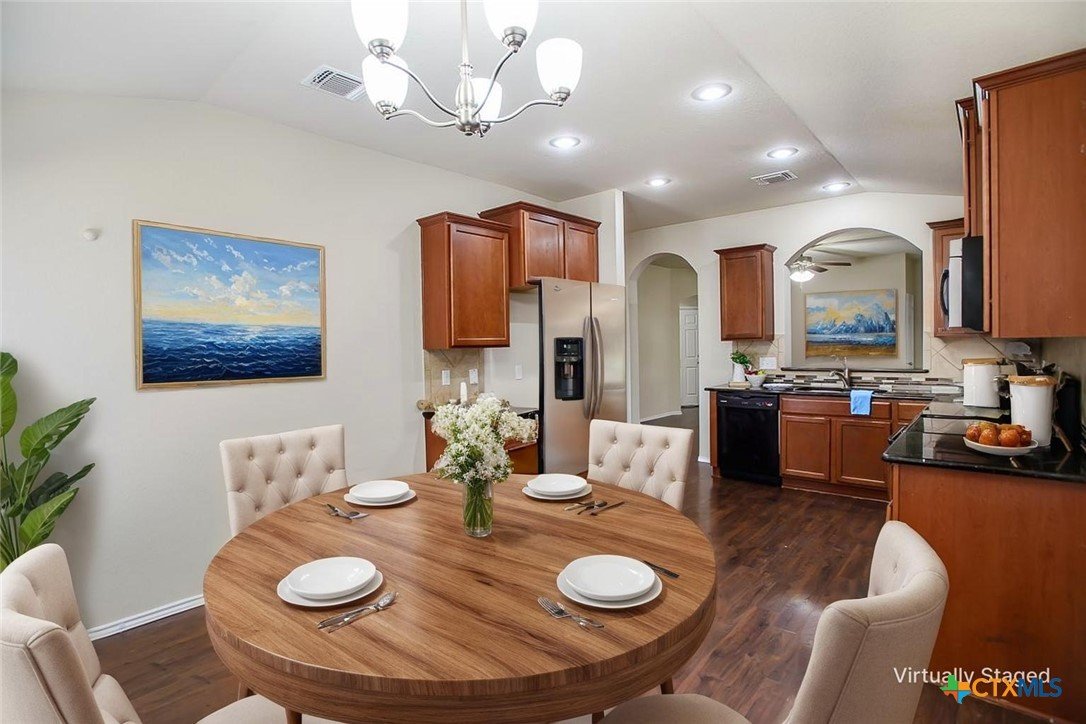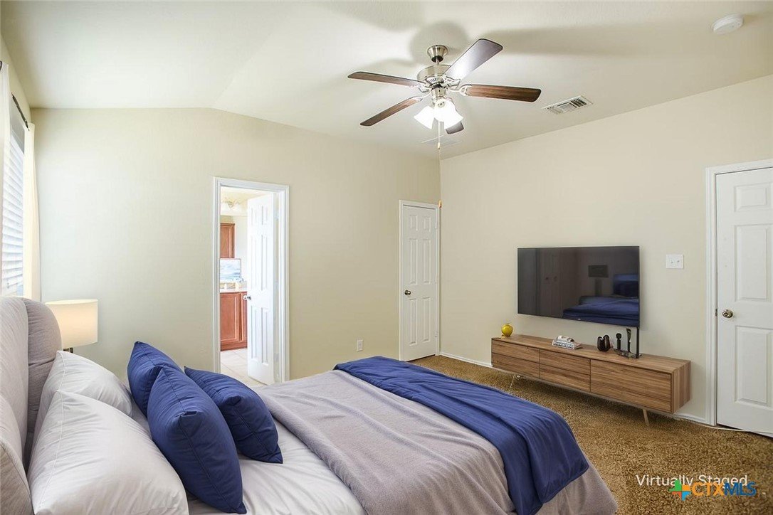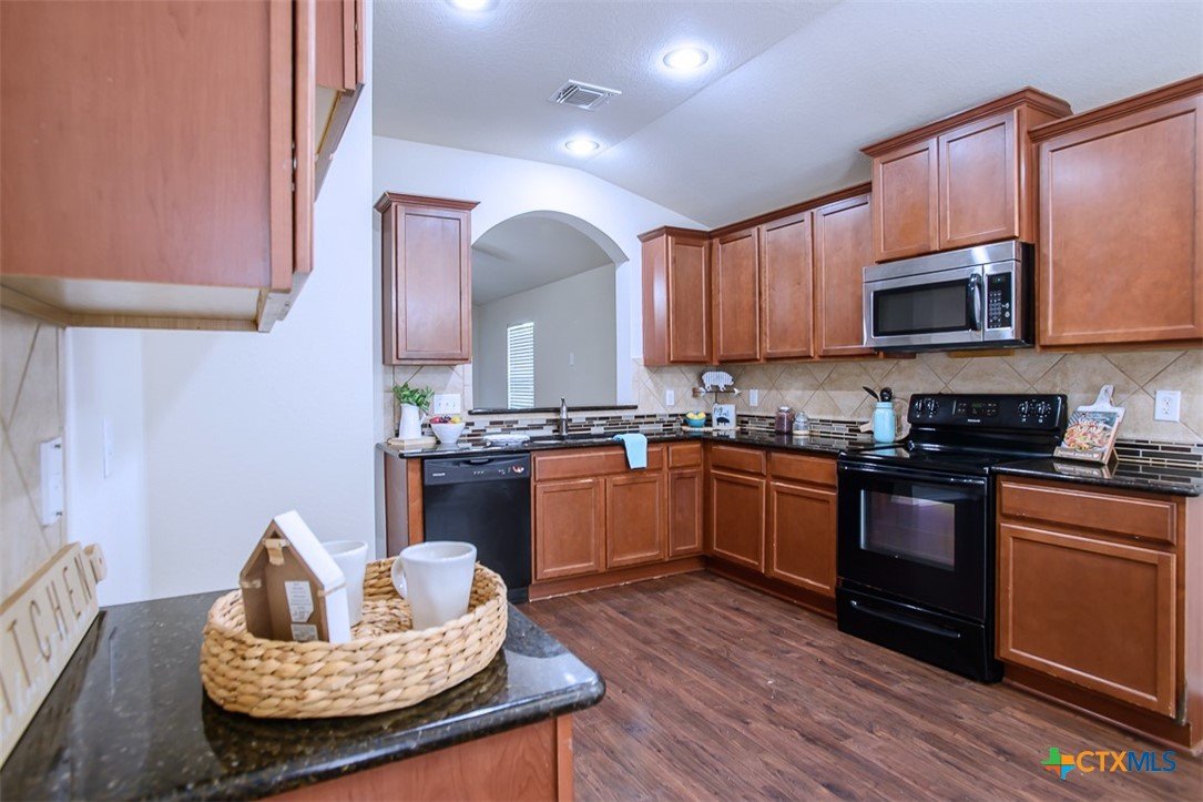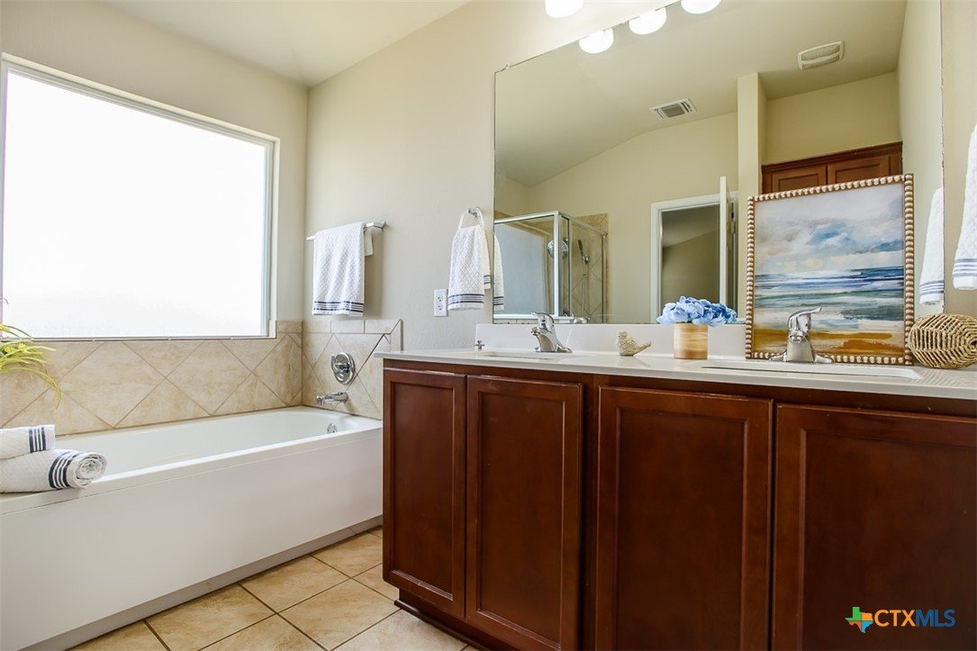 A welcoming shade tree and inviting front porch set the tone for this beautifully updated home, where comfort and style come together effortlessly. Inside, the spacious great room features a high ceiling and rich wood-look tile floors that flow into the open kitchen—complete with granite countertops, abundant cabinetry, and a convenient adjoining dining area. The owner’s suite offers a peaceful retreat with a high ceiling, relaxing soaking tub, separate shower, and a walk-in closet enhanced with built-ins for easy organization. Fresh paint throughout and new carpet in the bedrooms give this home a crisp, move-in-ready feel. Step outside to enjoy a large backyard with a covered patio—perfect for morning coffee, entertaining, or simply unwinding outdoors. Thoughtfully maintained and ready for its next chapter, this home is the perfect blend of comfort, function, and charm.