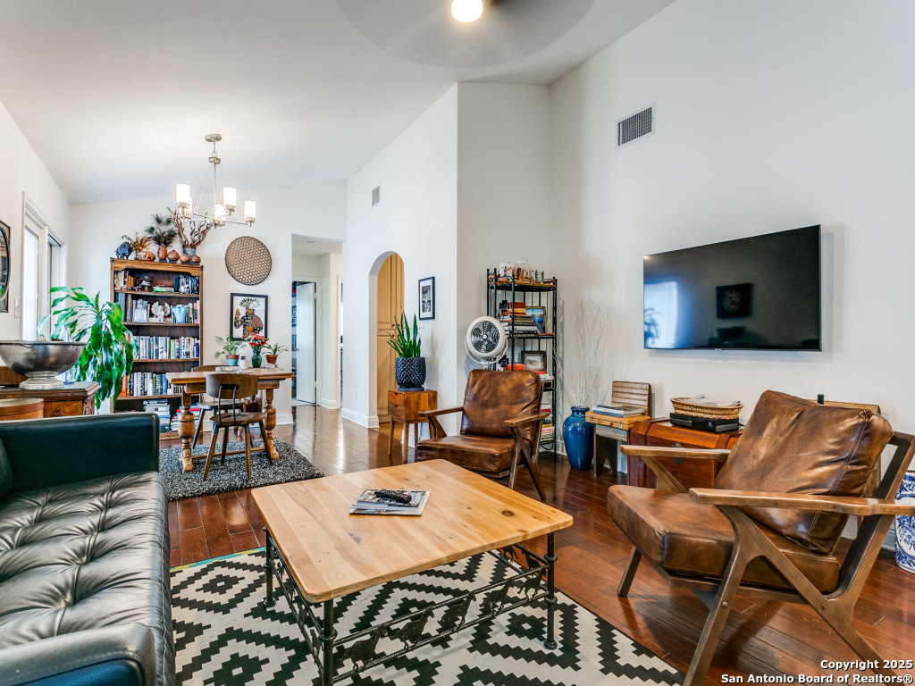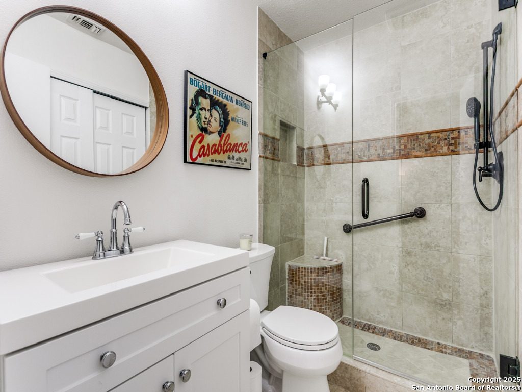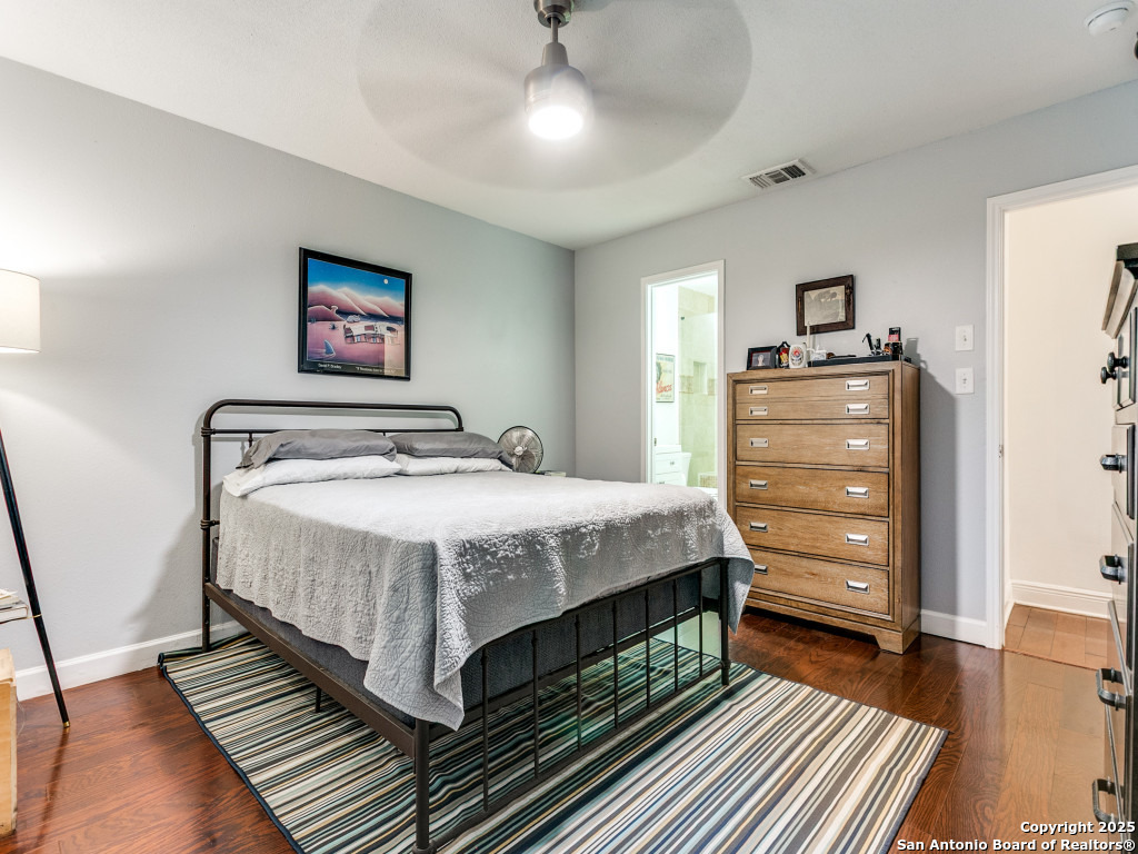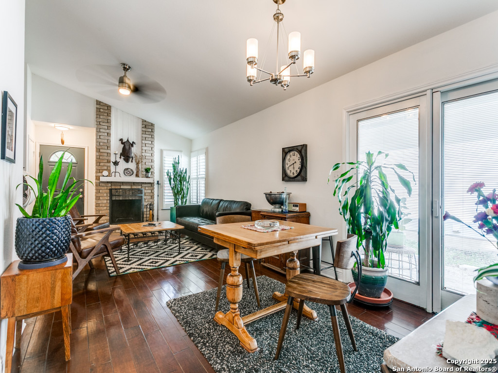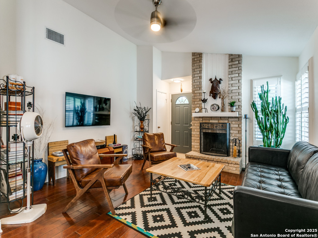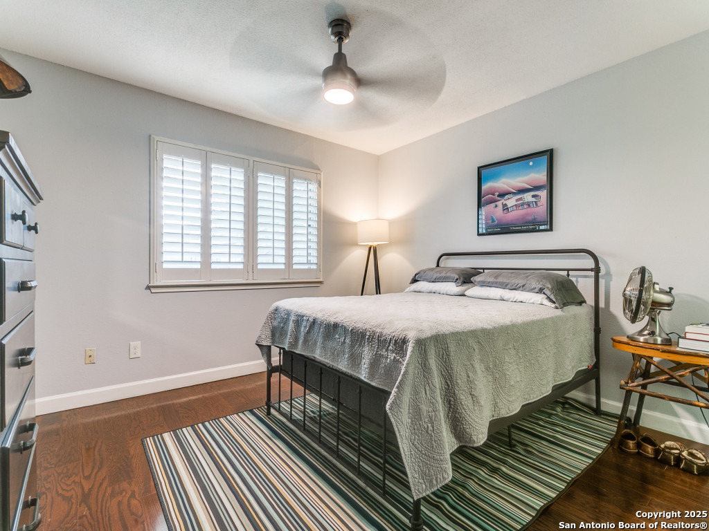 Immaculate 3-Bedroom Home in Prime Location! Centrally located and meticulously maintained, this 3-bedroom, 2-bath home is move-in ready with thoughtful updates throughout including tankless water heater. The owners have taken exceptional care, including a recent roof replacement and premium water softener with reverse osmosis tap in the kitchen. Enjoy wood floors, high ceilings, wood burning fireplace and abundant natural light in the living area. The updated kitchen features designer cabinetry, stainless appliances, recessed under cabinet lighting and custom touches like spice racks and utensil holders. The primary suite includes a walk-in closet with built-ins and a spa-like bathroom with a glass-enclosed shower. Plantation shutters in the living room and primary bedroom. The private backyard offers mature, low-maintenance landscaping with native, low-water plants-perfect for relaxing or entertaining. Ideally situated just minutes from the airport and beautiful McAllister Park, with easy access to Wurzbach Pkwy, major highways, military bases, and shopping. This well-cared-for gem won't last-schedule your showing today!