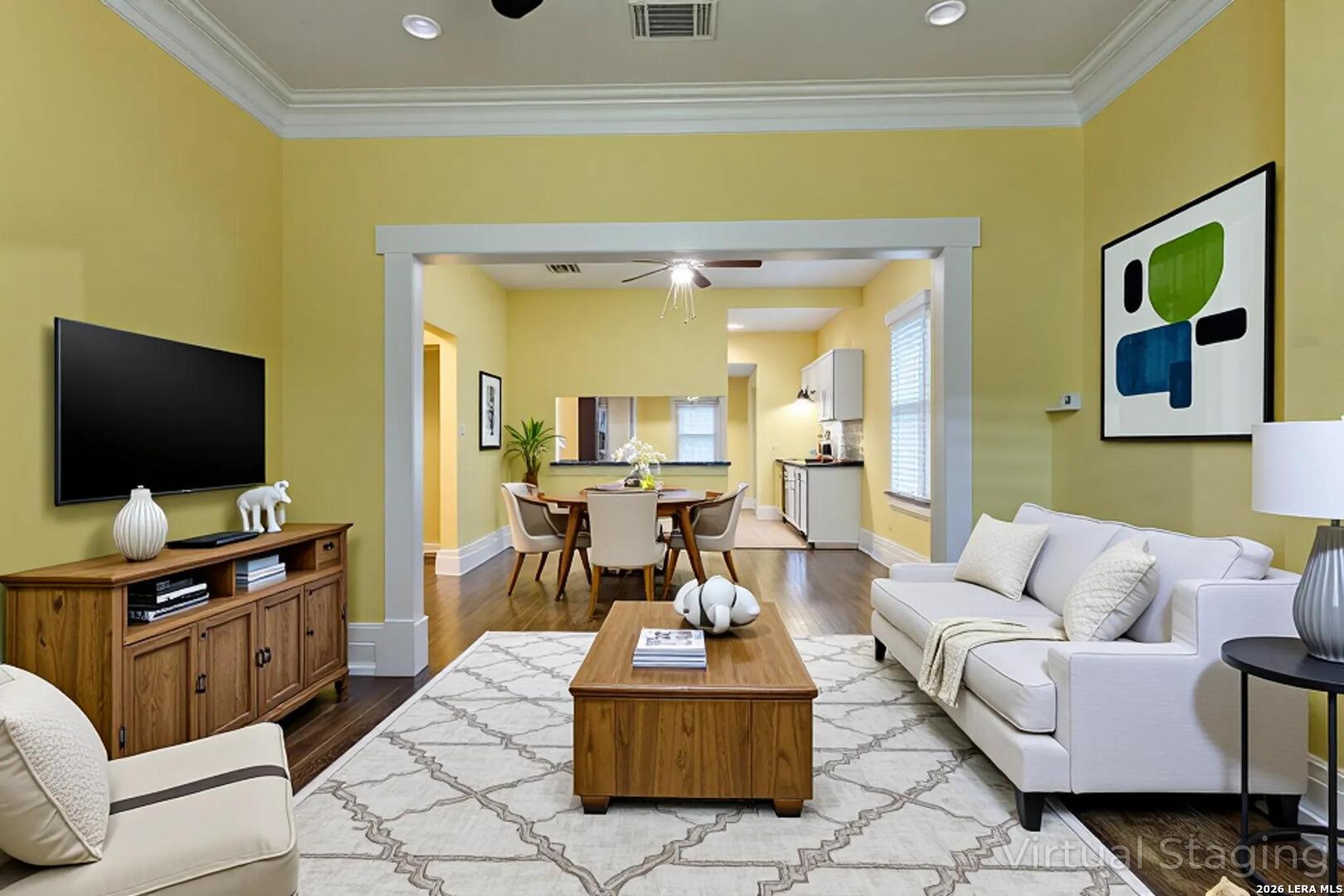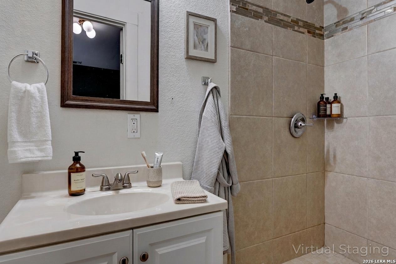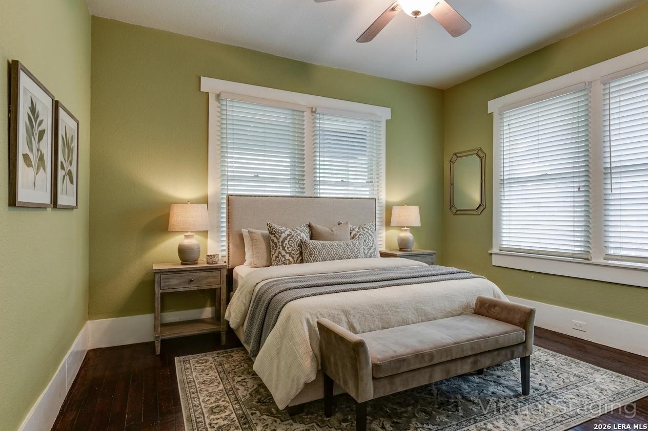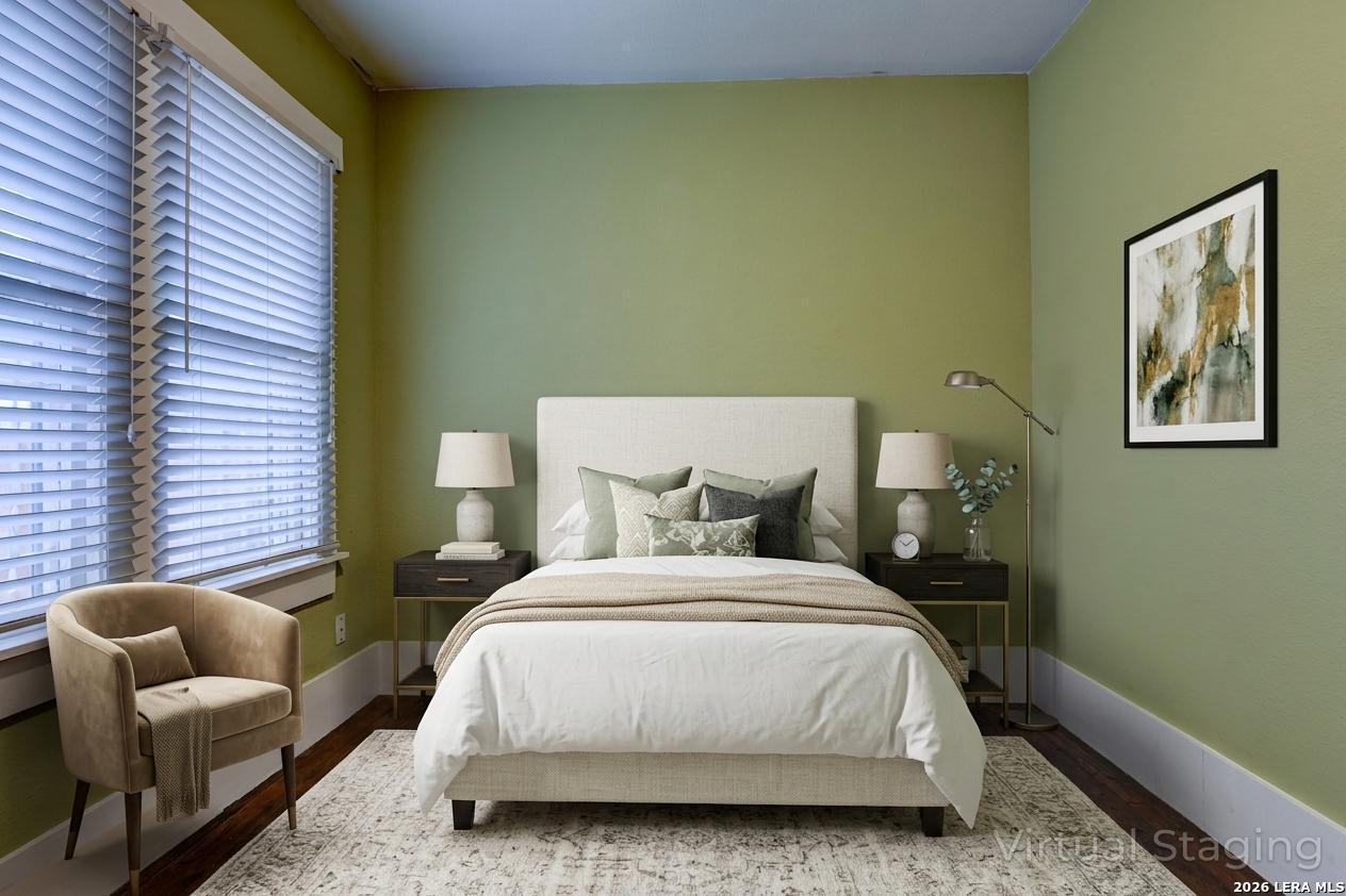There's something about a 1940s Craftsman that immediately feels like home-and this one welcomes you from the moment you arrive. The front porch invites slow mornings and easy evenings, while the fenced yard adds a touch of privacy and charm. Inside, original character shines through hardwood floors, tall ceilings, and open transitions between the living and dining spaces, all filled with soft natural light. Thoughtful updates to the roof, plumbing, and HVAC bring peace of mind, blending timeless style with modern comfort. The kitchen sits at the center of it all, featuring granite countertops, ample cabinetry, and a cozy breakfast area that makes everyday living feel effortless. The primary suite offers a comfortable retreat with built-in storage and an updated walk-in shower, while the secondary bedrooms and bath continue the home's warmth with updated finishes and great natural light. Out back, a green, inviting space awaits-complete with garden planters, mature trees, a detached garage, and additional storage-perfect for quiet evenings or gathering with friends. Located near downtown, the Hot Wells, river trails, and the historic Missions, this home offers not just character, but connection to some of the area's most loved destinations. Please be aware that some photos have been virtually staged.