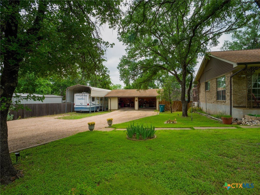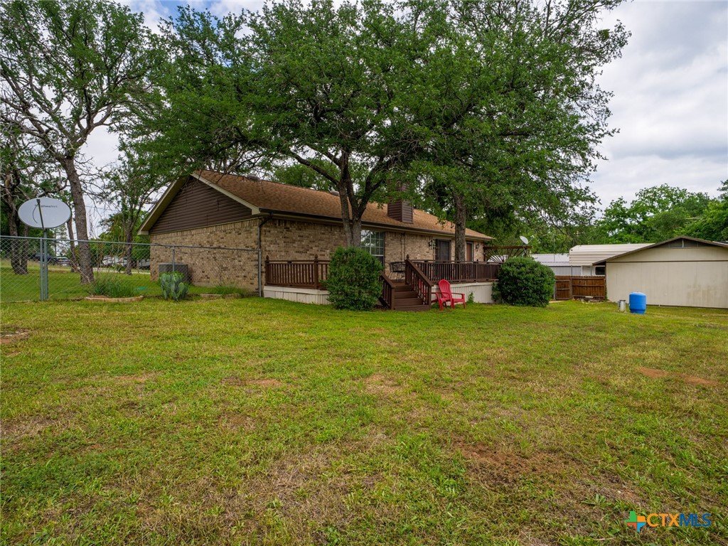 Spacious 3 bedroom, 2 bath classic brick home located in the heart of the beautiful Texas Hill Country, less than a mile from Lake Buchanan access! Situated on nearly half an acre, this property offers the perfect blend of comfort, functionality, and scenic surroundings. The open-concept floor plan features vaulted ceilings, a cozy wood-burning fireplace, and abundant natural light throughout. The primary suite includes a walk-in shower and generous closet space. Step outside to enjoy a spacious deck to enjoy the scenery and outdoors, a large fenced backyard with chain link fencing, backing up to a peaceful 10-acre ranch for added privacy. The property is well-equipped with a 2-car covered carport, a 40’ RV port, and a versatile storage building/workshop with additional 2-carparking. Irrigation is supported by a private well, making outdoor maintenance a breeze. Whether you’re looking for a full-time residence or a weekend retreat near the lake, this property offers space, flexibility, and a prime location to enjoy all that Hill Country living has tooffer.